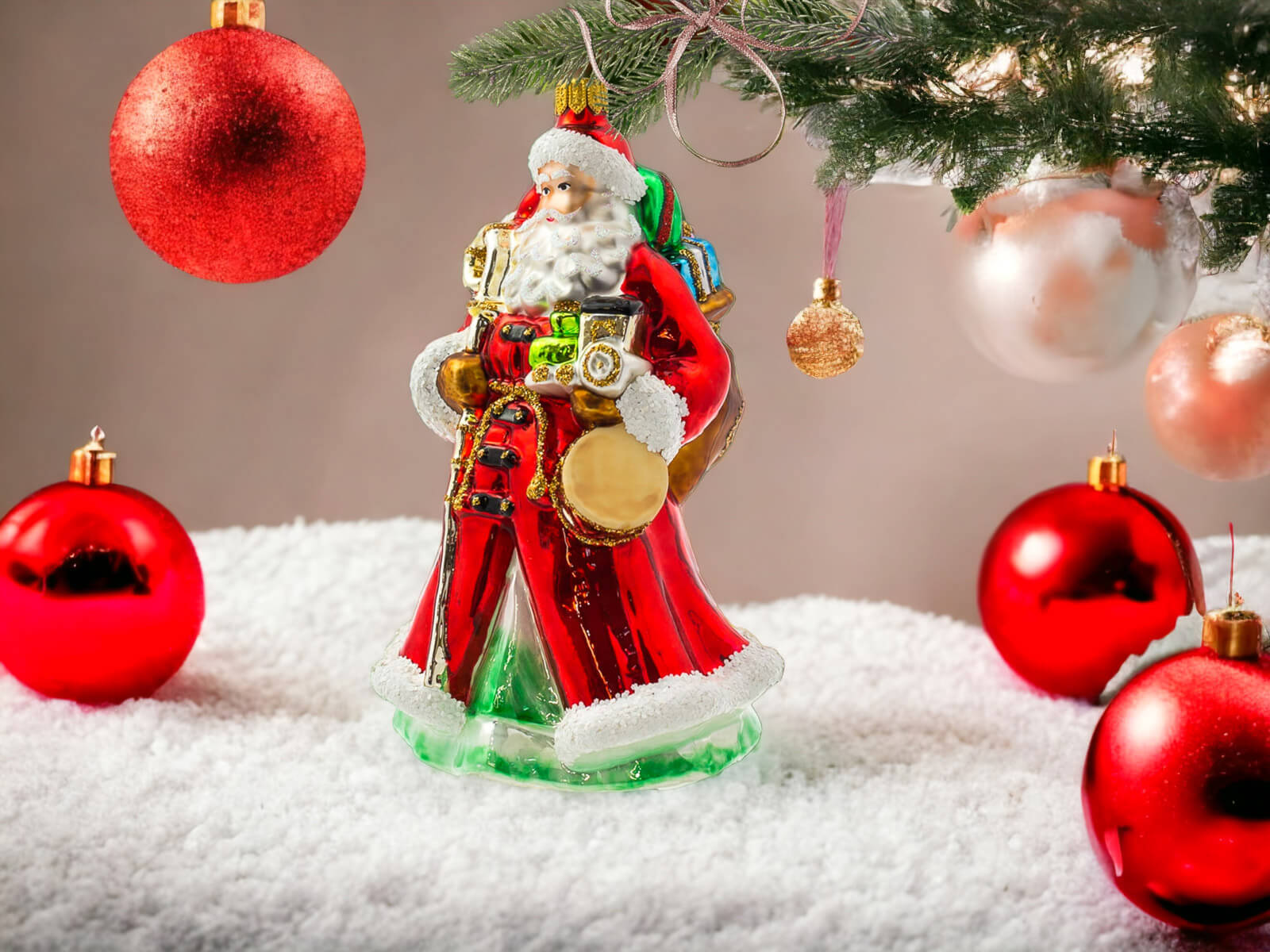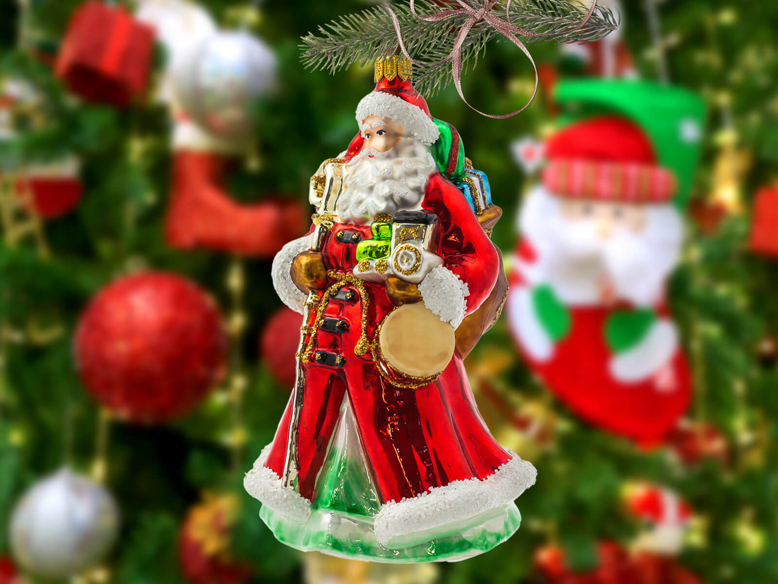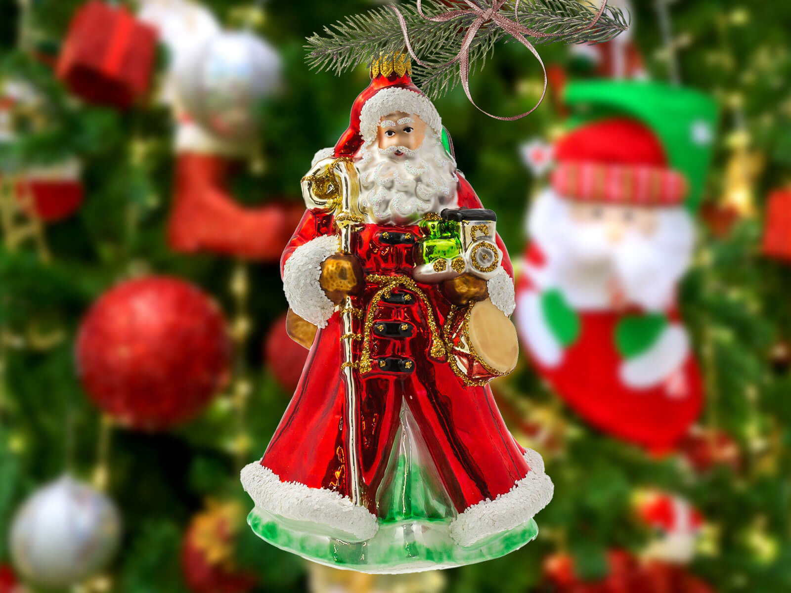 Bombka w kształcie Świętego Mikołaja to dekoracja, która łączy w sobie tradycję z artystycznym kunsztem. Jest idealna do wnętrz zarówno w klasycznym, jak i nowoczesnym stylu, tworząc ciepłą i przytulną atmosferę świąt.