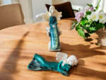 Każda figurka została starannie uformowana i pomalowana w odcieniach turkusu, co nadaje jej elegancji i ponadczasowego uroku. Delikatne wzory liści na sukniach przypominają tkaninę z misternym haftem, tworząc efekt, który przyciąga wzrok i wzbudza zachwyt – zarówno domowników, jak i gości.