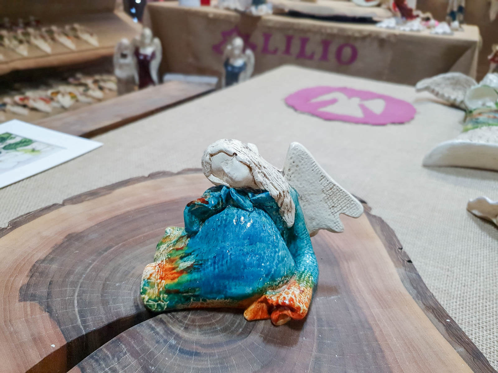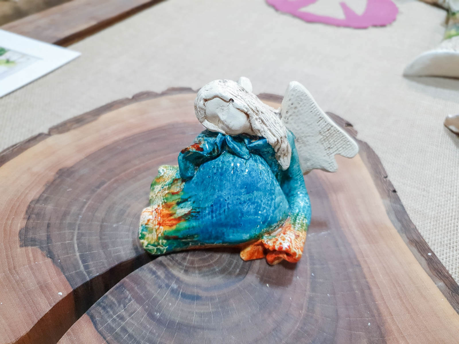 Śpiący aniołek w kolorach turkusu i brązu. Idealny na prezent.
