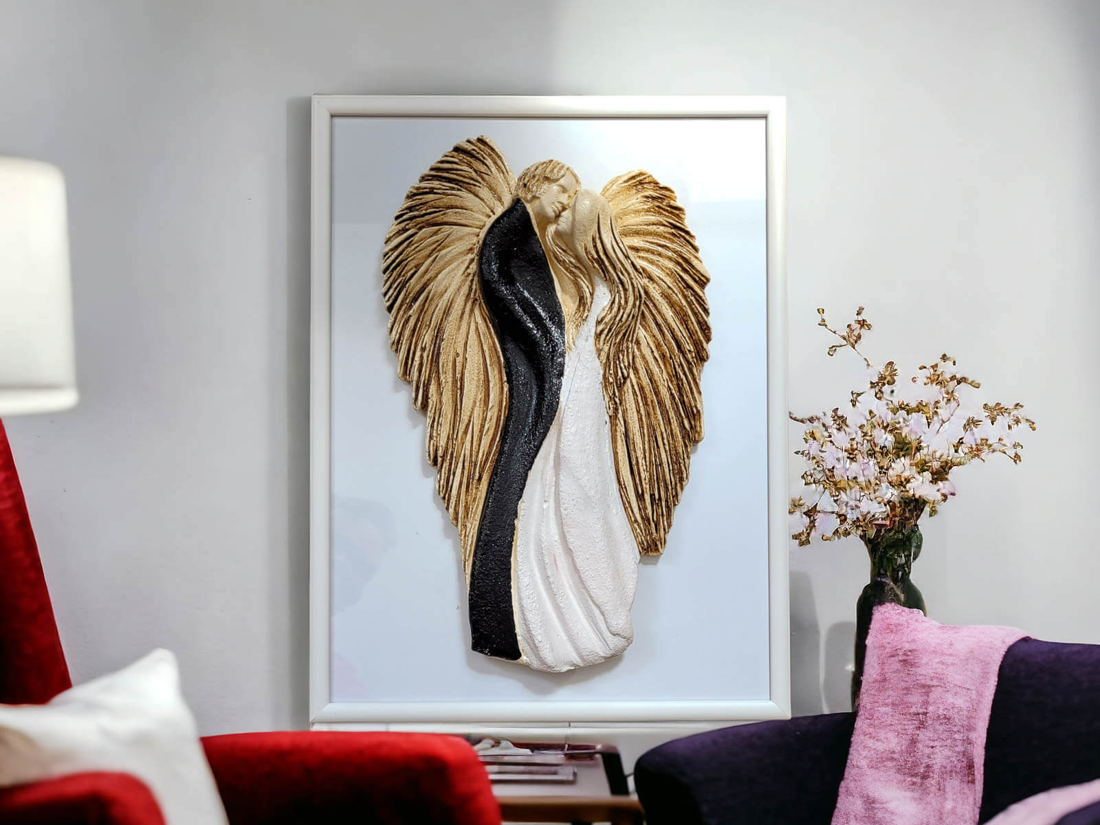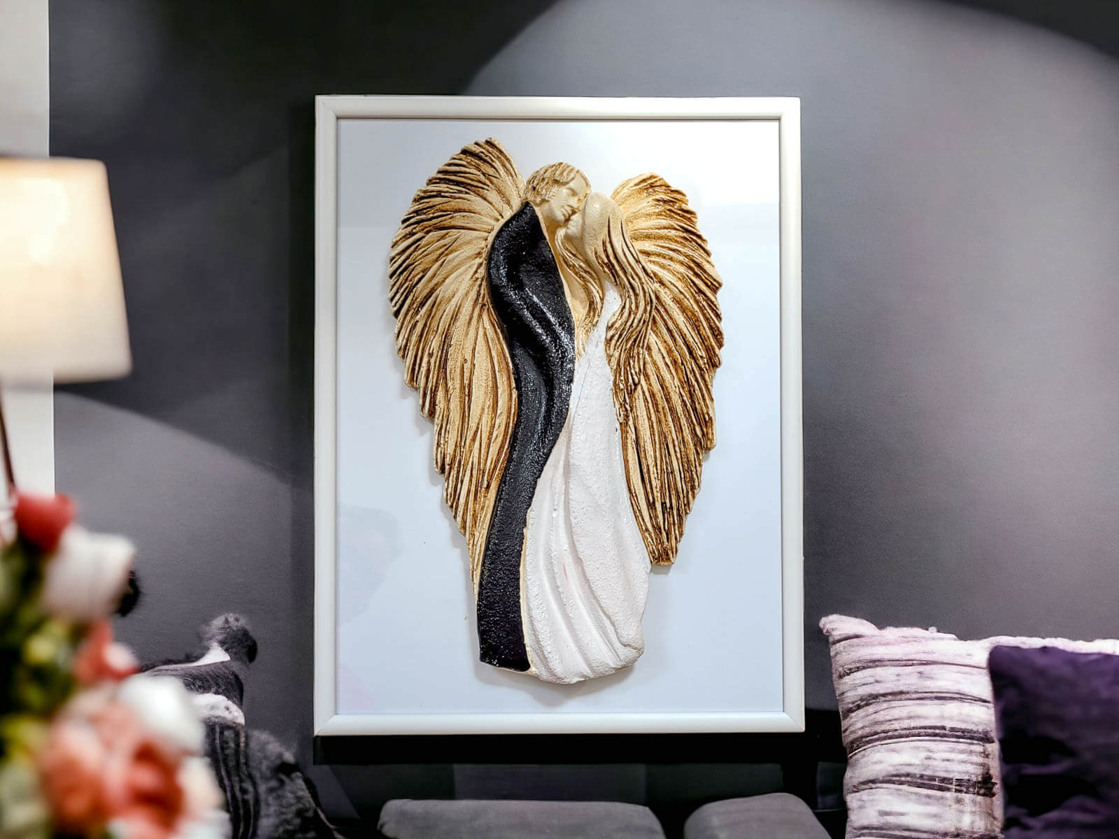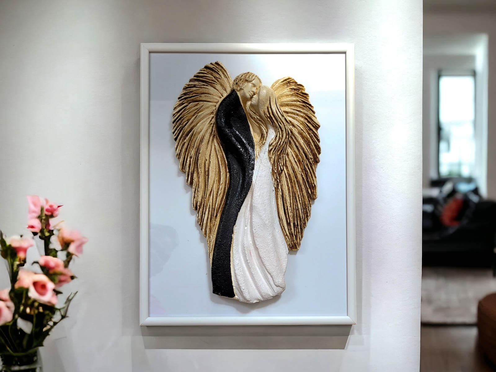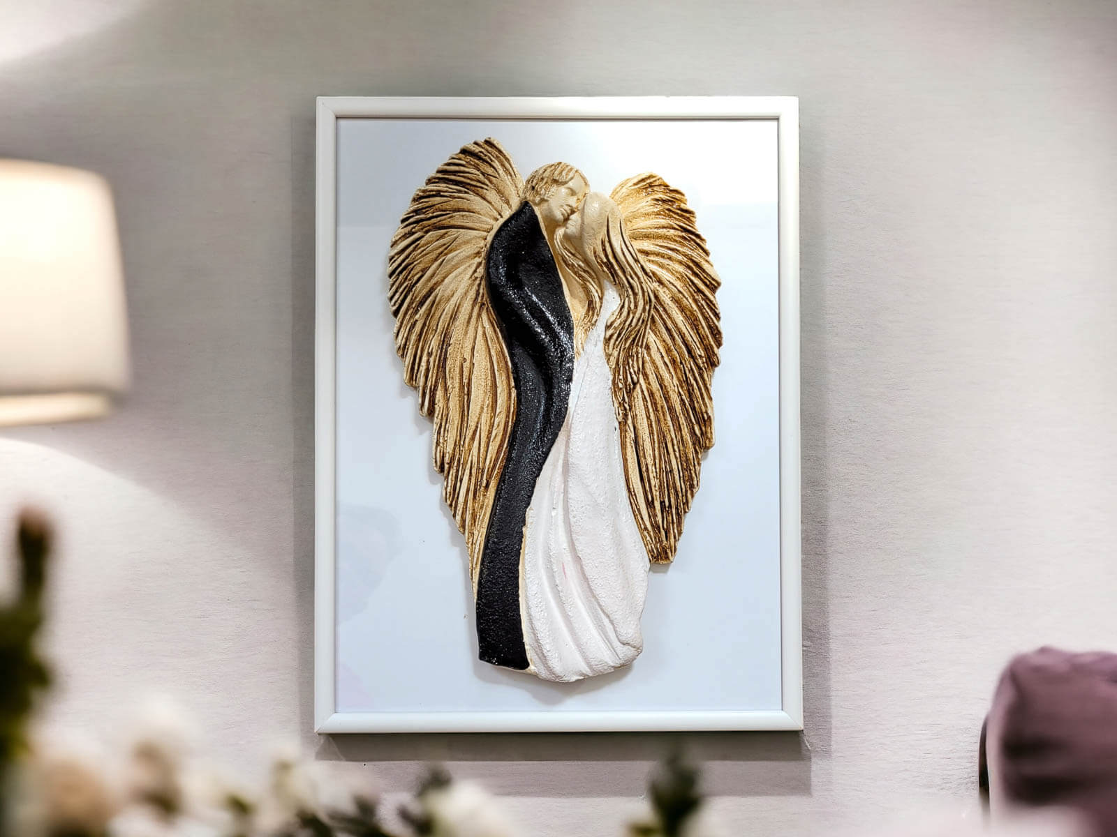 Figurka jest doskonałą ozdobą do powieszenia na ścianie w salonie, sypialni lub innym miejscu, gdzie chcesz podkreślić piękno miłości. Możliwość eleganckiego zapakowania czyni ją idealnym prezentem dla bliskiej osoby, dodając nutę luksusu do tego wyjątkowego dzieła sztuki. Produkowane w Polsce z pasją i dbałością o detale.