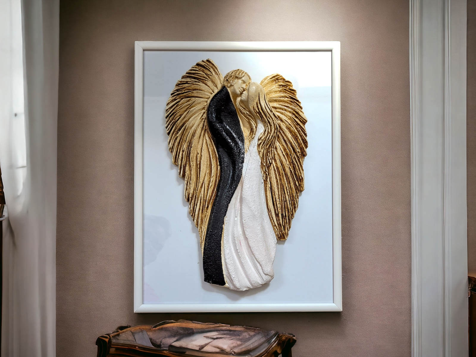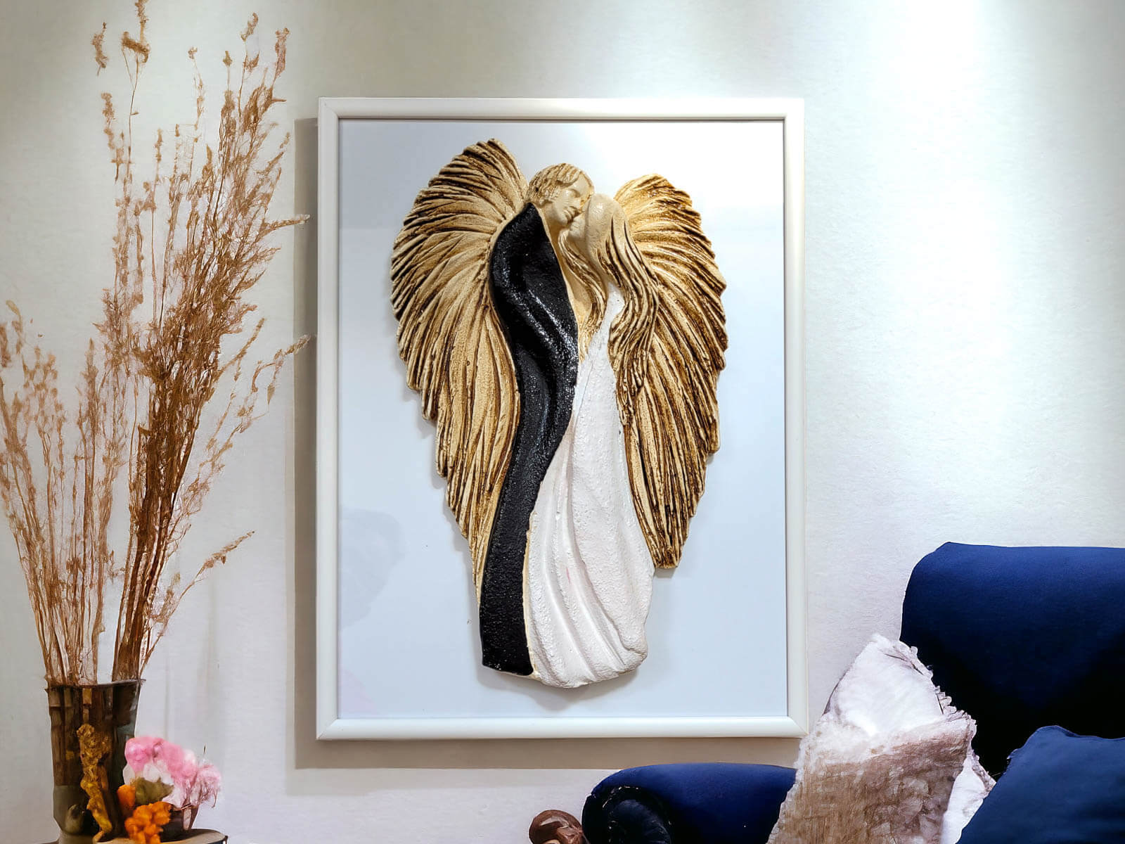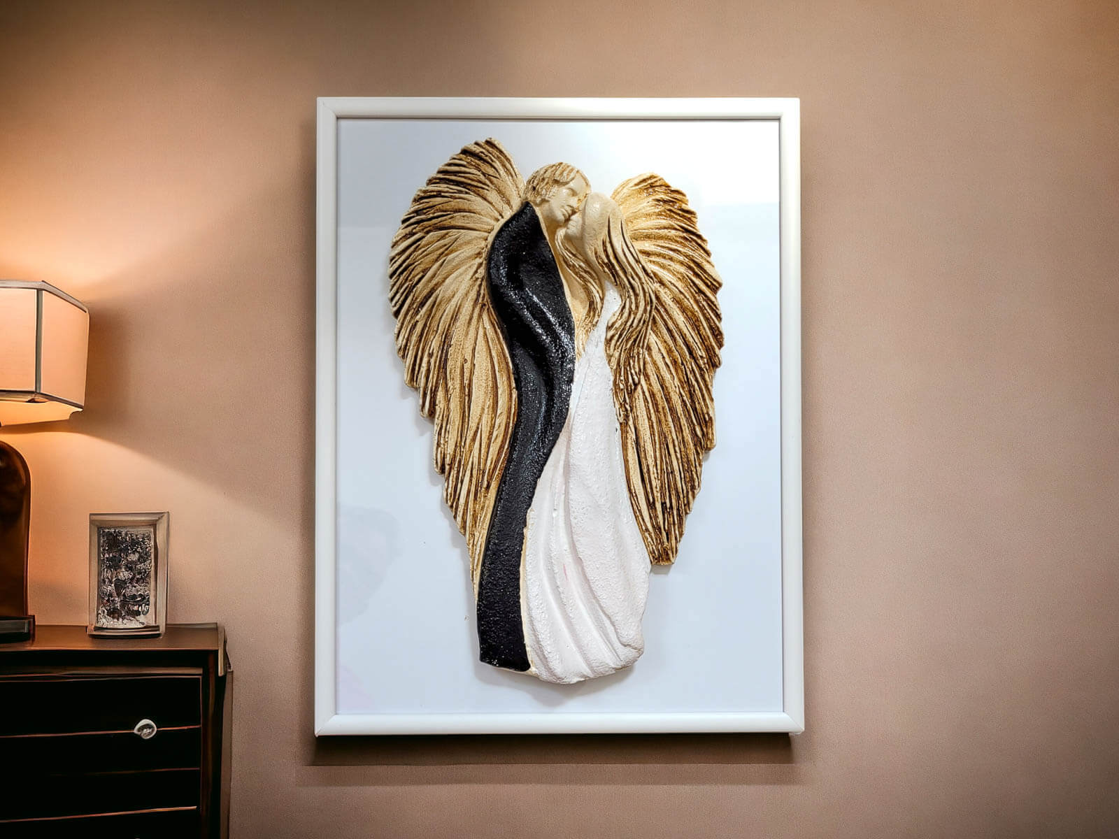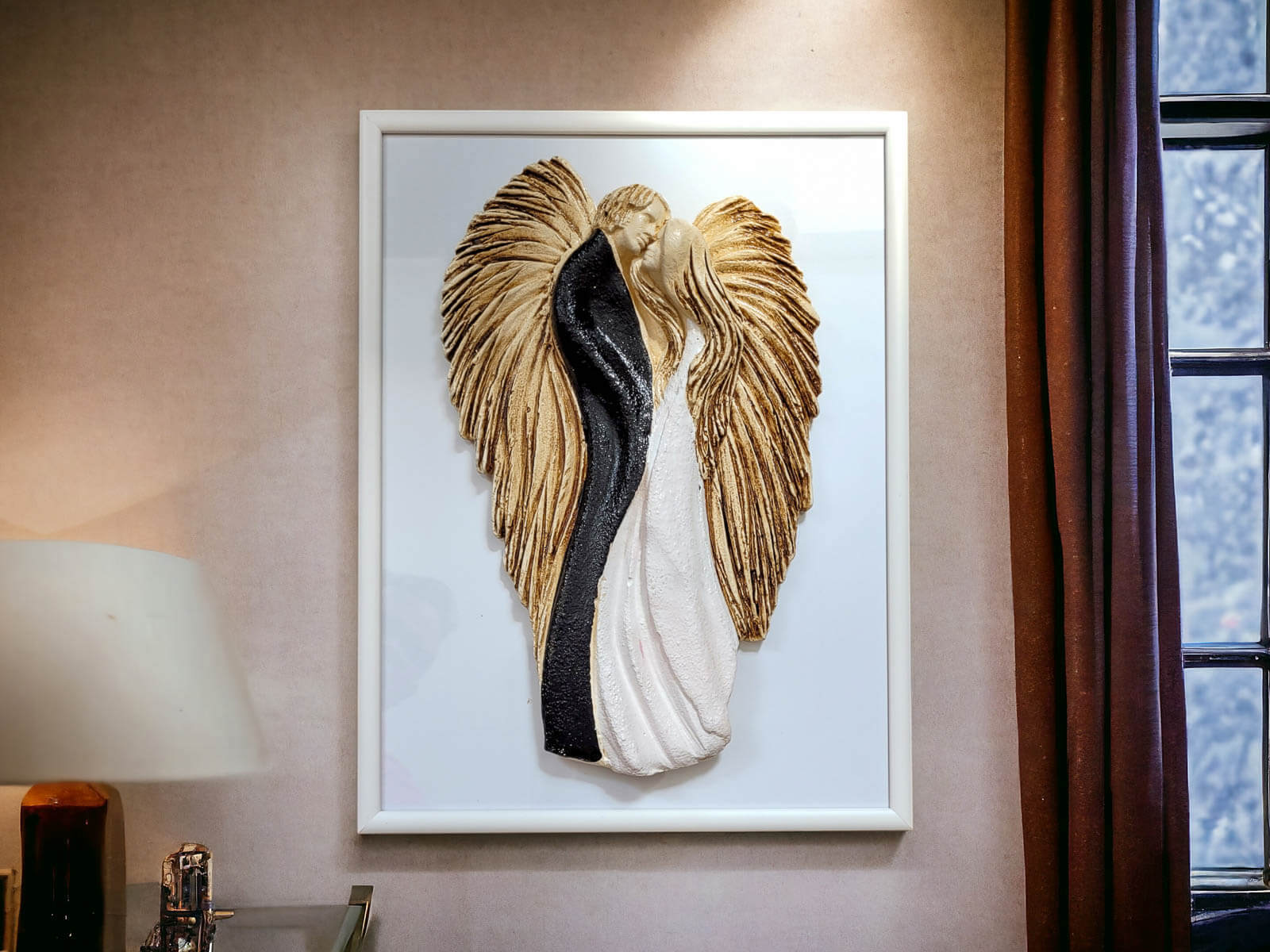 Figurka jest doskonałą ozdobą do powieszenia na ścianie w salonie, sypialni lub innym miejscu, gdzie chcesz podkreślić piękno miłości. Możliwość eleganckiego zapakowania czyni ją idealnym prezentem dla bliskiej osoby, dodając nutę luksusu do tego wyjątkowego dzieła sztuki. Produkowane w Polsce z pasją i dbałością o detale.