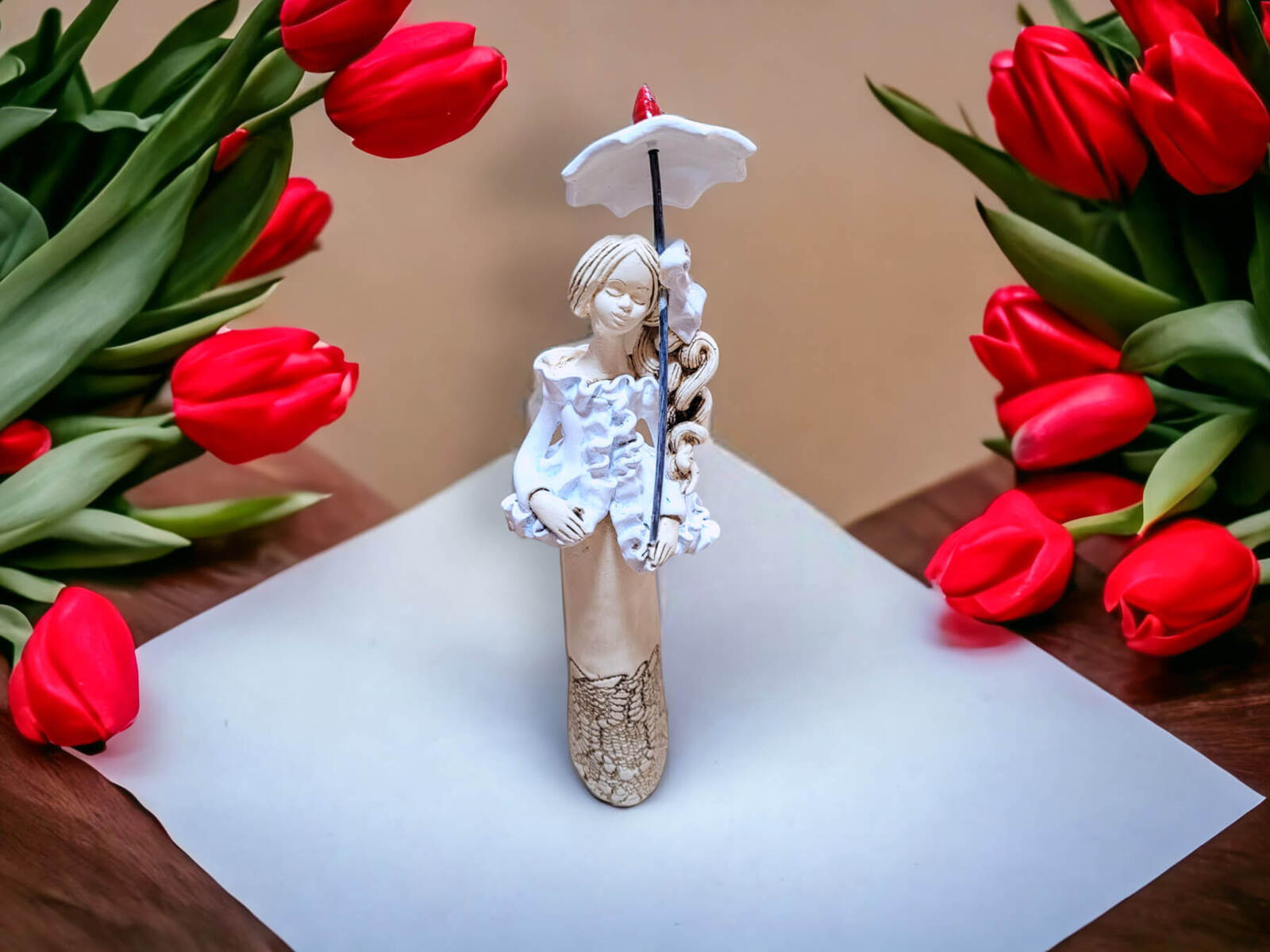 • Anioł Konstancja - biały -  32 x 10 cm figurka dekoracyjna gipsowa