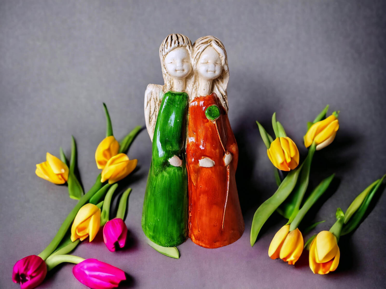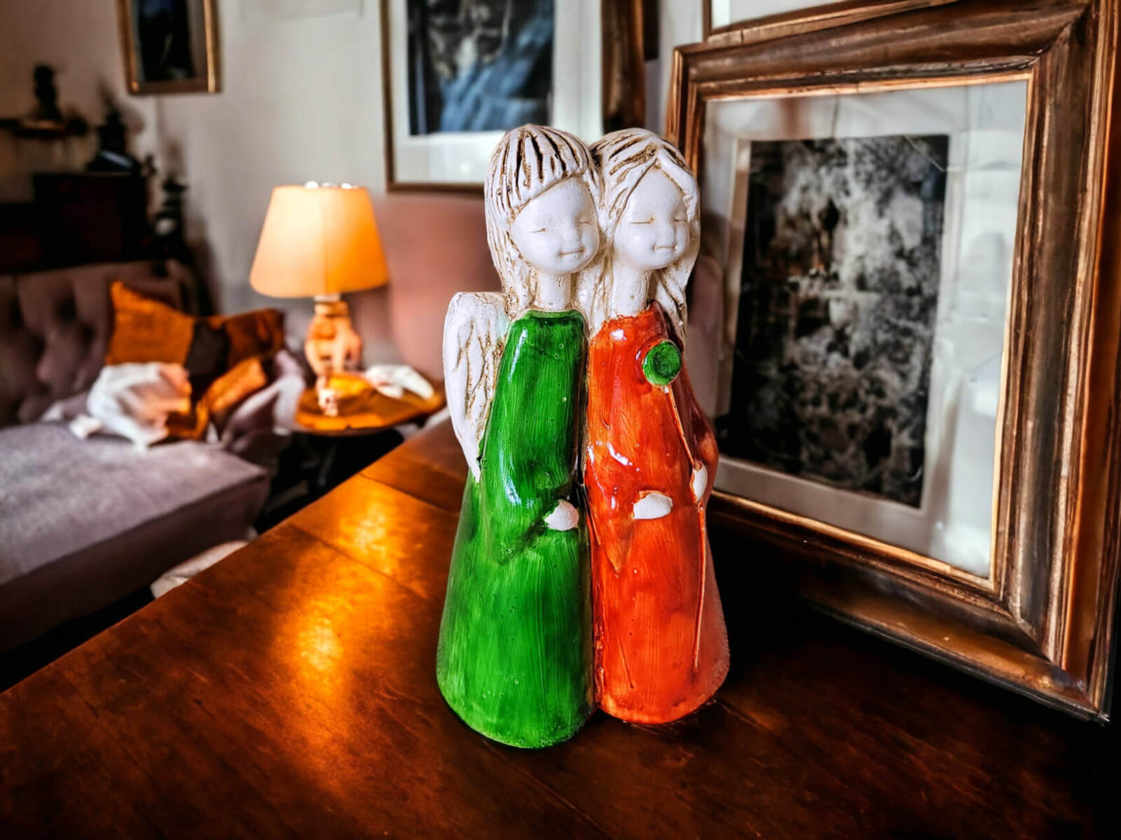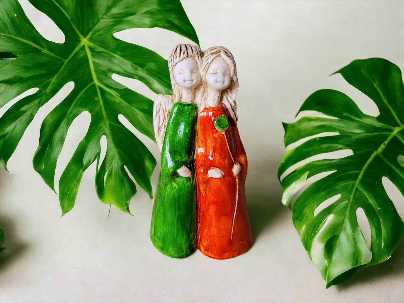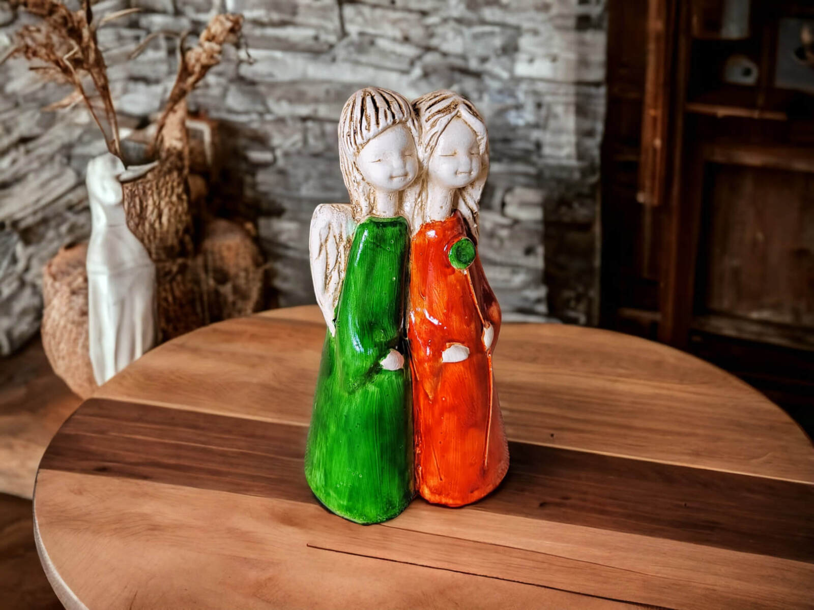 Aniołki Apple i Ella w kolorze zielonym i pomarańczowym w wersji Art z unikalnym zdobieniem.