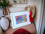 Anioł Andrea (prawa) w kolorze czerwonym w komplecie z klasyczną białą ramką.