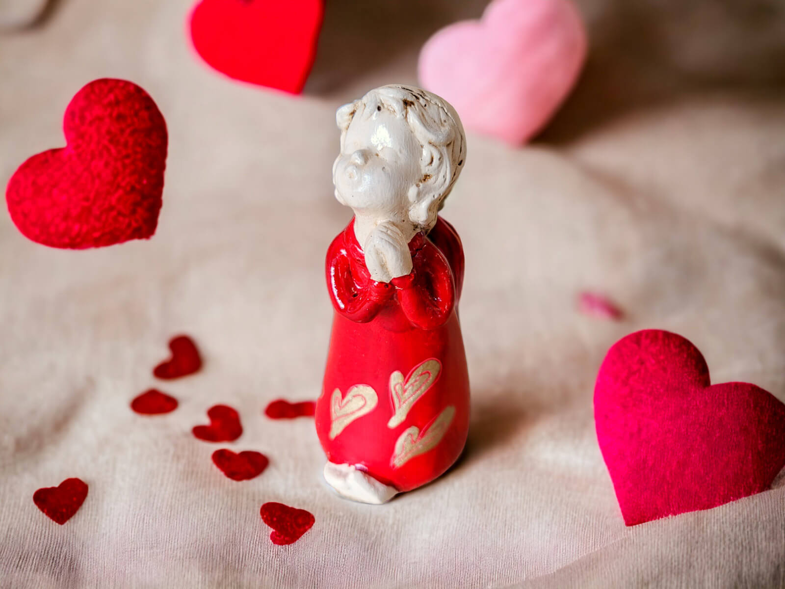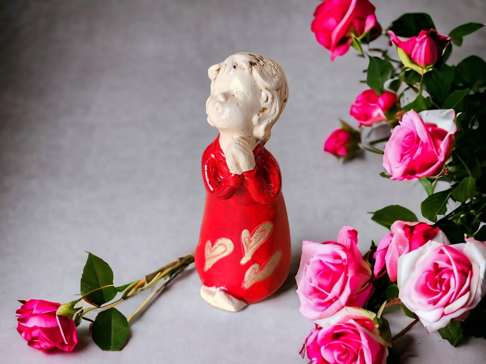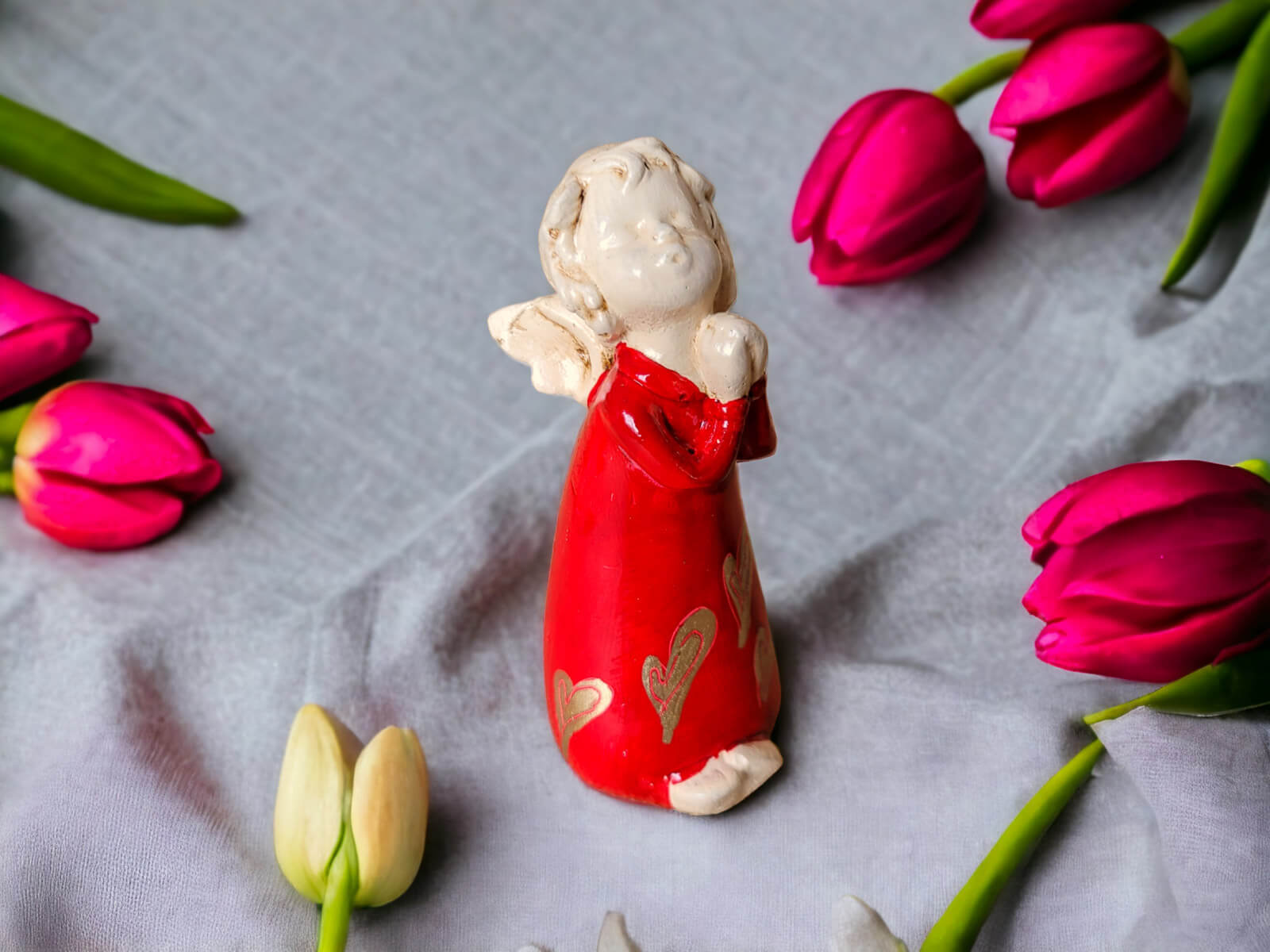 Figurka aniołka Marcela w kolorze czerwonym. W zależności od dostępności wysyłamy aniołka ze zdobieniem jak na zdjęciach (losowo).