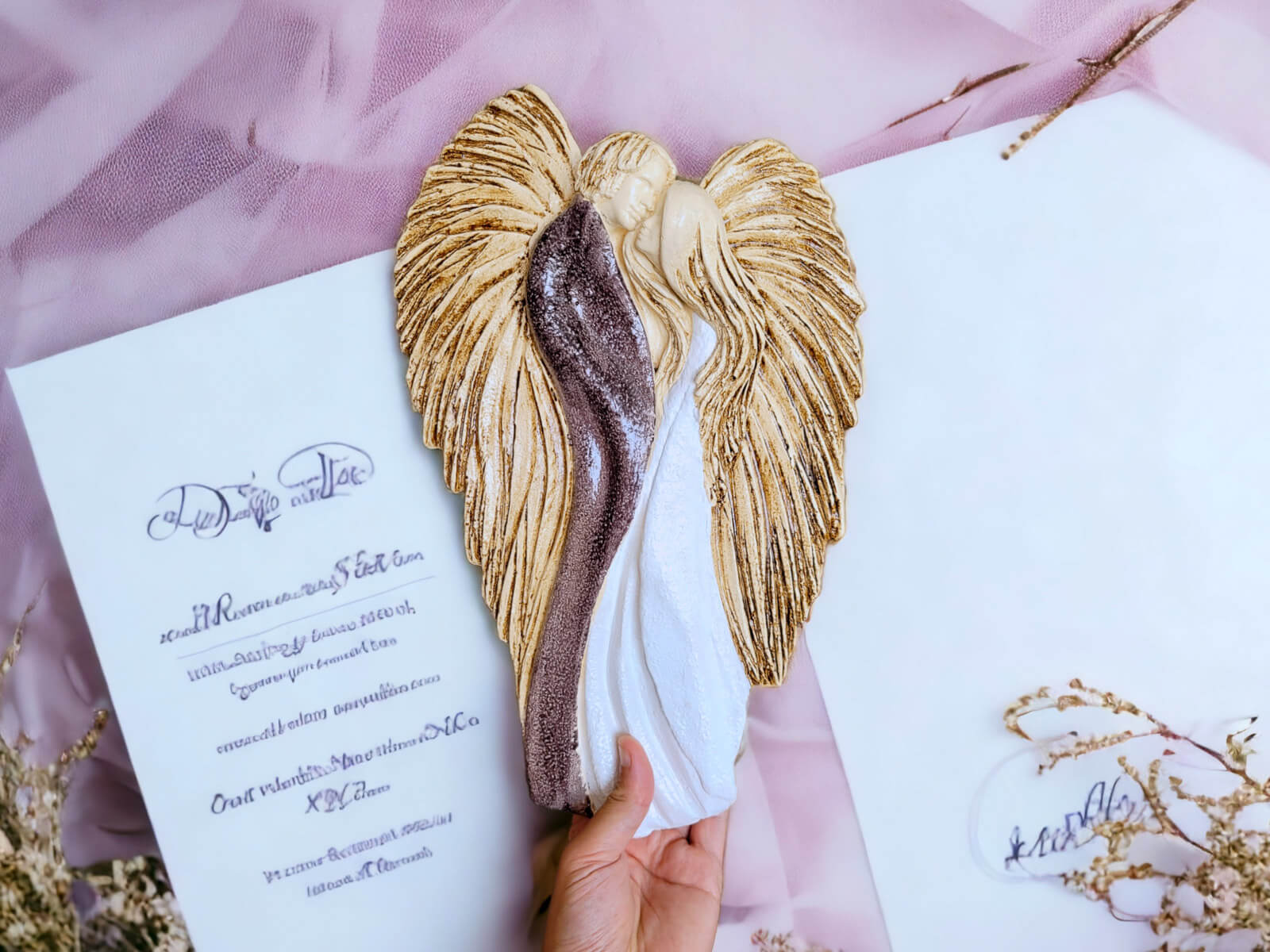 Dodatkowo aniołom można nadać osobisty charakter poprzez grawer. Grawer może być z przodu lub z tyłu anioła.