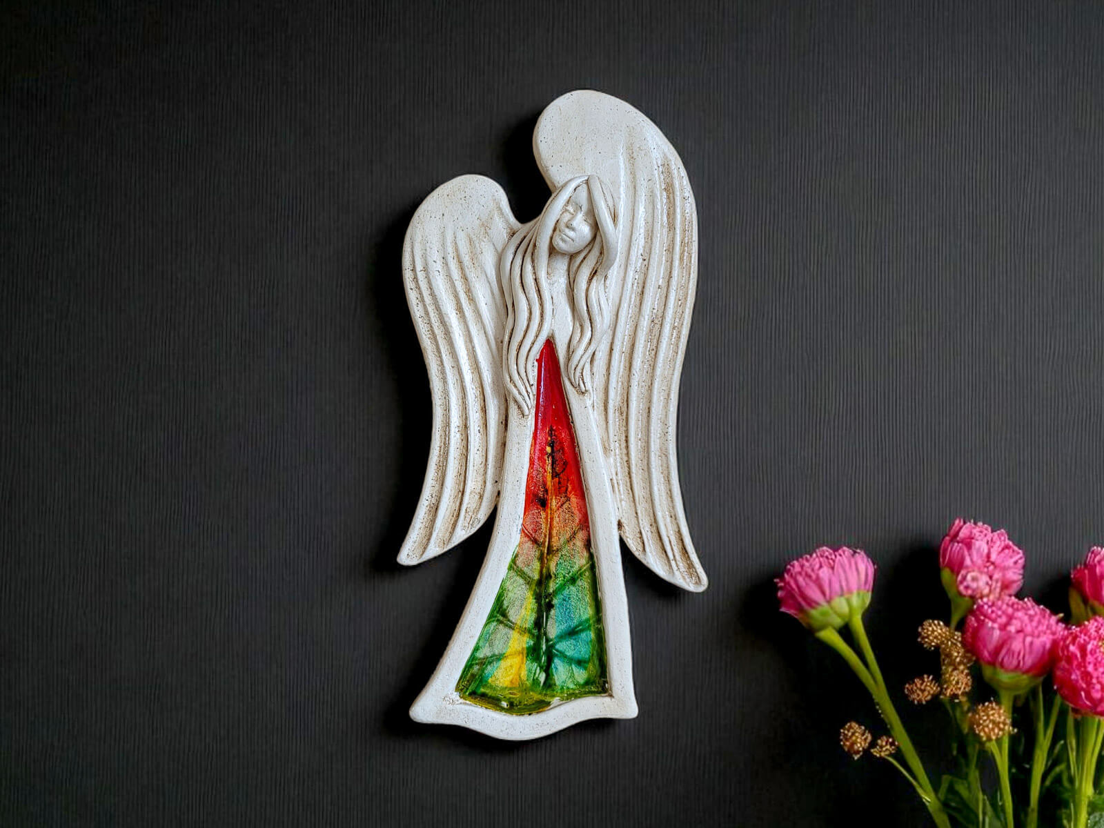 Jeśli anioł ma zostać wręczony jako prezent możemy go również elegancko zapakować w przeźroczysty celofan wiązany ekologicznym sznurkiem. Dzięki temu anioł będzie wyglądał jeszcze bardziej dostojnie i będzie gotowy do wręczenia. Dla wygody możesz również od razu zakupić papierową białą torbę prezentową.