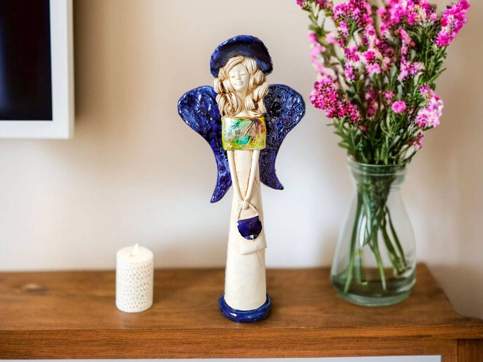 Jeśli anioł ma zostać wręczony jako prezent możemy go również elegancko zapakować w przeźroczysty celofan wiązany ekologicznym sznurkiem. Dzięki temu anioł będzie wyglądał jeszcze bardziej dostojnie i będzie gotowy do wręczenia. Dla wygody możesz również od razu zakupić papierową białą torbę prezentową.