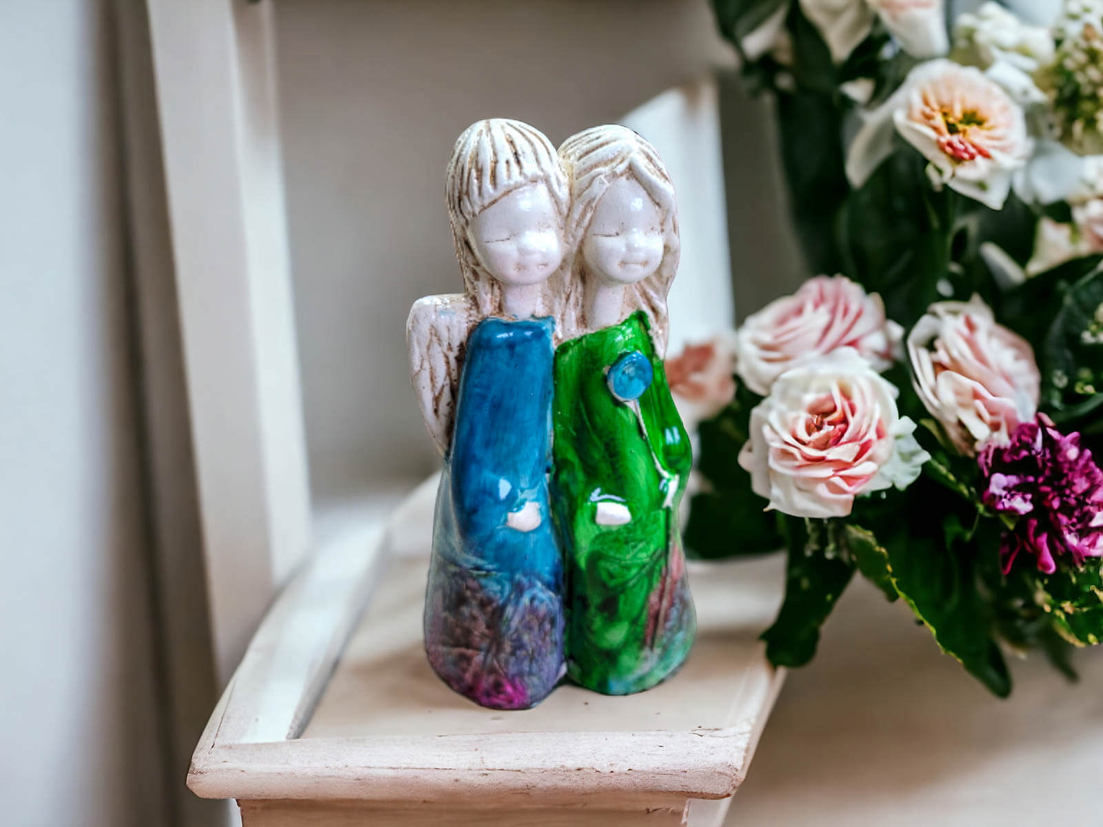 Jeśli anioł ma zostać wręczony jako prezent możemy go również elegancko zapakować w przeźroczysty celofan wiązany ekologicznym sznurkiem. Dzięki temu anioł będzie wyglądał jeszcze bardziej dostojnie i będzie gotowy do wręczenia. Dla wygody możesz również od razu zakupić papierową białą torbę prezentową.