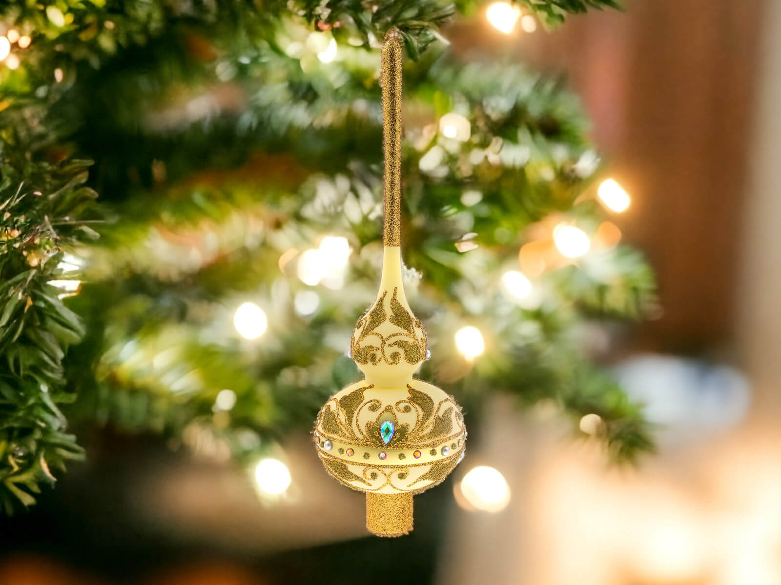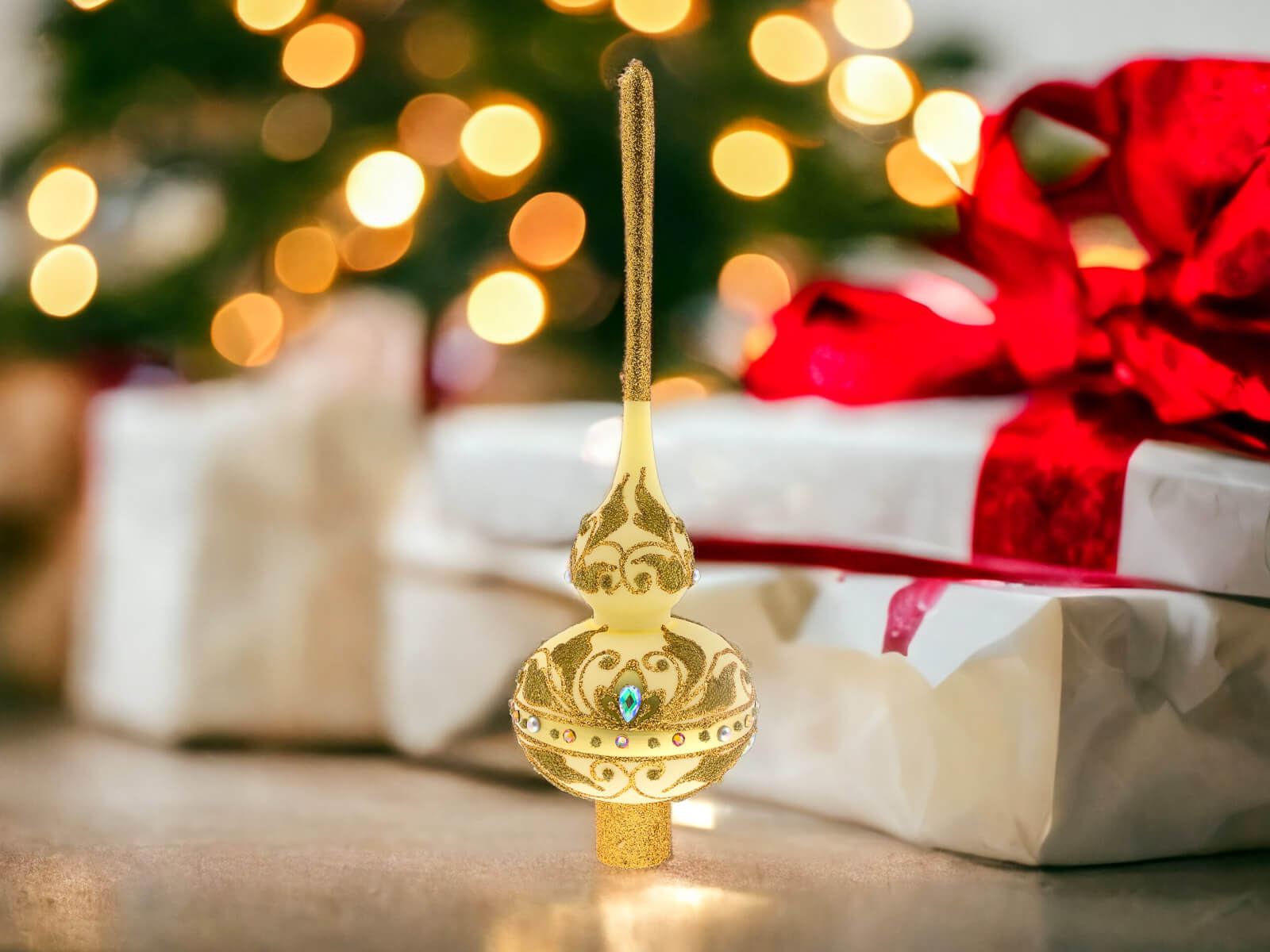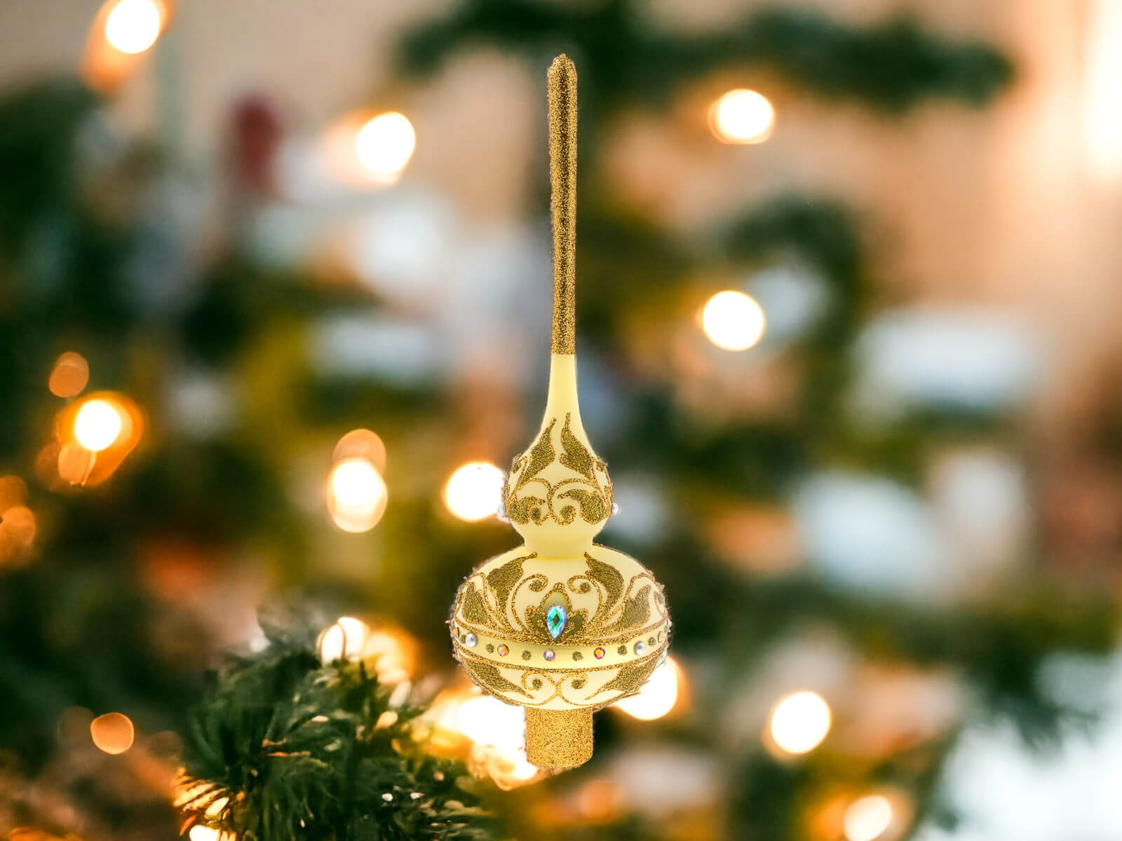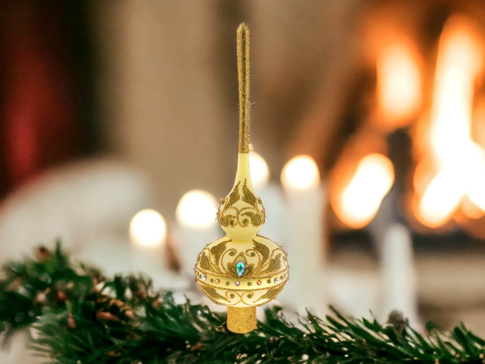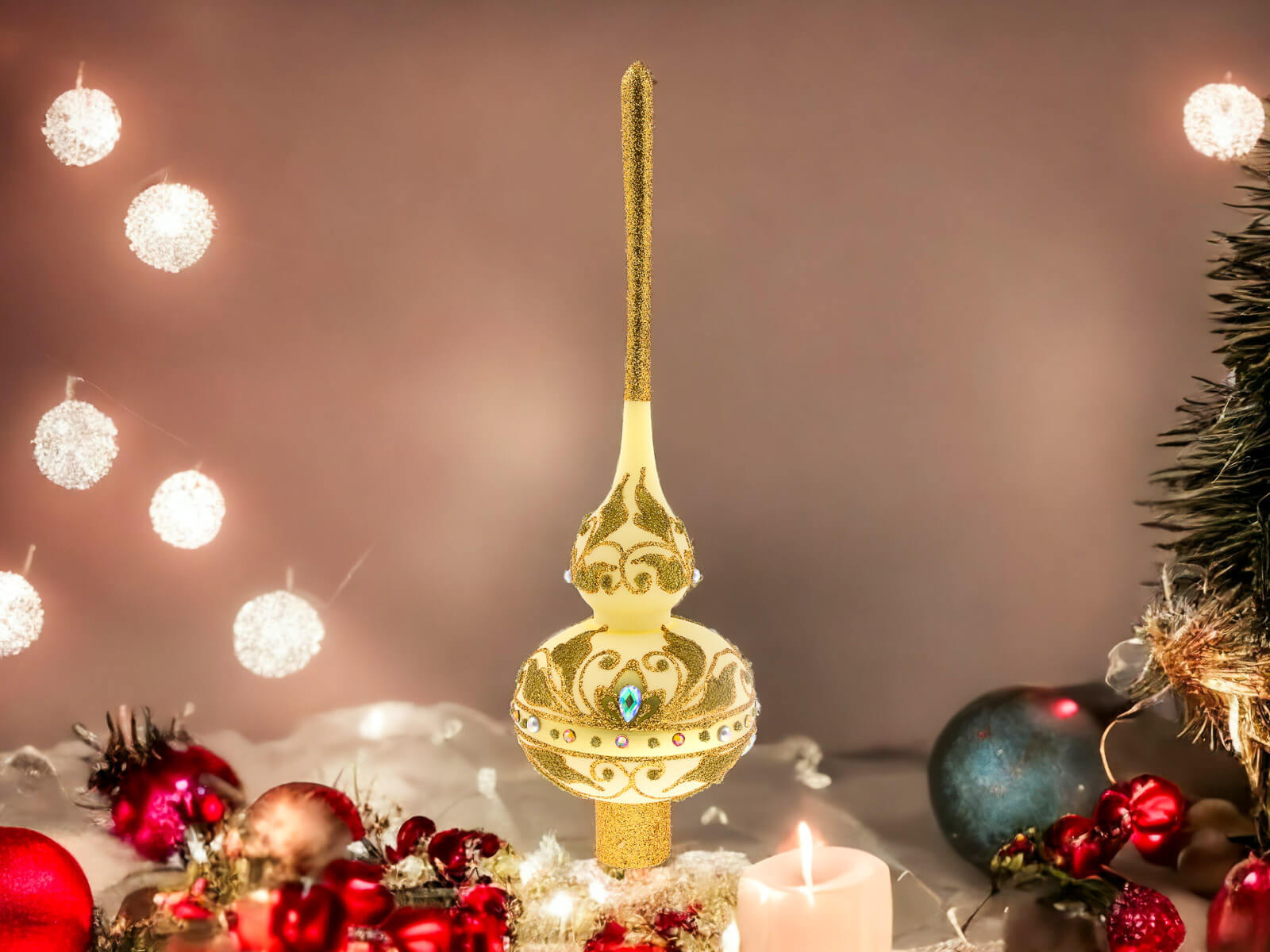 Dzięki perfekcyjnie dopracowanym detalom stanowi doskonałą ozdobę dla tych, którzy cenią elegancję i tradycję podczas świątecznego okresu. Ten szklany szpic choinkowy to niezapomniany akcent, który wnosi do domu ducha świąt Bożego Narodzenia w wyjątkowo stylowy sposób.