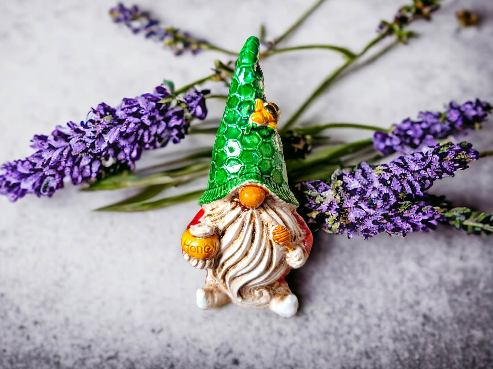 W rękach Pszczelarz trzyma swój ulubiony deser - miodek. To uroczy detal, który podkreśla związki tej postaci z pszczelimi przyjaciółmi oraz dodaje nutkę humoru. Ręcznie malowana figurka wyróżnia się subtelnością detali, co sprawia, że staje się wyjątkowym prezentem dla miłośników oryginalnych dekoracji.