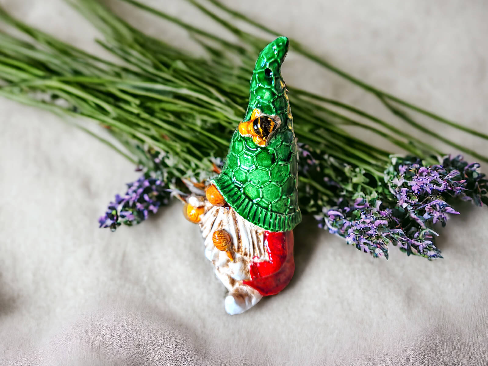 Najbardziej charakterystycznym elementem Skrzata Pszczelarza jest długa czapka, na której często siadają pszczoły. To swoiste partnerstwo między skrzatem a pszczołami tworzy niepowtarzalną atmosferę i sprawia, że figurka ta staje się nie tylko ozdobą, ale także małym przyjacielem natury.