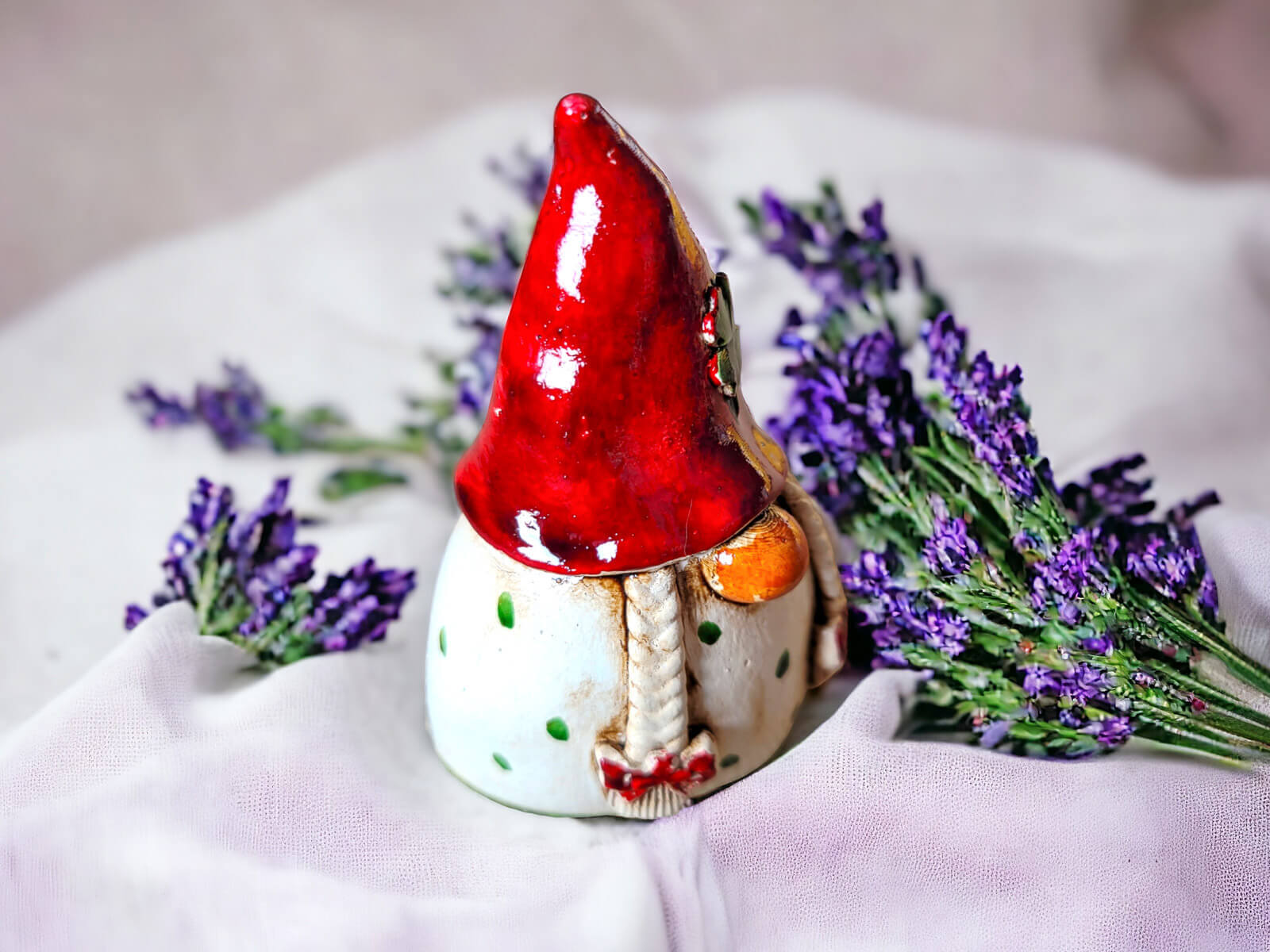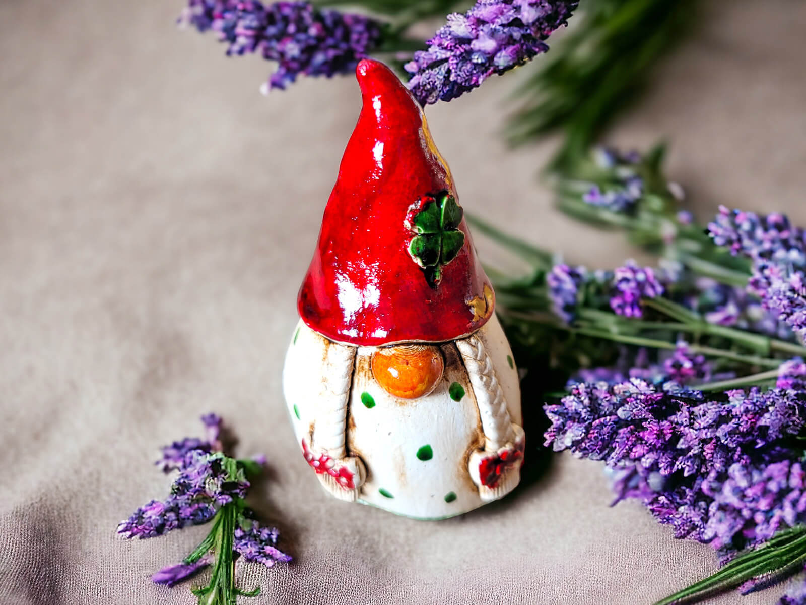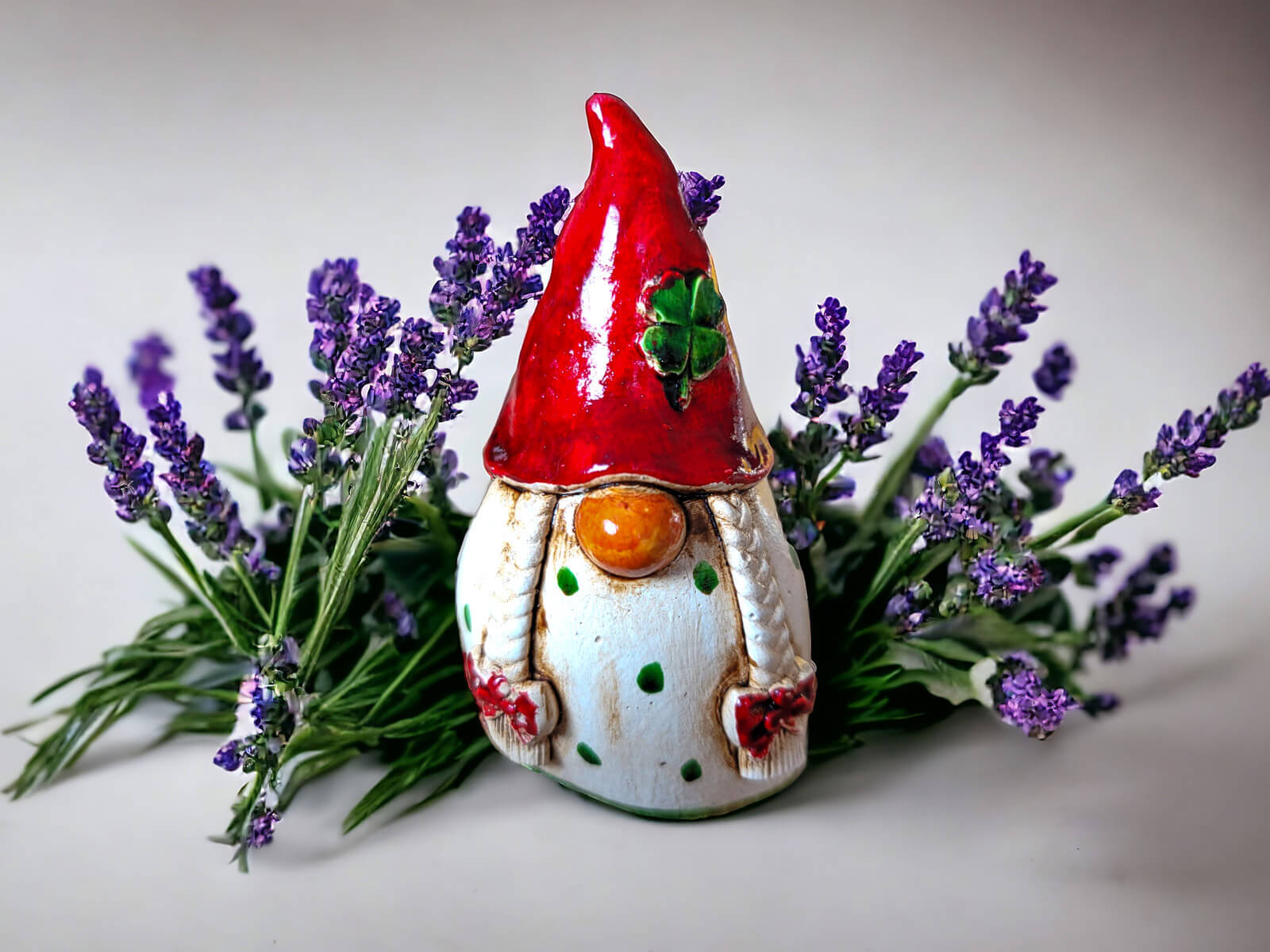 Figurka Smakosza utrzymana jest w beżowym kolorze, co nadaje jej ciepłego i przytulnego wyglądu. Charakterystyczna czerwona czapka z koniczynką dodaje postaci wyrazistego akcentu. Długa czapka jest nie tylko modnym dodatkiem, ale również praktycznym narzędziem dla Smakosza w jego kulinarnych eksploracjach.