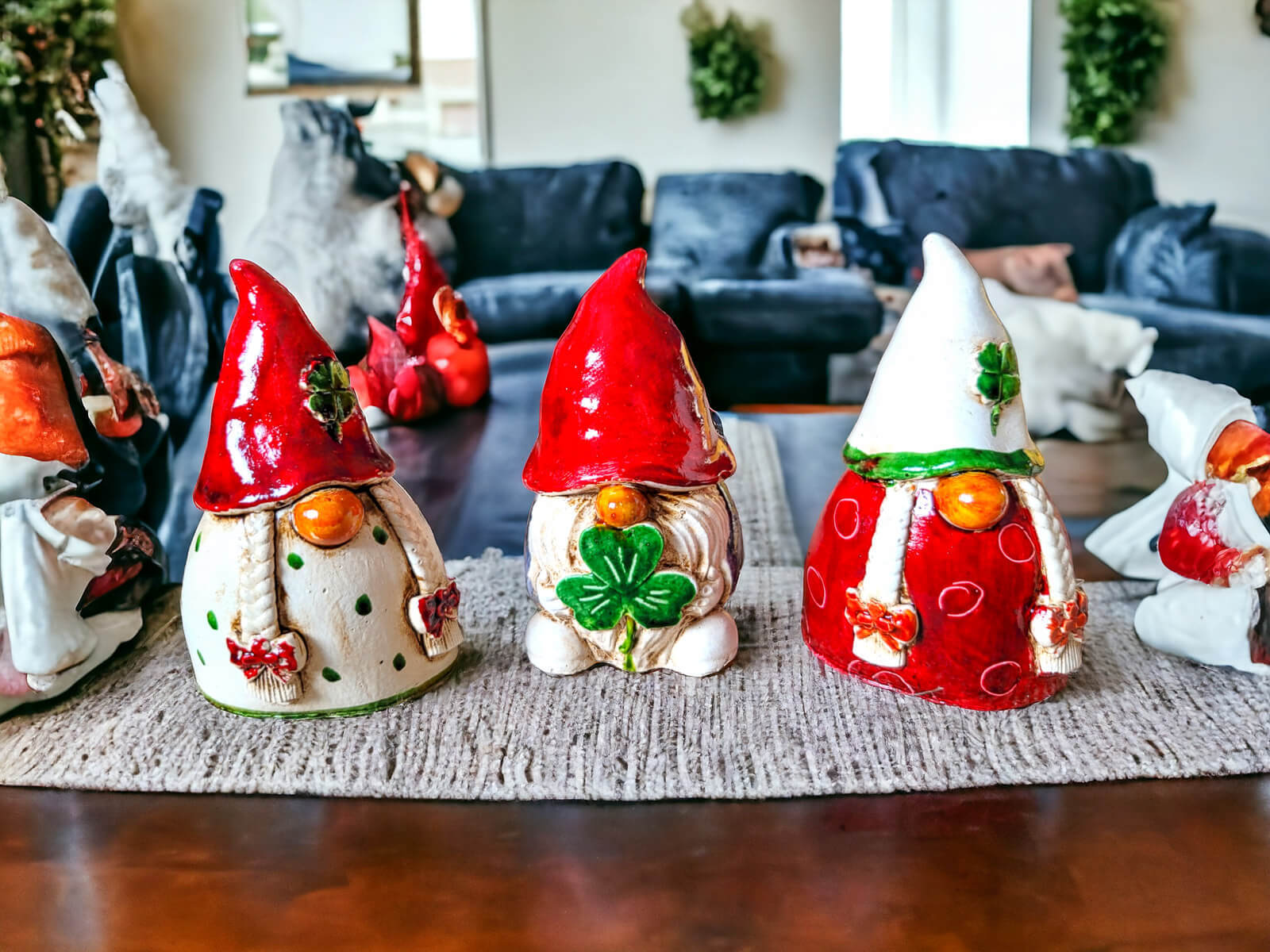 Figurka Smakosza utrzymana jest w czerwonym kolorze, co nadaje jej ciepłego i przytulnego wyglądu. Charakterystyczna beżowa czapka z koniczynką dodaje postaci wyrazistego akcentu. Długa czapka jest nie tylko modnym dodatkiem, ale również praktycznym narzędziem dla Smakosza w jego kulinarnych eksploracjach.