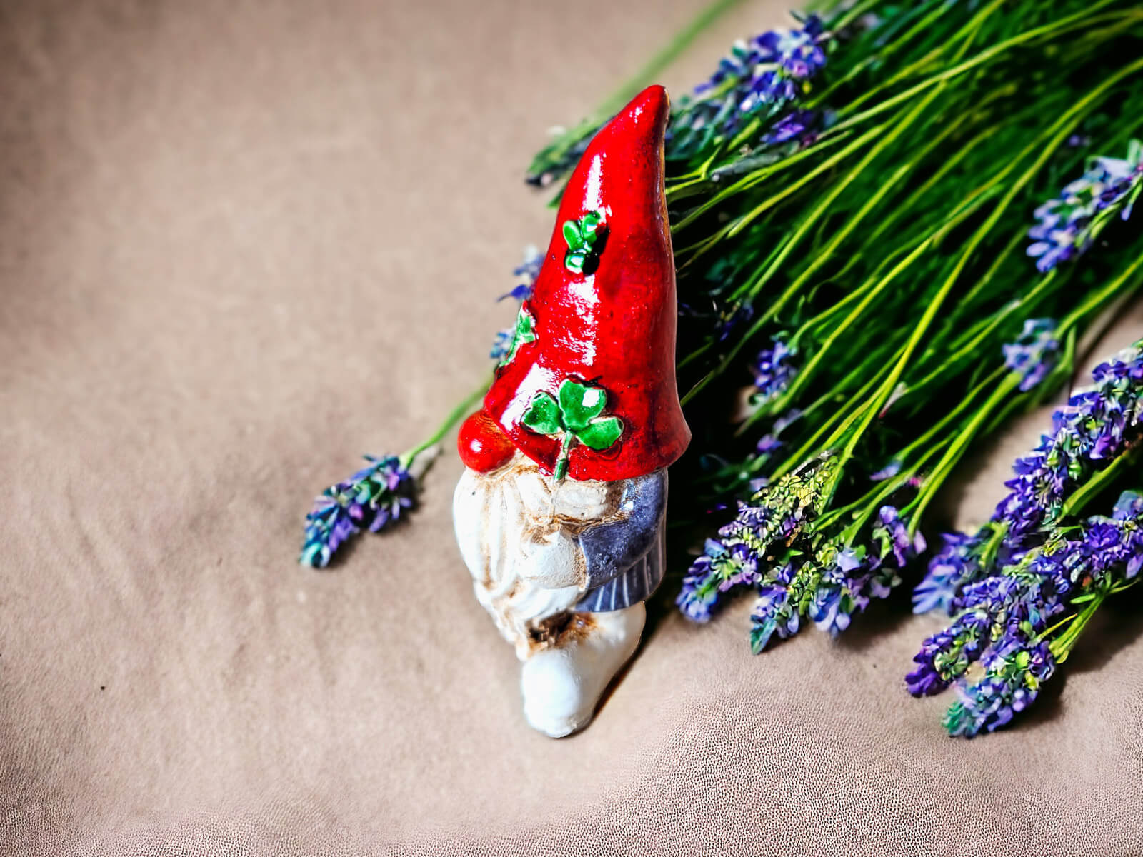 Jego czerwona czapka, z długim daszkiem, pełni nie tylko funkcję stylowego dodatku, ale także miejsca, do którego często przyklejają się koniczynki. Te pięciolistne koniczynki to znak szczęścia, a przypisywane im magiczne właściwości sprawiają, że Skrzat Szczęściarz uważany jest za posłańca pomyślności.