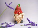 Skrzat Witaj prezentuje się w zielonym ubraniu, co nadaje mu subtelności i neutralności. Jego czerwona pokryta kwiatami czapka jest modnym elementem, który Skrzat nosi z dumą. Ta długa czapka to jego nieodłączny atrybut, który nadaje mu charakterystyczny wygląd.