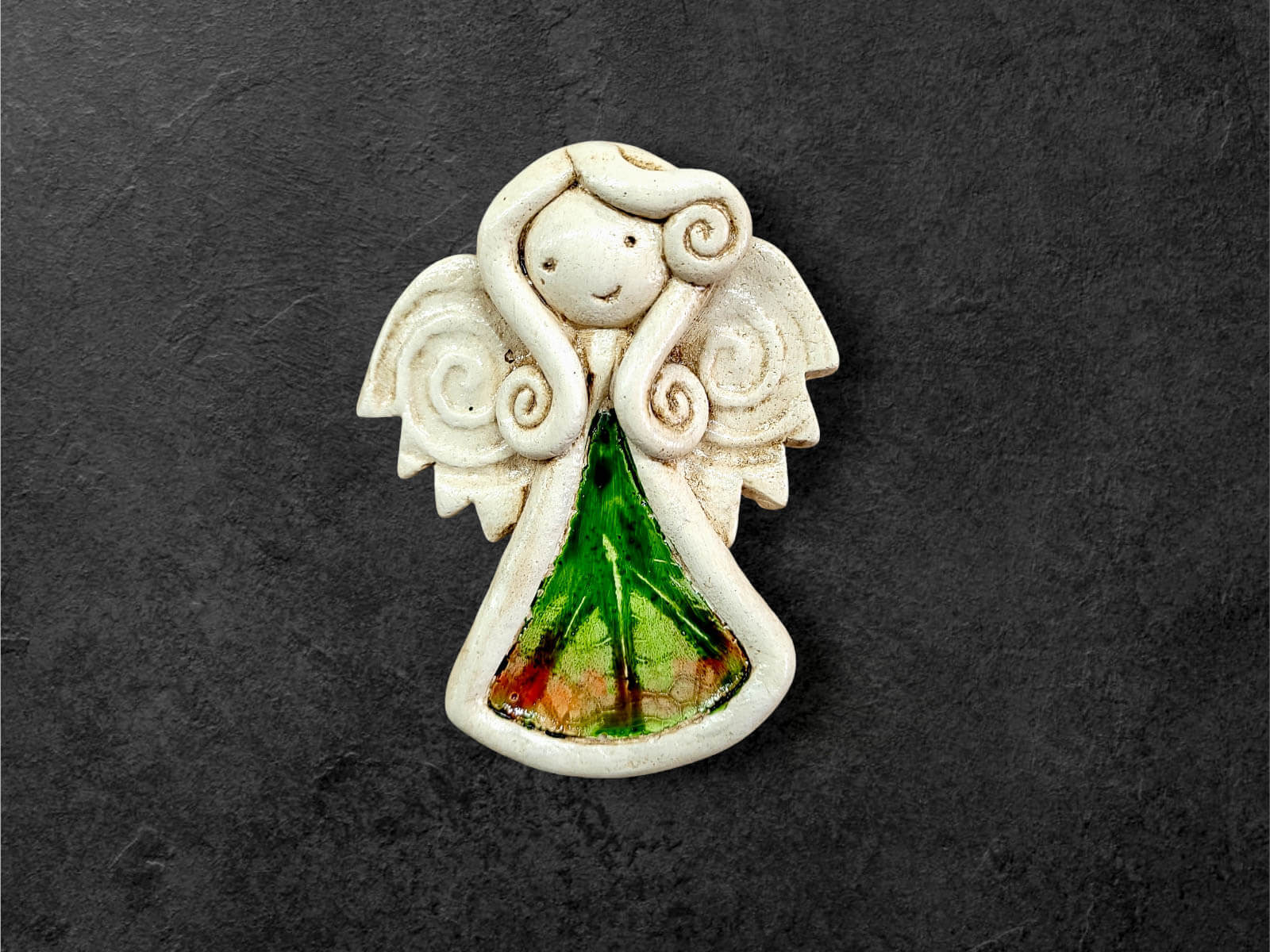 Ręcznie robiony aniołek Niunia w unikatowej wersji Art Leaf z liściem. Niunia jest śliczną dziewczynką, która całym sercem kocha swoją rodzinę. Jest troskliwa, martwi się o innych. Jest ubrana w kolorową sukienkę z wzorem liścia. Ma delikatne skrzydełka. Kolor czerwony jest symbolem miłości i namiętności. Figurka idealnie nadaje się na prezent dla ukochanej osoby z okazji walentynek.