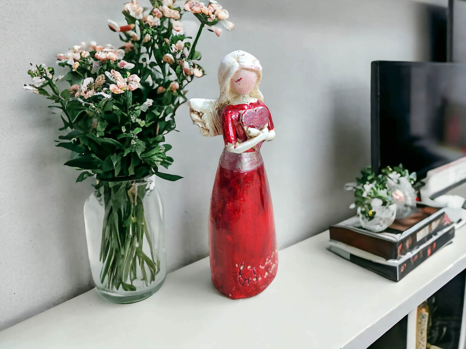 Jeśli anioł ma zostać wręczony jako prezent możemy go również elegancko zapakować w przeźroczysty celofan wiązany ekologicznym sznurkiem. Dzięki temu anioł będzie wyglądał jeszcze bardziej dostojnie i będzie gotowy do wręczenia. Dla wygody możesz również od razu zakupić papierową białą torbę prezentową.