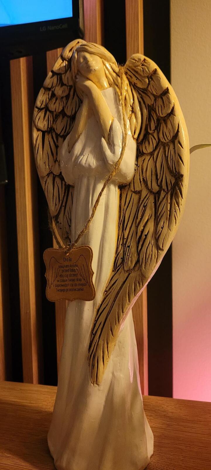 „Niech ta figurka przypomina Ci, że masz przy sobie anioła – zawsze, gdy się śmiejesz, gdy się boisz i gdy się modlisz.”