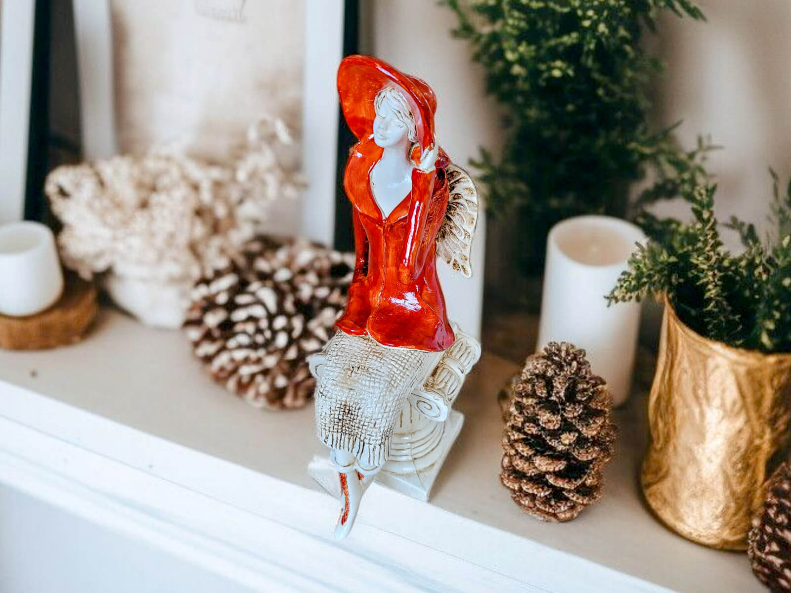 Anioł sprzedawany jest bez podstawki widocznej na zdjęciu. Kolor - Pomarańczowy