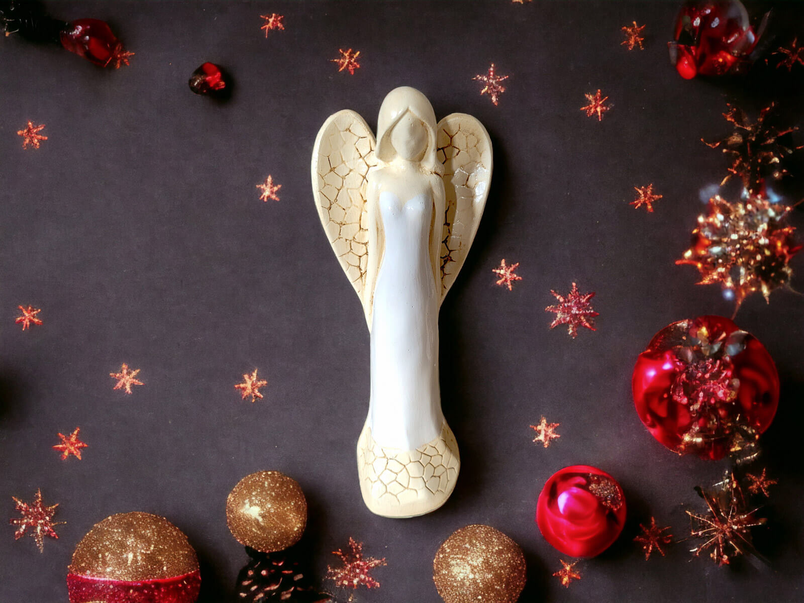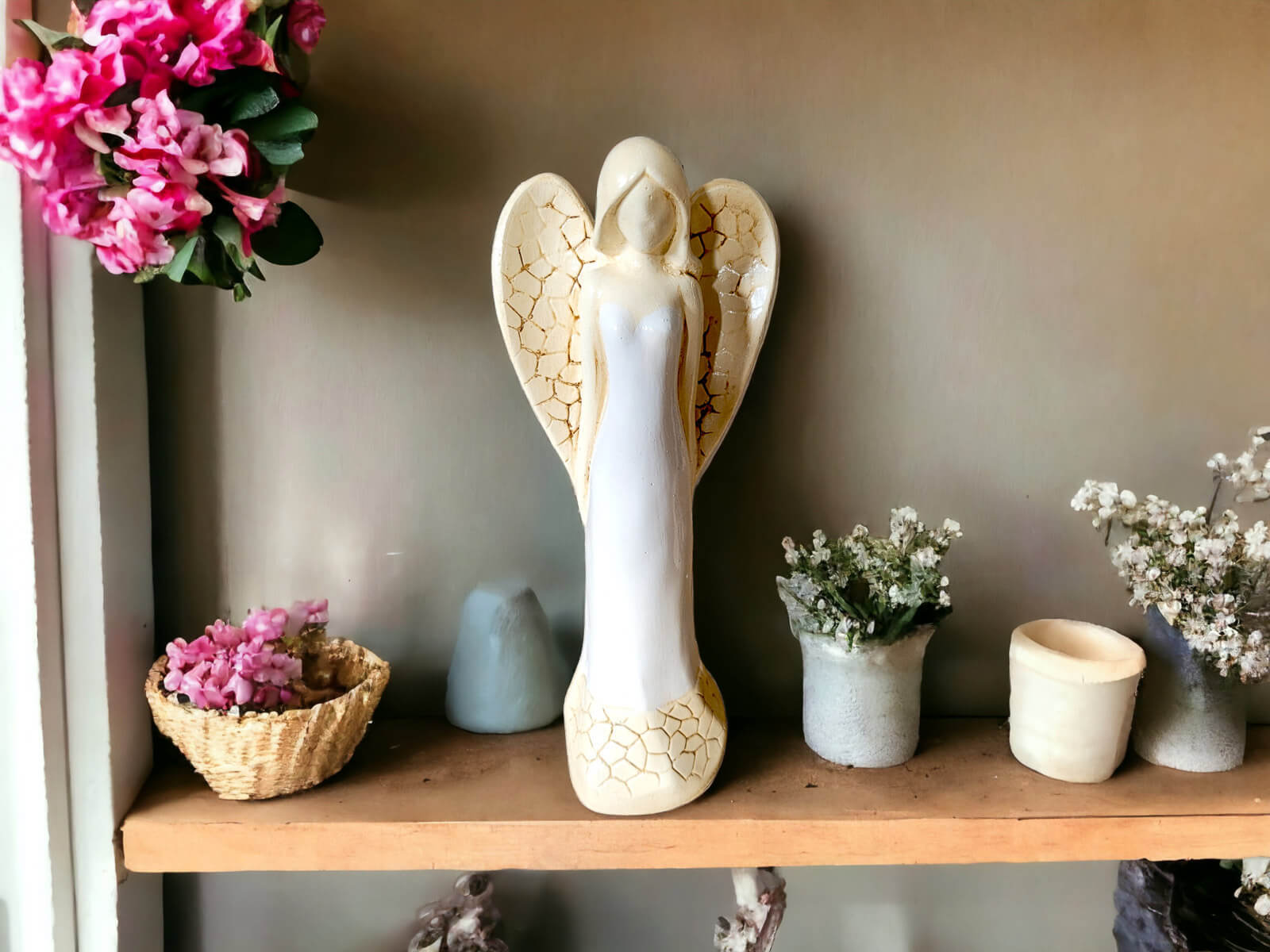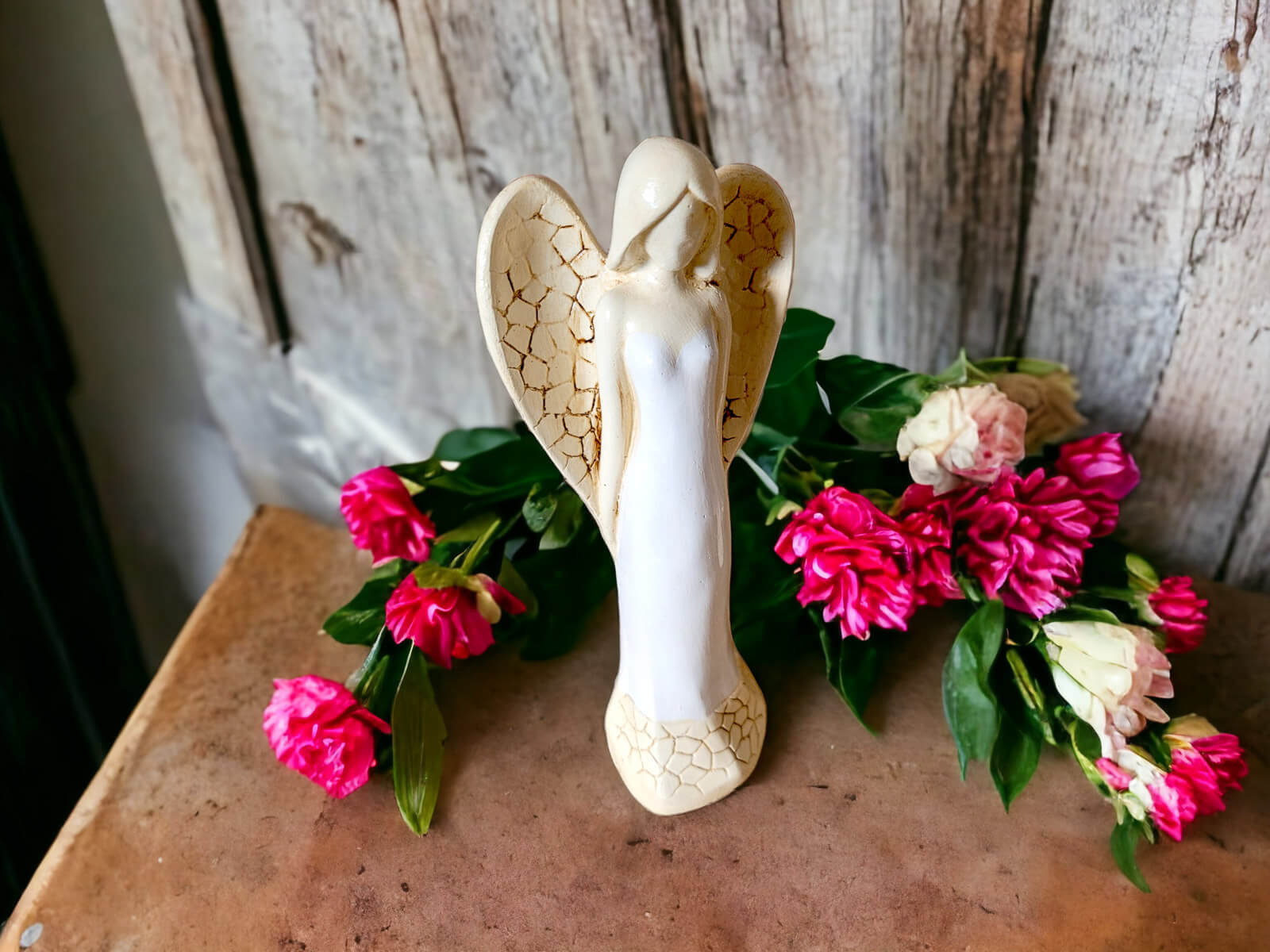 Jeśli anioł ma zostać wręczony jako prezent możemy go również elegancko zapakować w przeźroczysty celofan wiązany ekologicznym sznurkiem. Dzięki temu anioł będzie wyglądał jeszcze bardziej dostojnie i będzie gotowy do wręczenia. Dla wygody możesz również od razu zakupić papierową białą torbę prezentową.