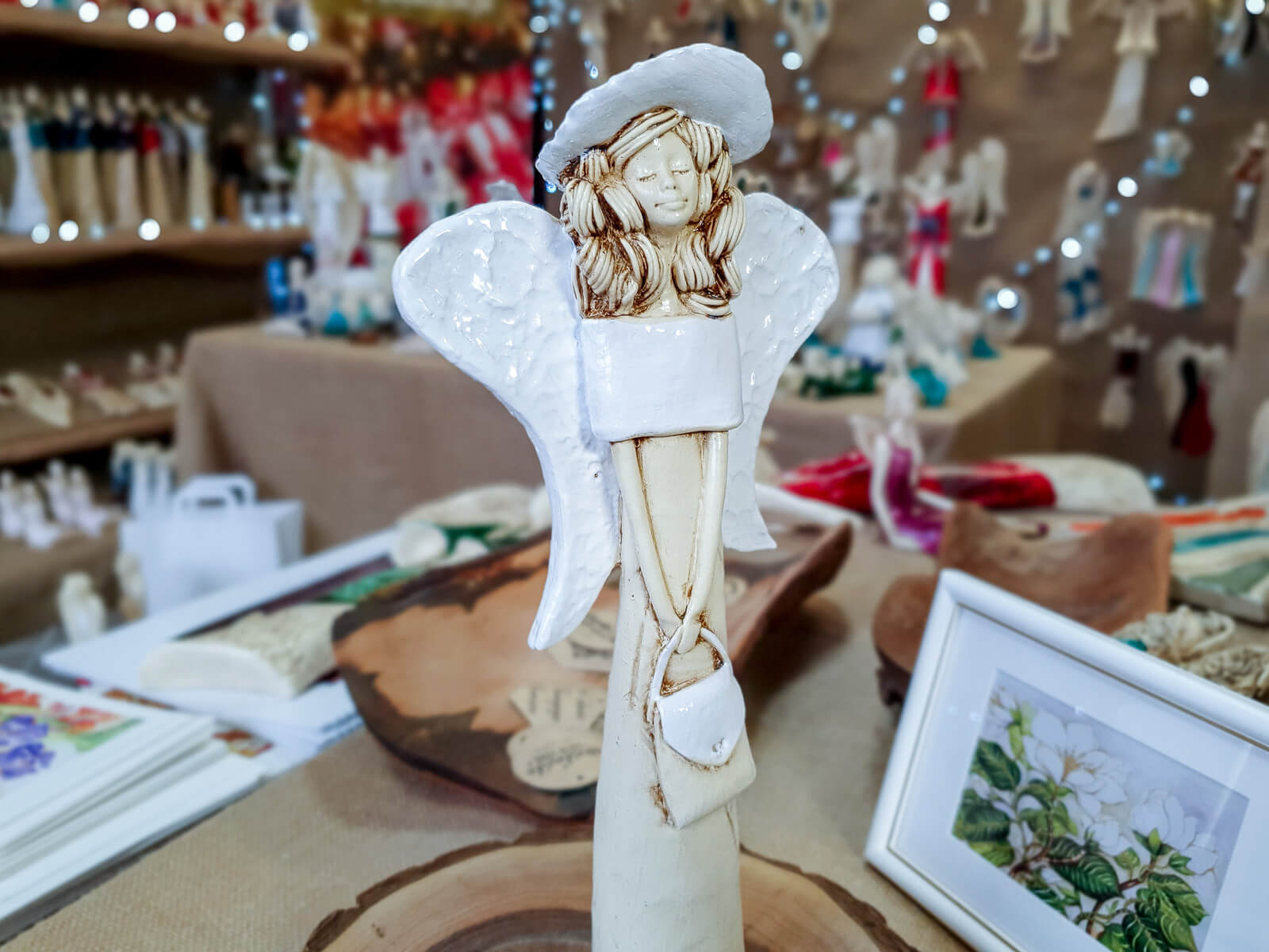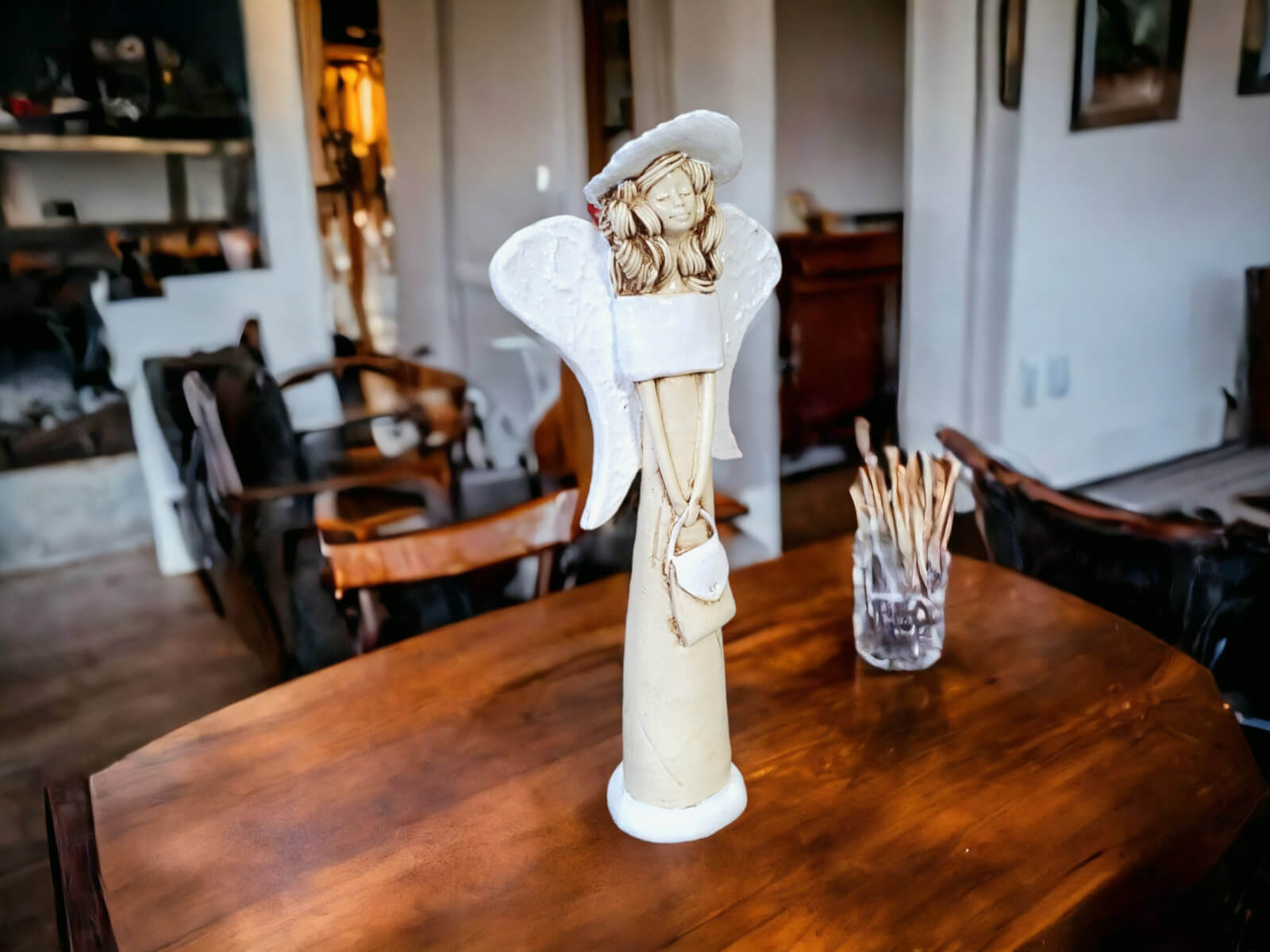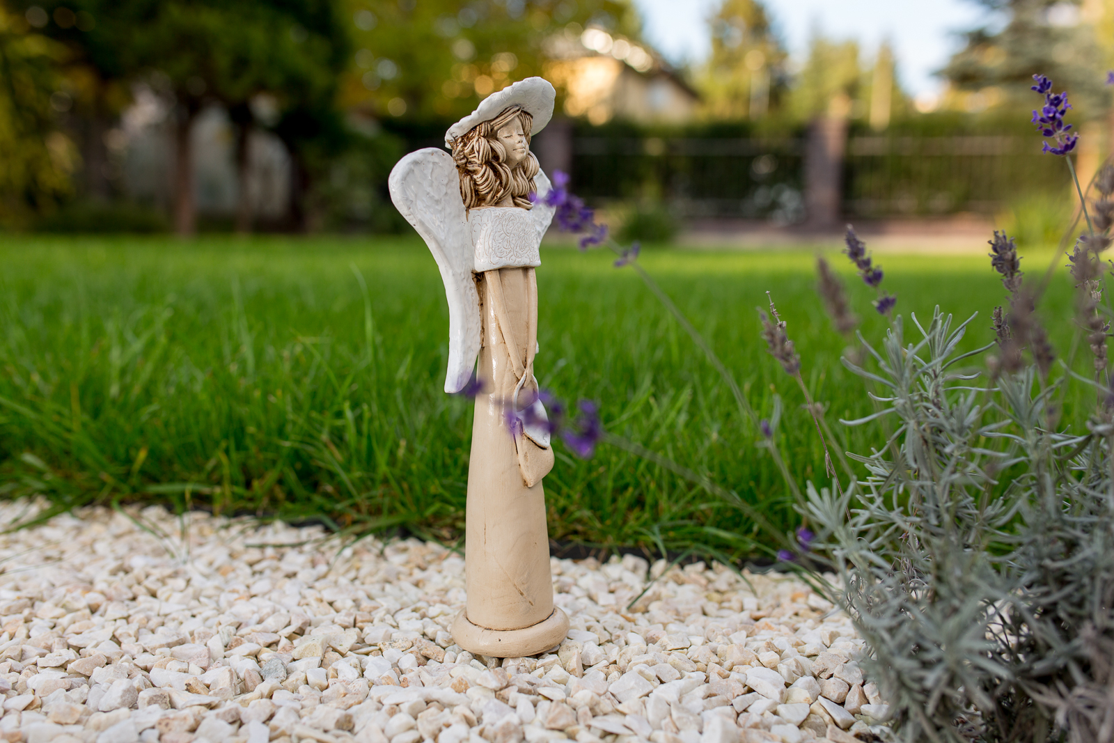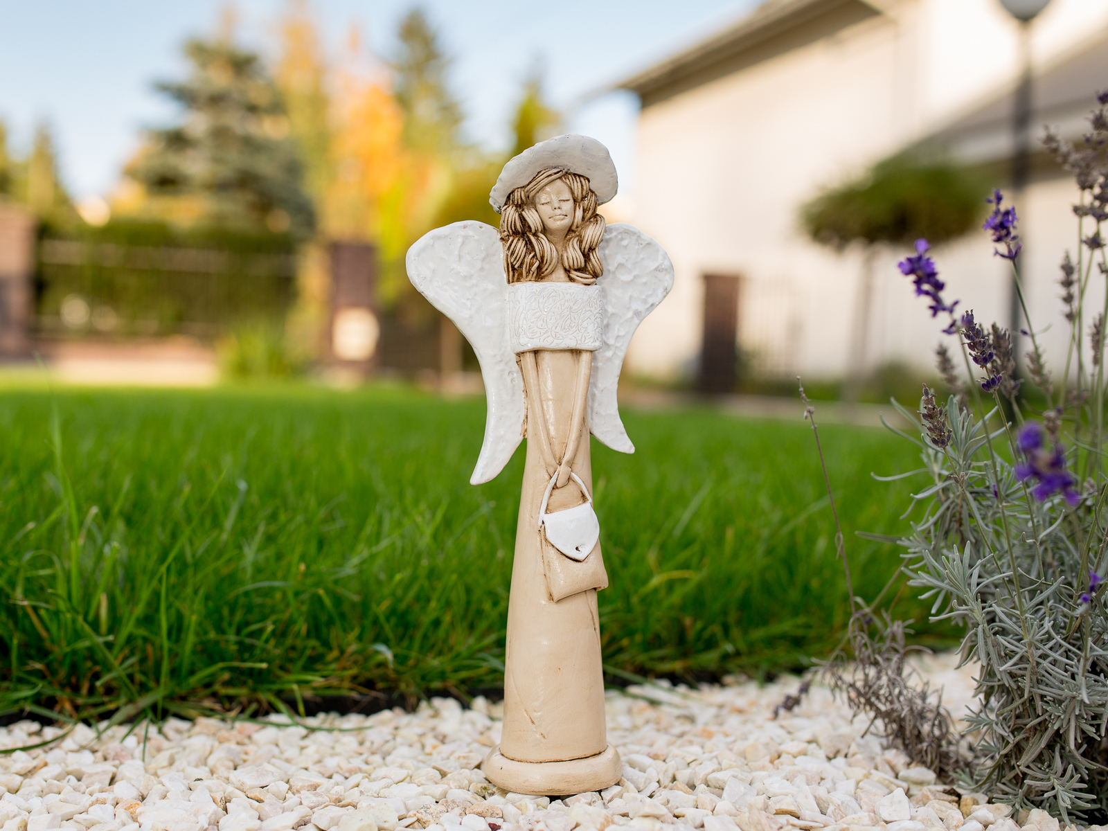 Anioł Coco to ręcznie wykonana figurka w kształcie filigranowej dziewczynki. Ma cudowne rozłożyste skrzydła.Jej beżowy ubiór podkreślają białe akcenty. Figurka Coco idealnie nadaje się na prezent dla dziewczynki jako pamiątka komunijna oraz chrzciny. Anioł może pięknie prezentować się jako ozdoba wnętrz jak i ogrodu.