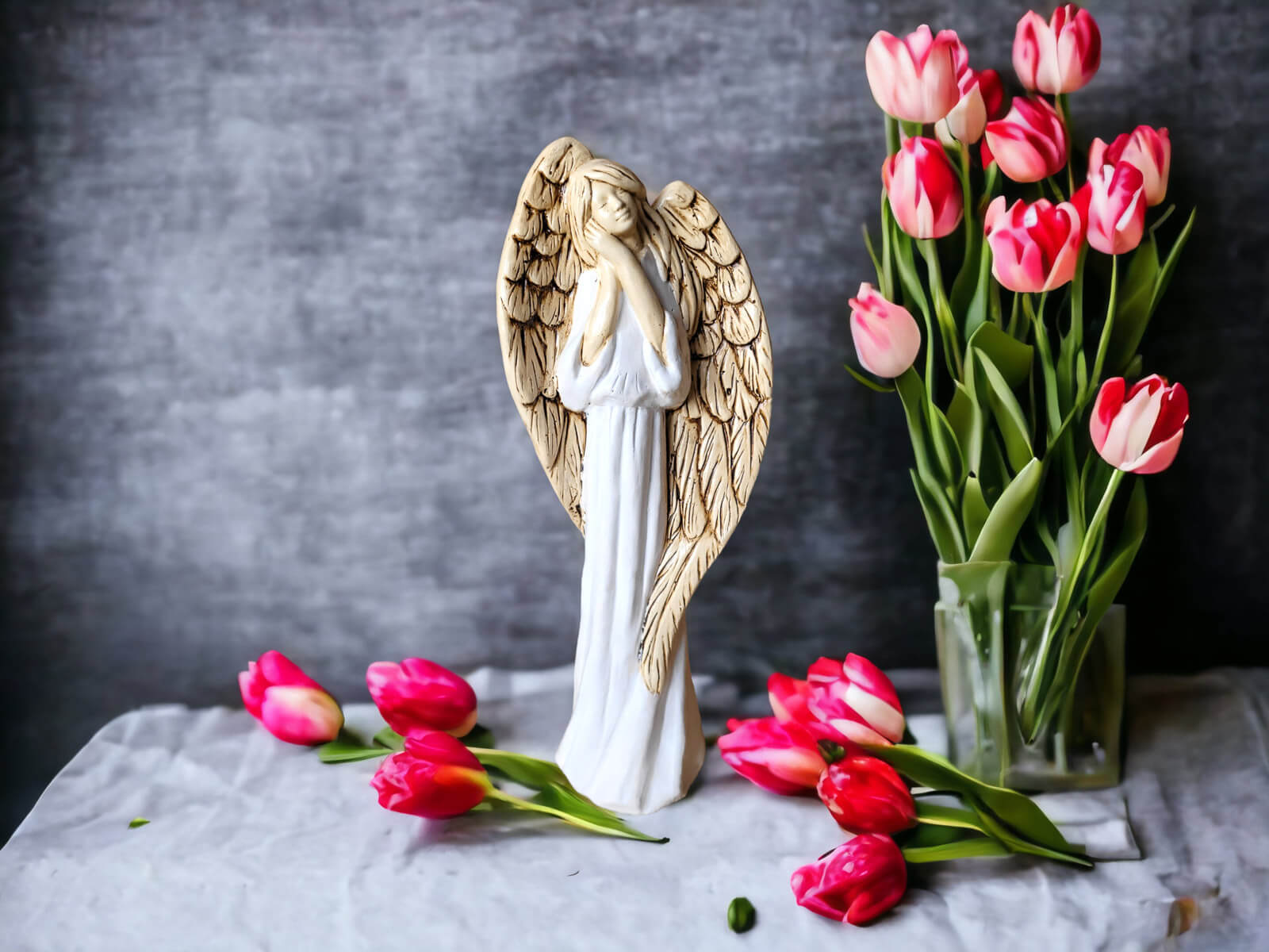 Anioł Gabriel to ręcznie wykonana gipsowa figurka w pięknych odcieniach bieli i beżu. Anioł ma cudowne, rozłożyste skrzydła i przybiera postać o złożonych dłoniach przy twarzy, na której maluje się spokój i melancholia. Idealnie sprawdzi się na prezent ślubny czy komunijny. Może efektownie ozdabiać zarówno wnętrza, jak i ogród.