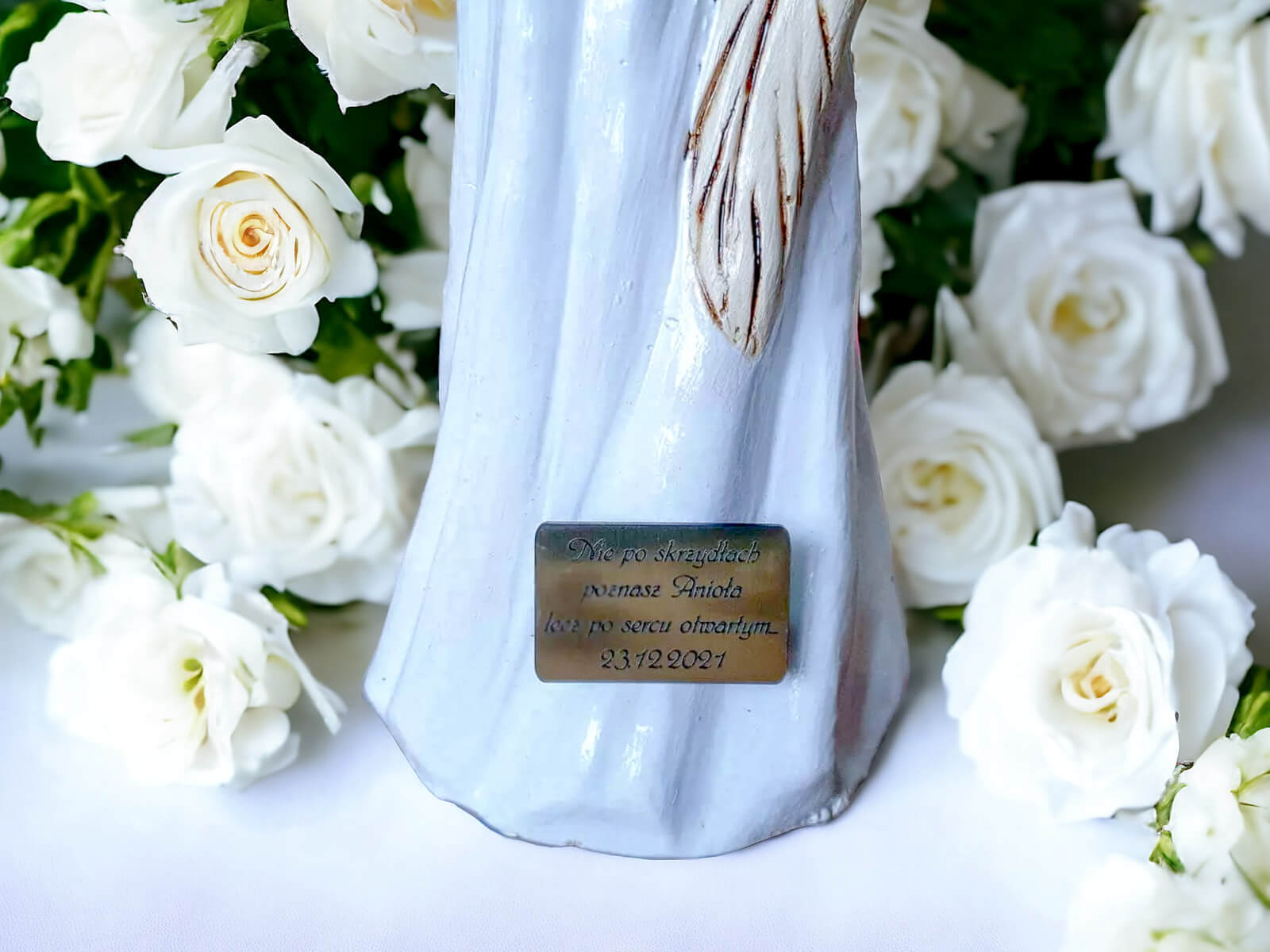 Dodatkowo aniołom można nadać osobisty charakter poprzez grawer. Grawer może być z przodu lub z tyłu anioła.
