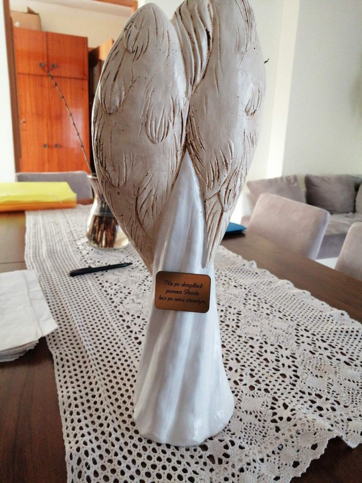 „Niech ta figurka przypomina Ci, że masz przy sobie anioła – zawsze, gdy się śmiejesz, gdy się boisz i gdy się modlisz.”