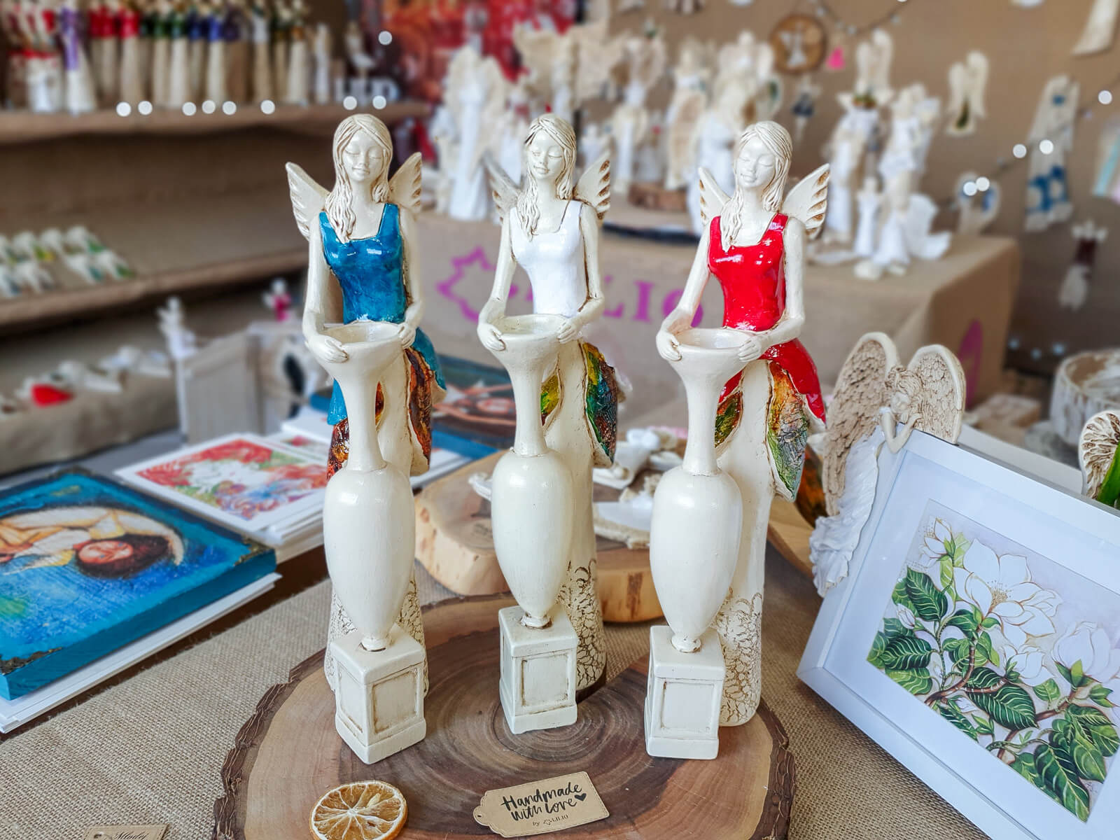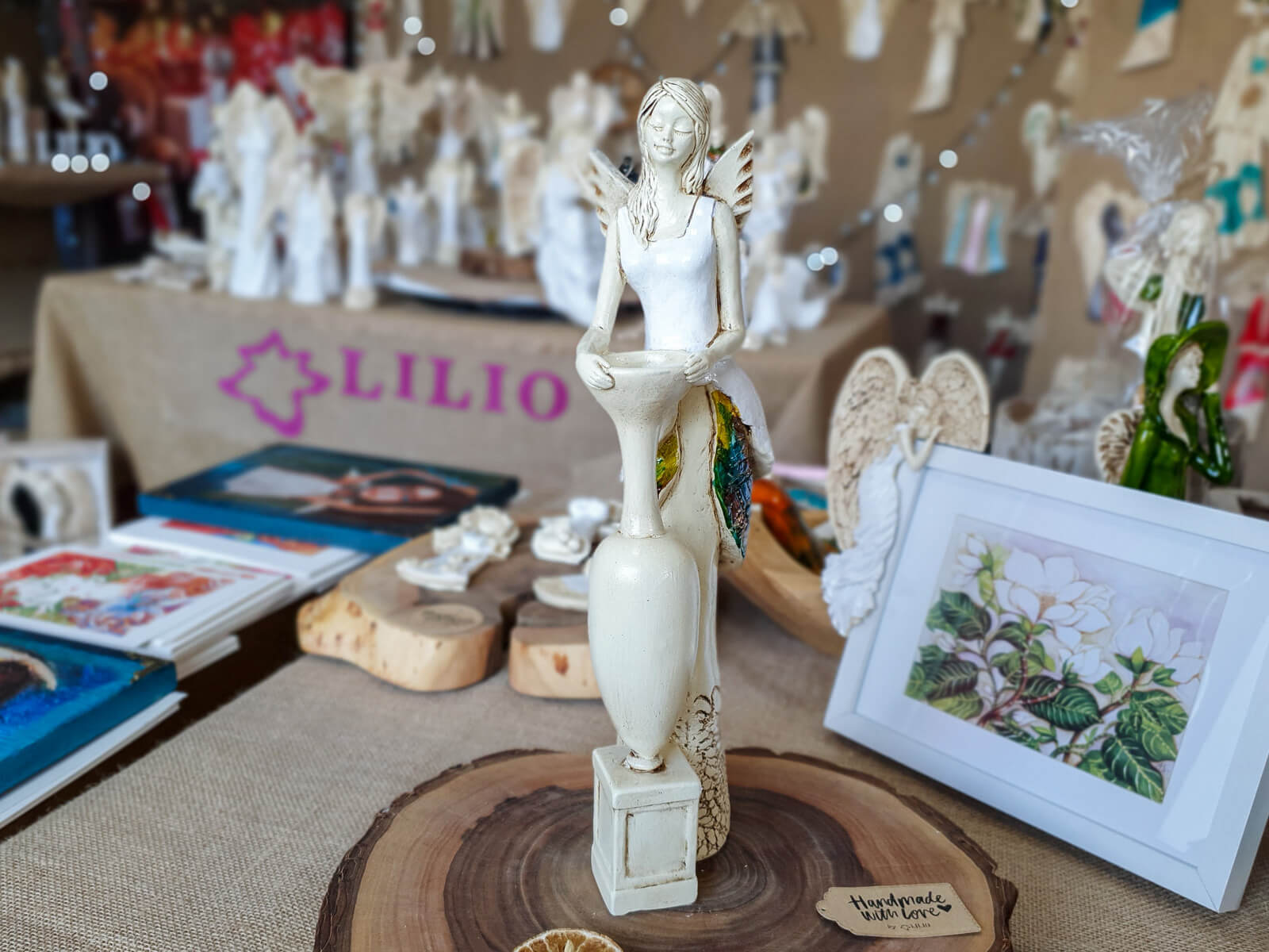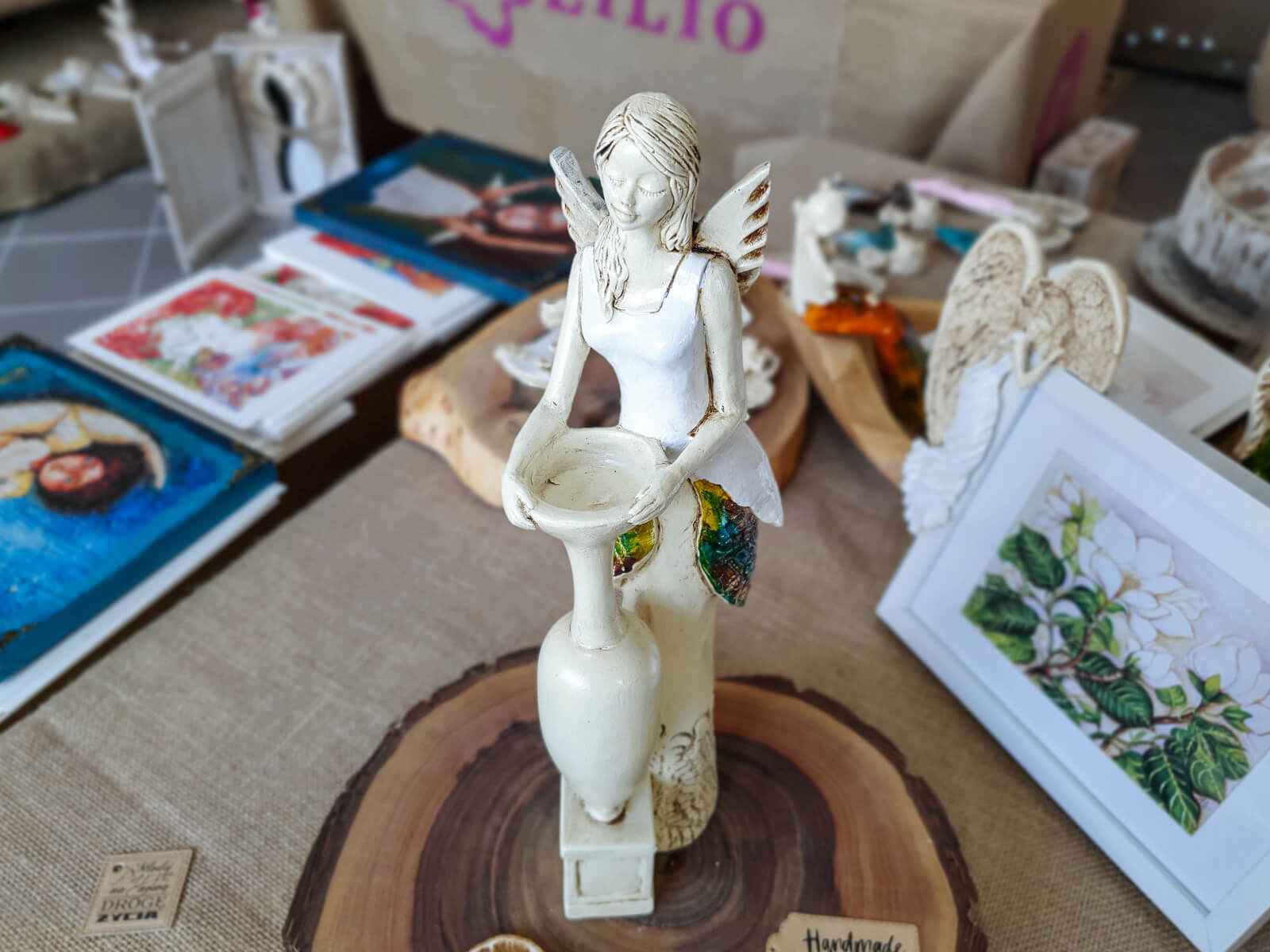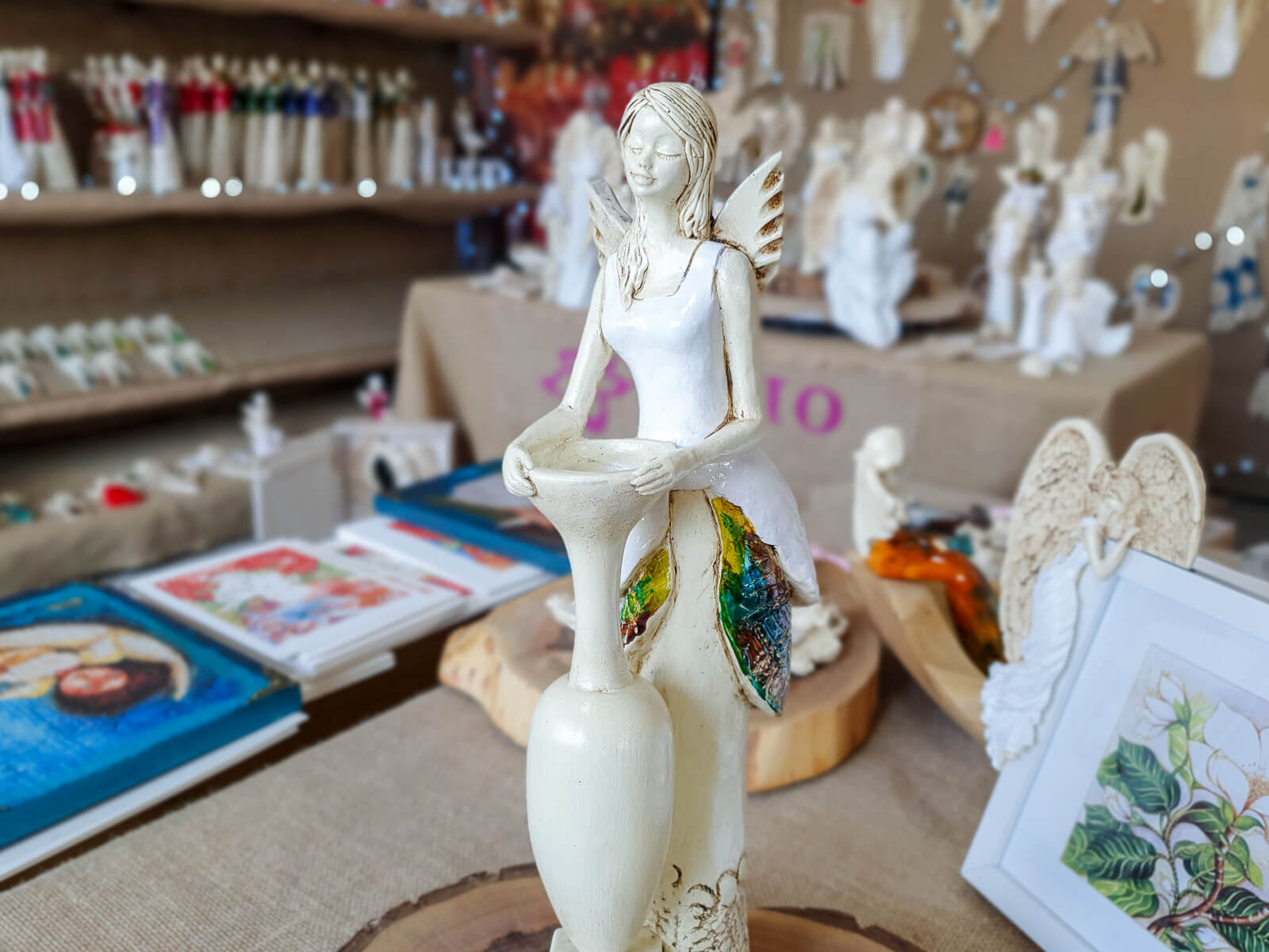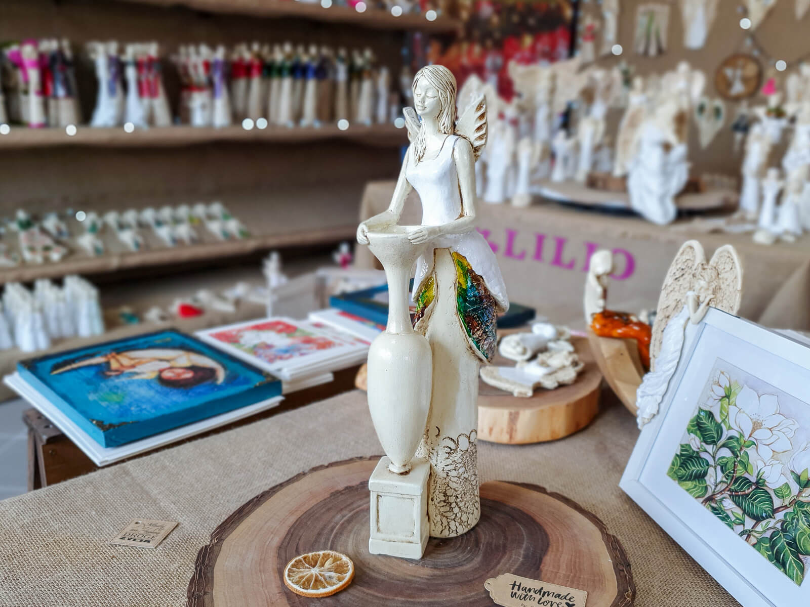 Anioł Suri w białej sukni jest garncarką, która swoimi zgrabnymi dłońmi tworzy naczynia. Daje jej to wiele radości, a przedmioty, które wyszły spod jej rąk są jedyne w swoim rodzaju. Jej suknia podkreśla delikatność, a włosy opadające na ramiona dodają jej kobiecości. Figurka może pięknie ozdabiać salon, tworząc niezwykłą atmosferę będą lampionem z palącym tea lightem.