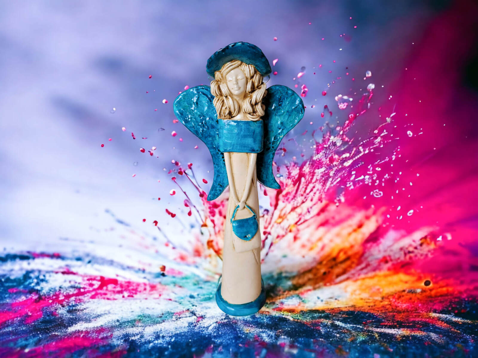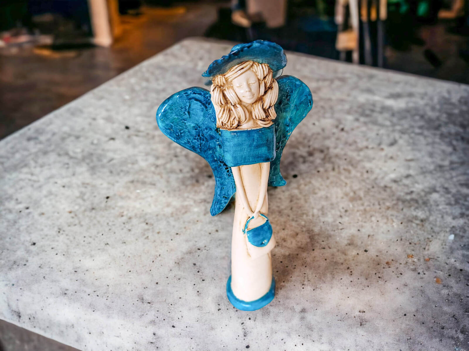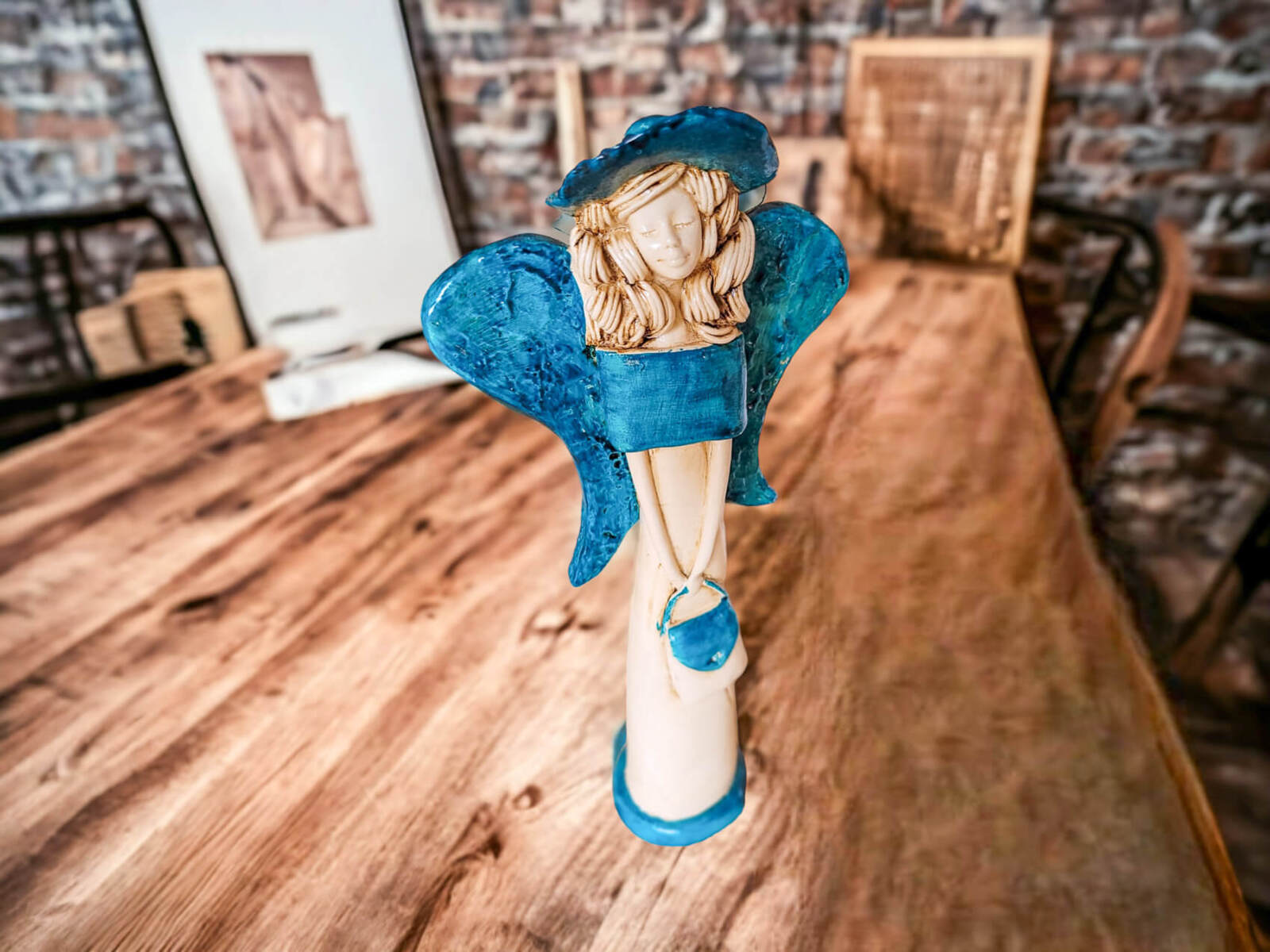 Anioł Coco to ręcznie wykonana figurka z gipsu o nietuzinkowym wyglądzie. Coco to wytworna dama, która wybiera się na bal. Jej piękna,elegancka, biała suknia podkreśla jej figurę. Jej ubiór akcentują turkusowe dodatki. Idealnie nadaje się na prezent dla kobiet. Dopełni klasyczne jaki i nowoczesne wnętrze oraz świetnie się sprawdzi jako ozdoba ogrodowa.