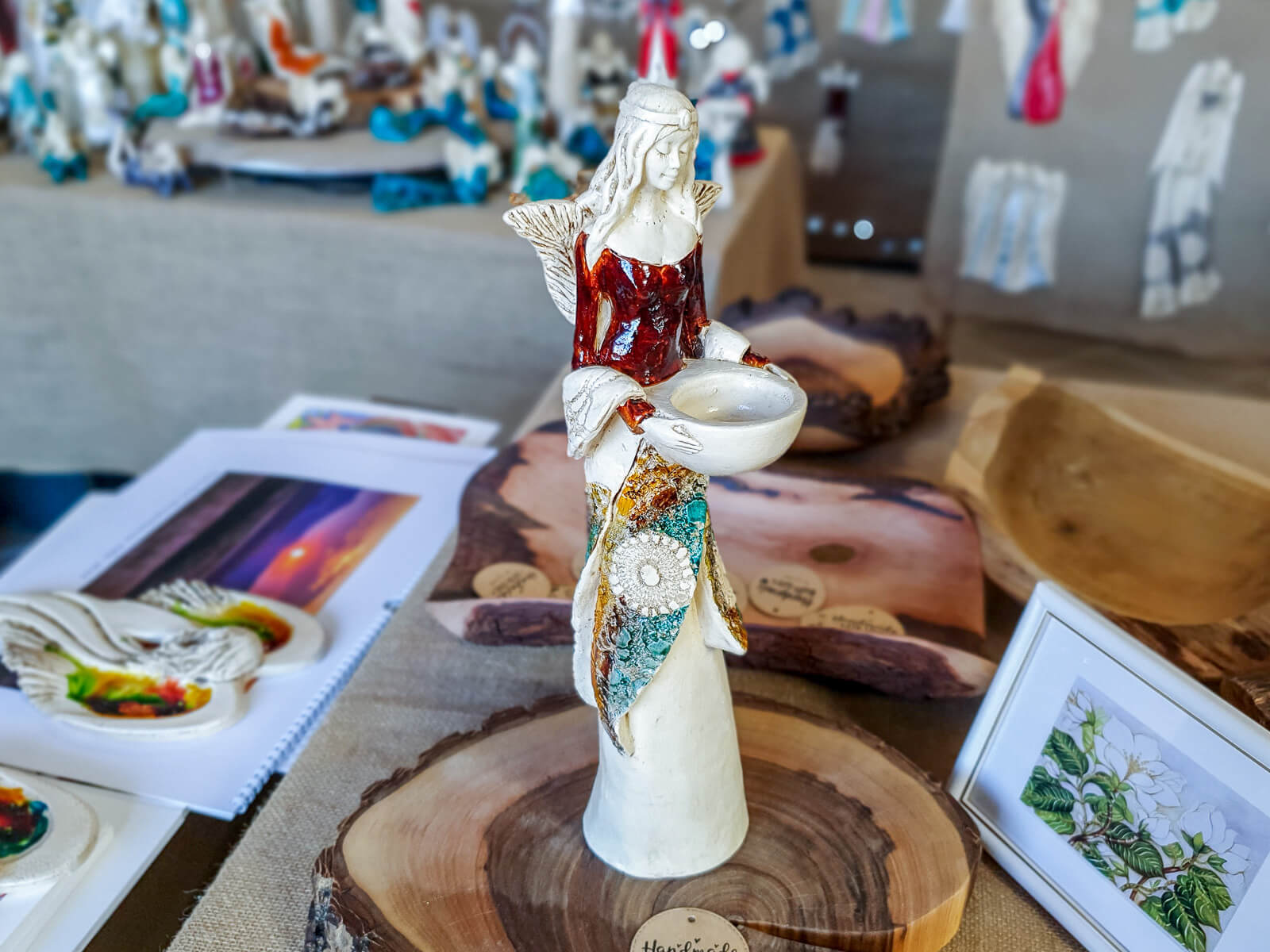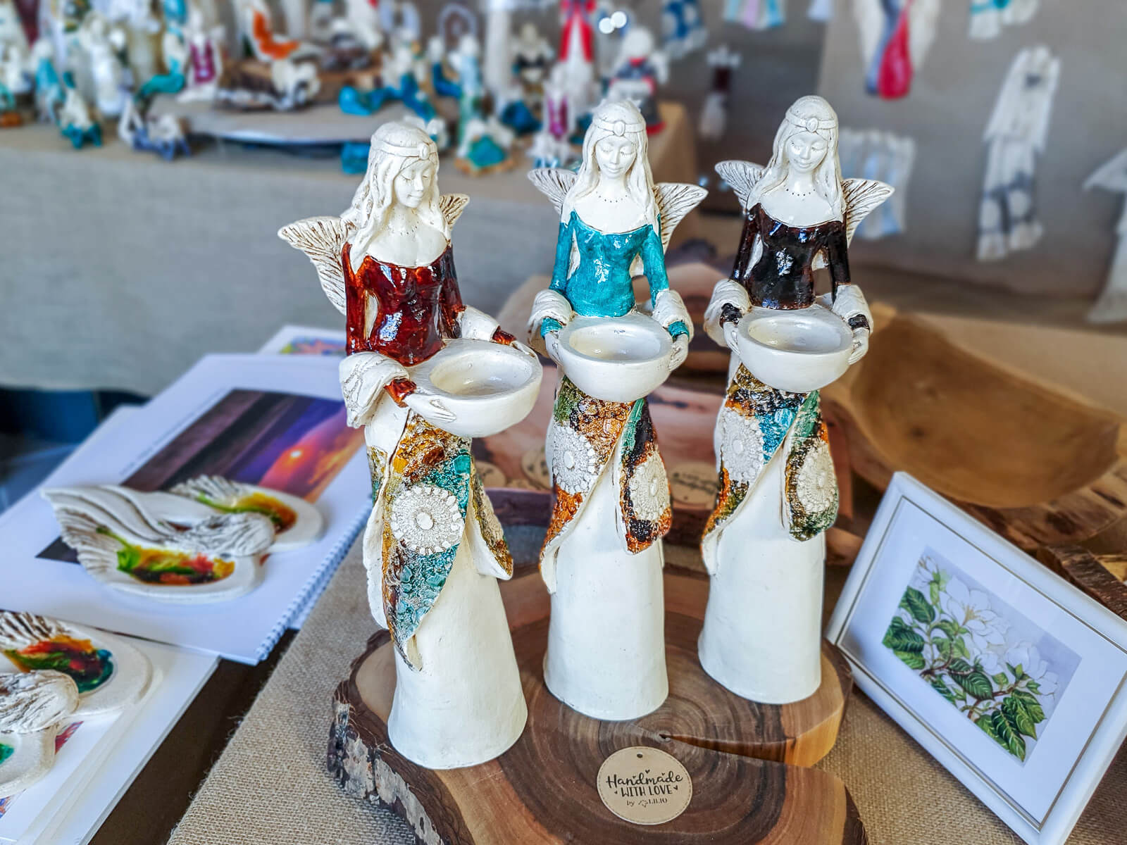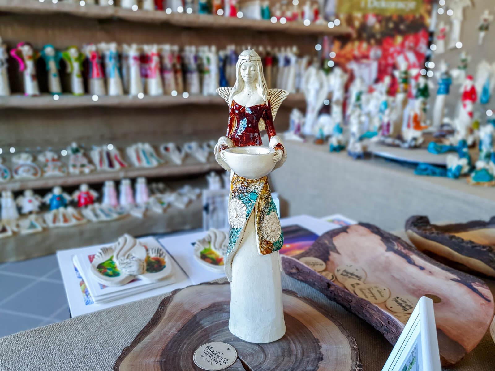Anioł Florence w odcieniach jasnego brązu jest figurką stojącą wykonaną ręcznie z gipsu. Przedstawia kobietę w brązowo-beżowej sukni ze wzorami. Na długich, jasnych włosach ma opaskę, a na szyi naszyjnik. W dłoniach trzyma misę, do której można włożyć małą świeczkę. Na przedramionach posiada długą chustę, natomiast na plecach małe skrzydła skierowane ku górze. Może być jako ozdoba wnętrza lub ogrodu, a także prezentem.