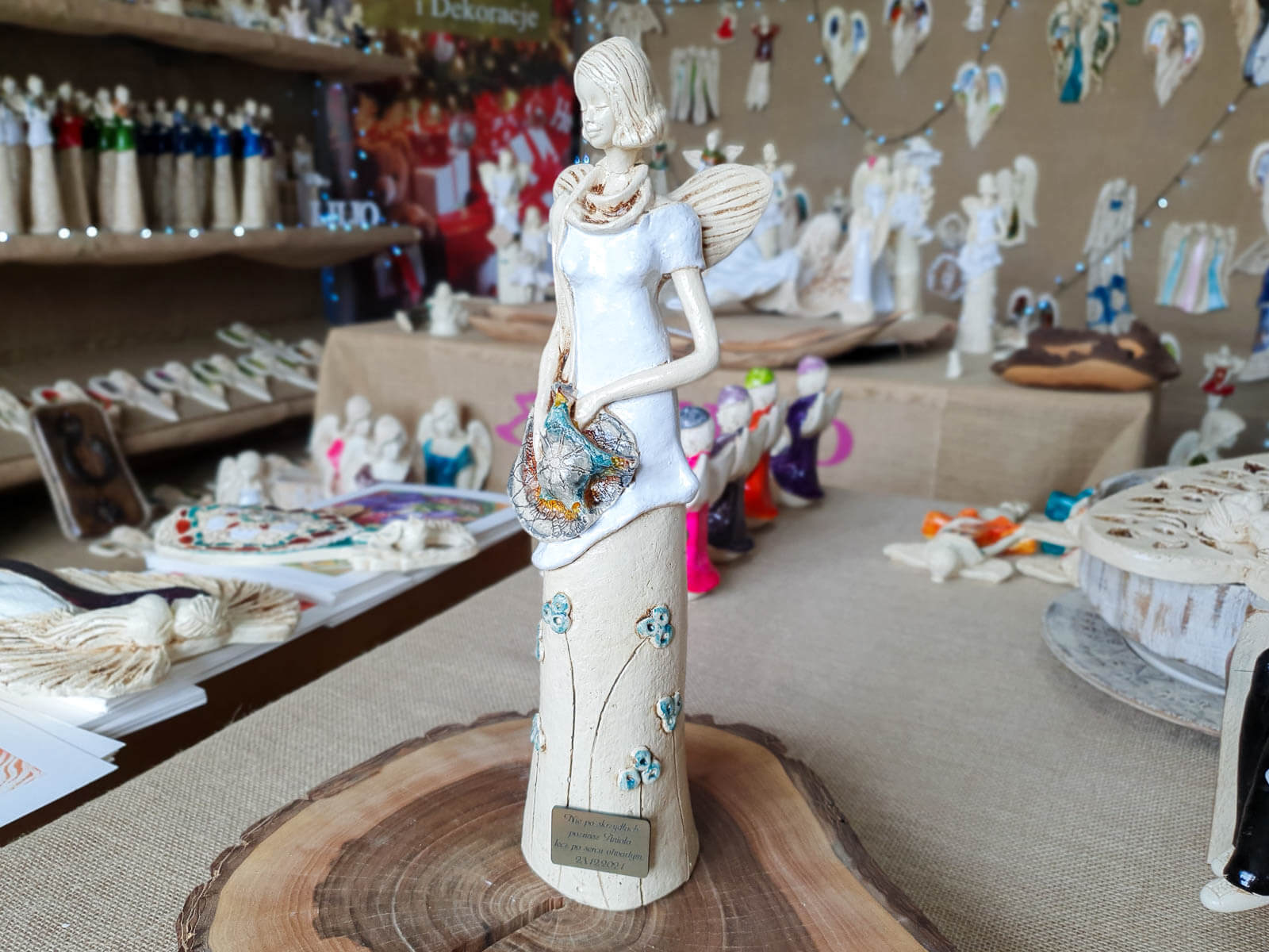 Jeśli anioł ma zostać wręczony jako prezent możemy go również elegancko zapakować w przeźroczysty celofan wiązany ekologicznym sznurkiem. Dzięki temu anioł będzie wyglądał jeszcze bardziej dostojnie i będzie gotowy do wręczenia. Dla wygody możesz również od razu zakupić papierową białą torbę prezentową.