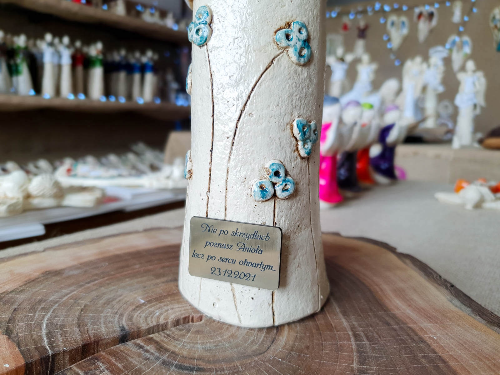 Dodatkowo aniołom można nadać osobisty charakter poprzez grawer. Grawer może być z przodu lub z tyłu anioła.