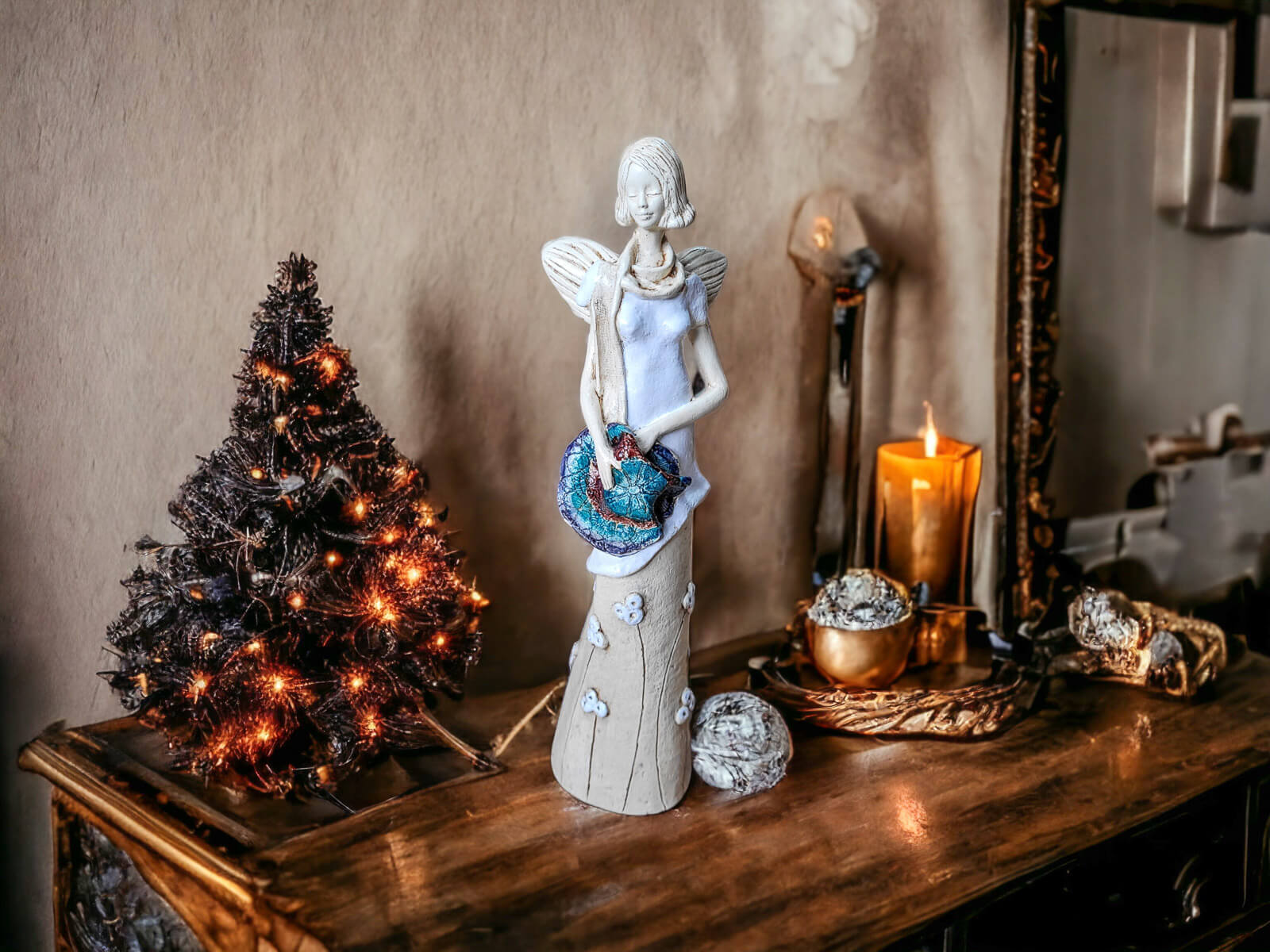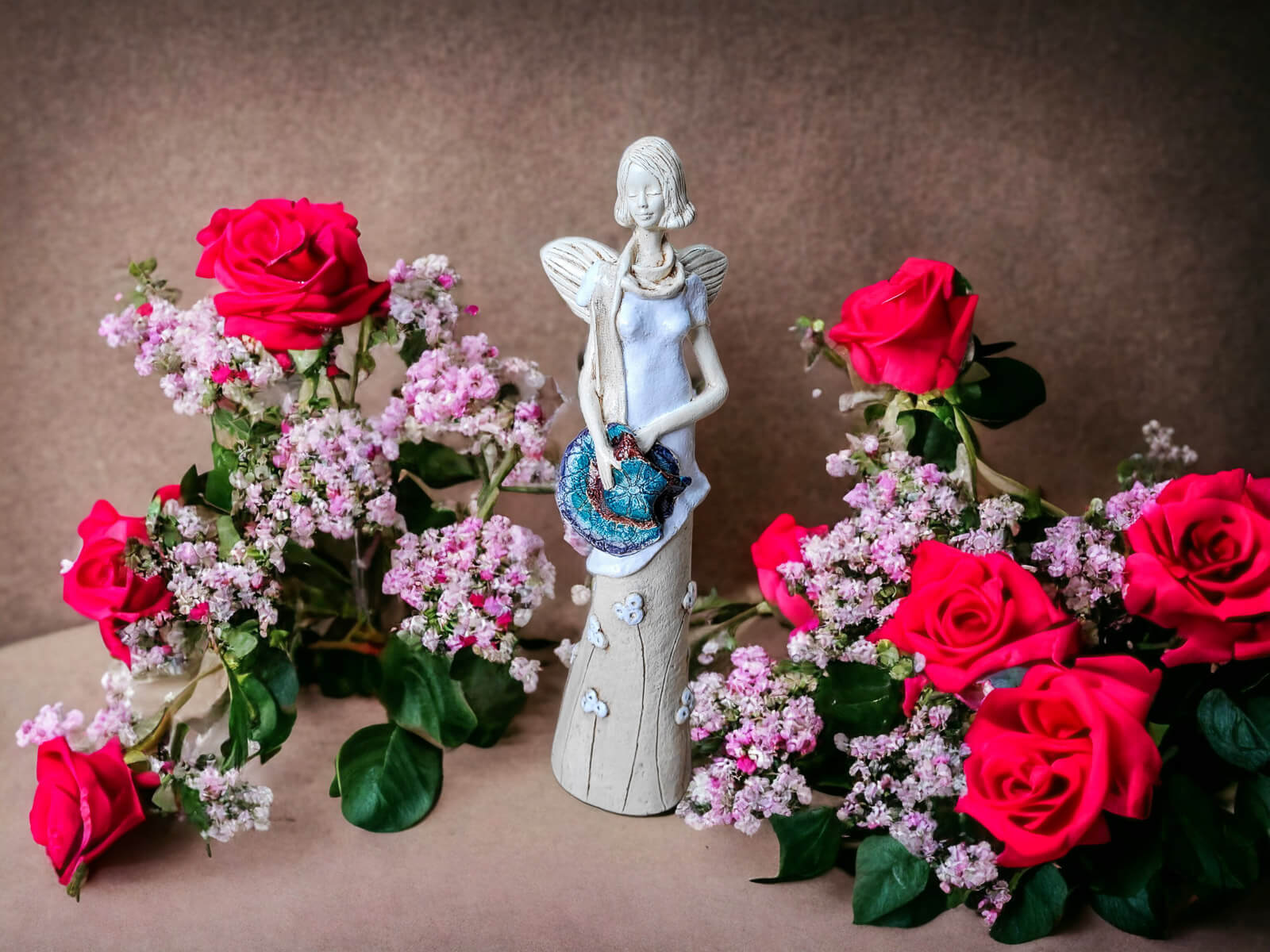 Anioła Sunday Rose w białej sukni w kwiaty to ręcznie robione figurka z niezwykłym wyczuciem estetyki i delikatności. Figurka o wysokości 32 cm jest prawdziwym symbolem elegancji i piękna, wprowadzając do Twojego domu atmosferę spokoju i harmonii.