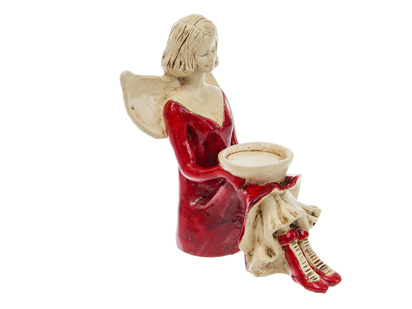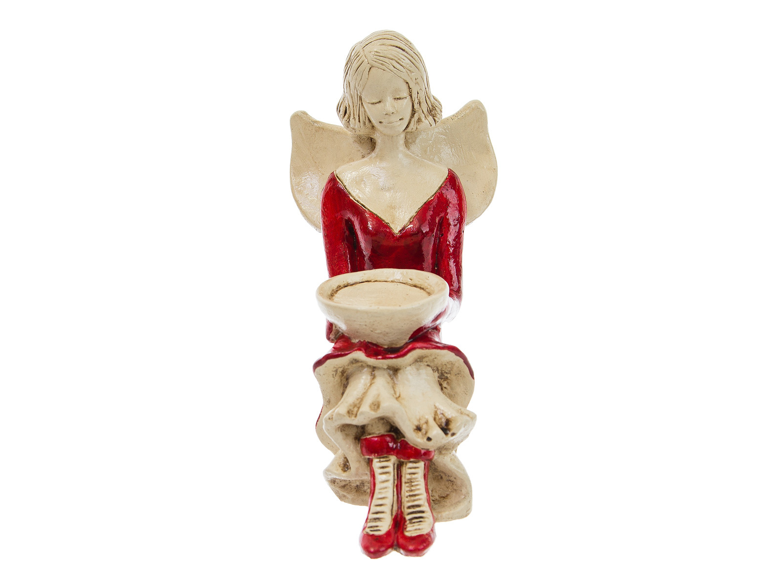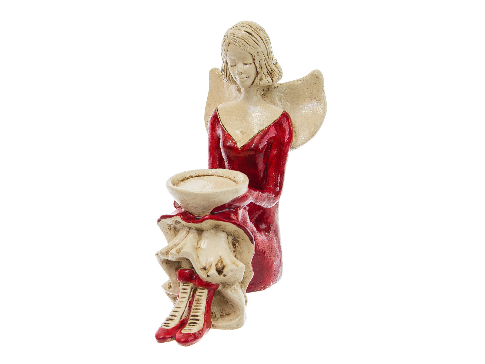 Aniołek Marion to stojąca figurka wykonana ręcznie z gipsu. Przedstawia dziewczynkę w długiej, czerwonej sukni z odkrytymi ramionami. Ma ona jasne, krótkie włosy oraz małe skrzydła skierowane w górę. Jest w pozycji siedzącej, a w dłoniach trzyma misę, do której można włożyć małą świeczkę. Dekoracja nadaje się do postawienia w domu, a po zapaleniu świeczki nada wnętrzu klimatyczny nastrój. Może służyć jako prezent dla małej dziewczynki, mamy lub babci.