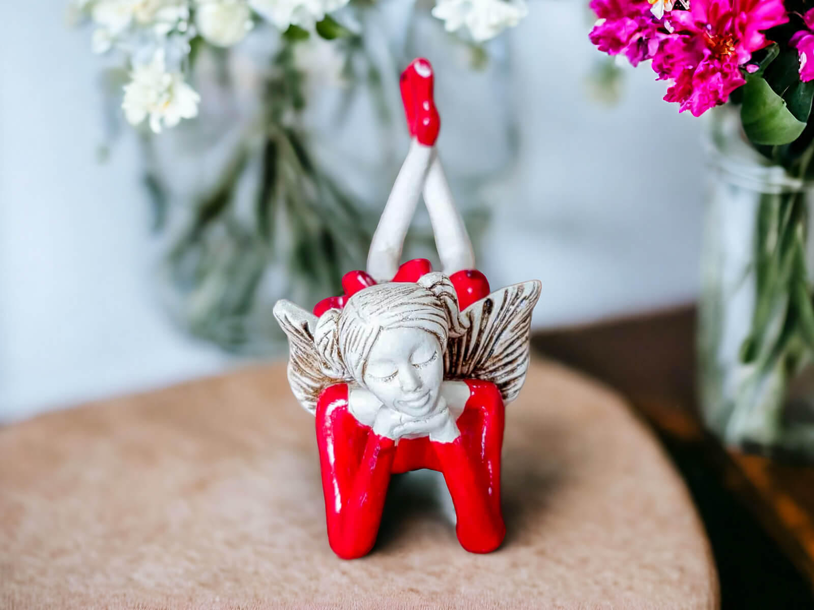 Figurka Anioła Dixie w eleganckiej czerwonej sukience to wyjątkowy, ręcznie wykonany produkt, który wprowadza do każdego wnętrza energię, radość i odrobinę tajemniczości. Dixie to anioł o niebanalnym charakterze, którego charyzma od razu przyciąga wzrok. Jej czerwone, stylowe ubranie emanuje pewnością siebie i odwagą, podkreślając jej żywiołową naturę i radosny temperament.