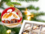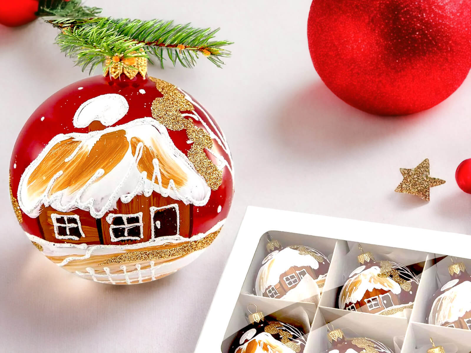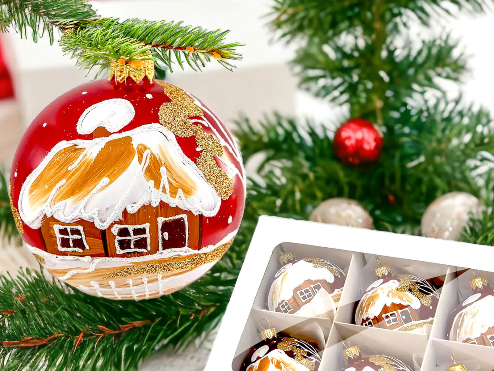 Komplet szklanych bombek Chatki Bordowe to elegancja i styl na choince - starannie i ręcznie wykonane, a następnie malowana na pięknej bordowej porcelanie, co nadaje im niepowtarzalny urok i styl.