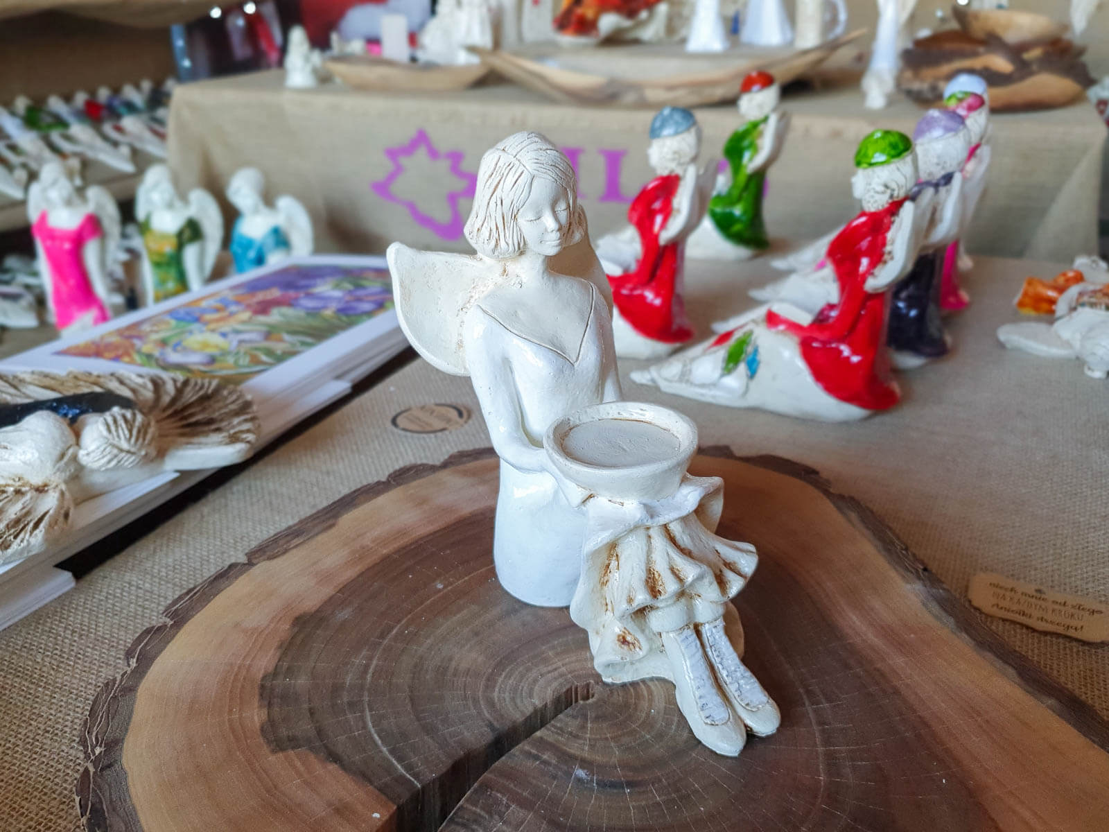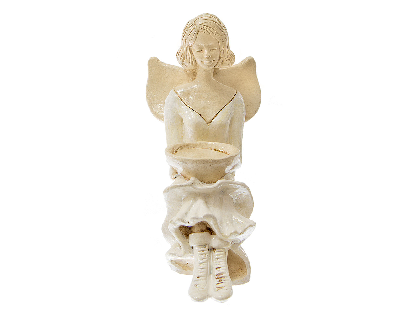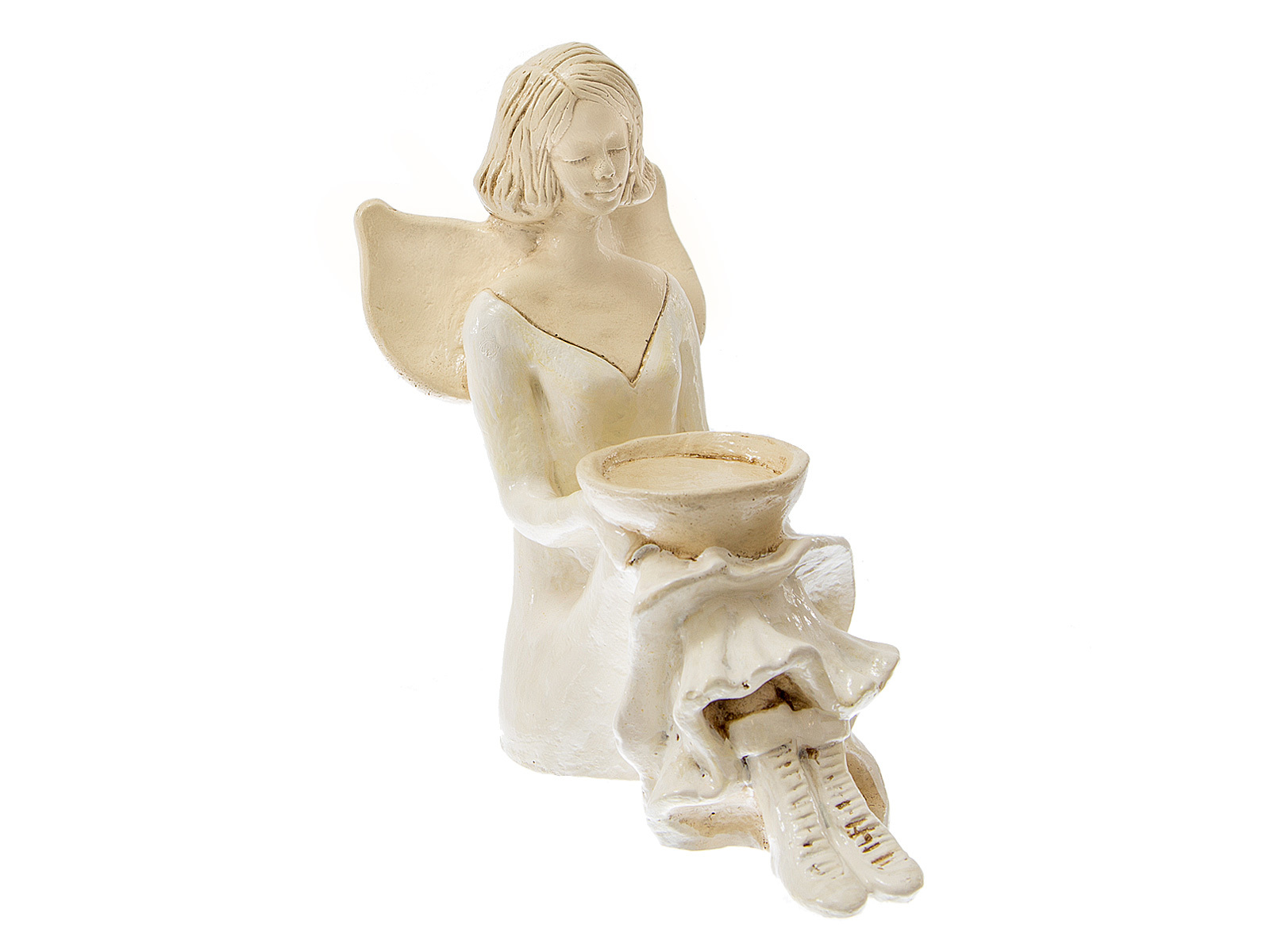 Ta niewielka figurka ma niesamowity urok. Przyciąga wzrok swoją delikatną barwą i perfekcyjnym dopracowaniem każdego jej detalu. Co więcej, jest wykonana ręcznie. Może również pełnić funkcję świecznika - w misie, którą Aniołek trzyma w rękach, możesz umieścić tea lighta. Nada to niesamowity, ciepły klimat miejscu, gdzie figurka będzie umieszczona, bez względu czy to będzie zacisze domowe czy ogród.