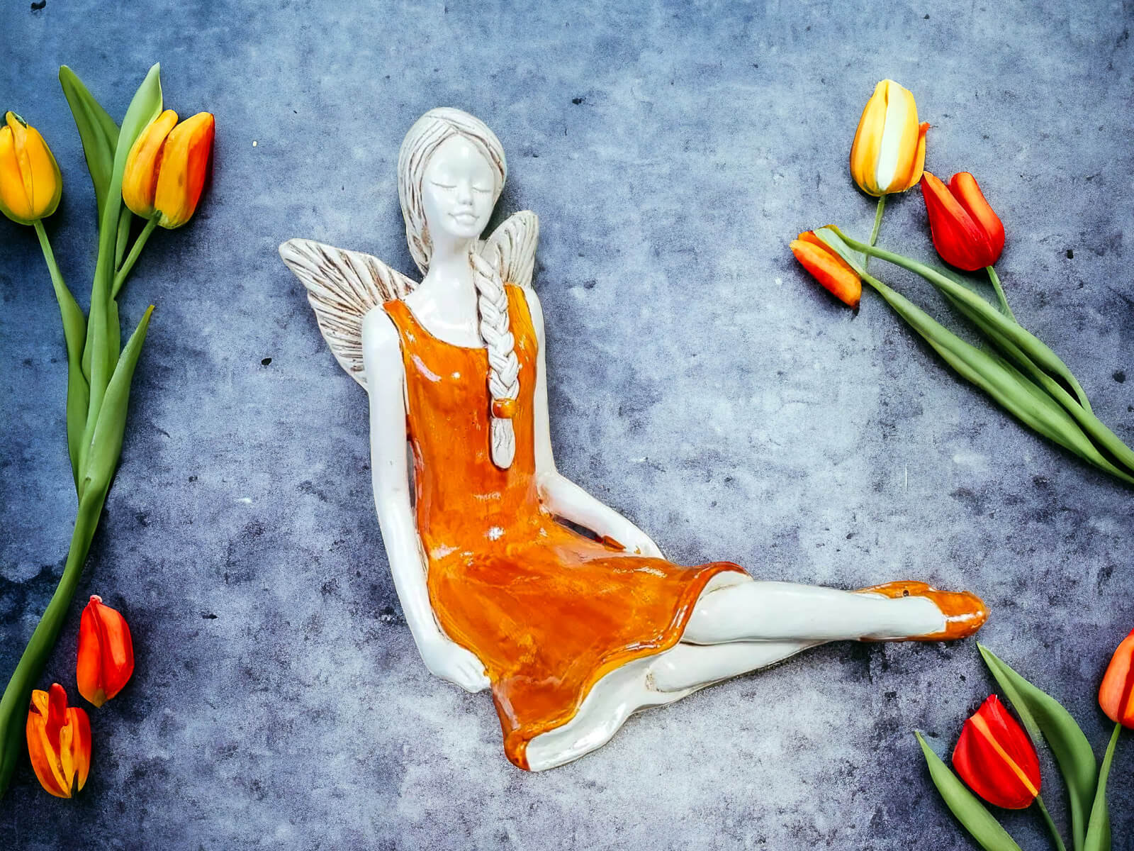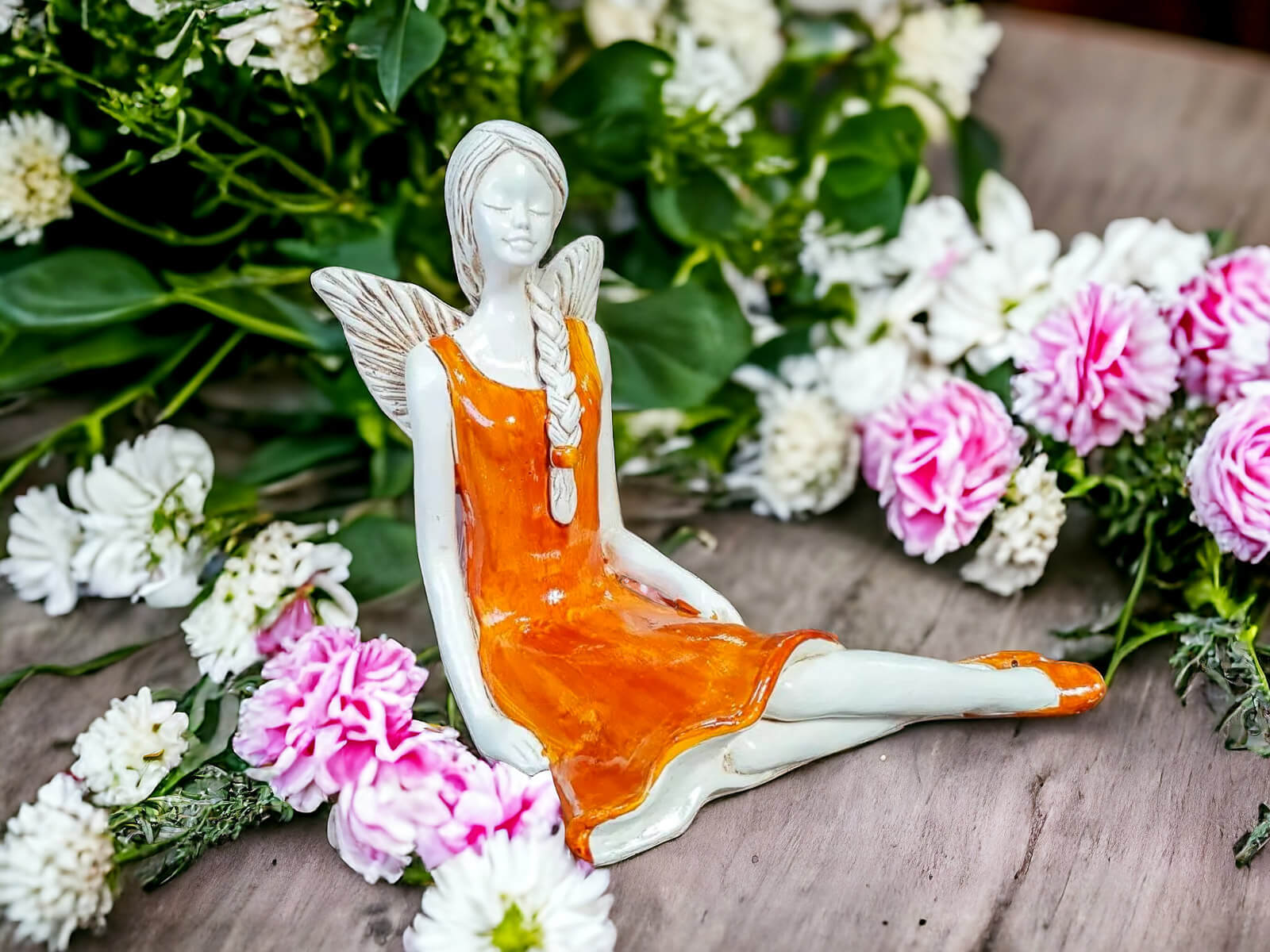 Anioł Matilda to mała wróżka, o jakiej marzy każda dziewczynka! Jej pomarańczowa sukienka sprawia wrażenie wulkanu energii, a warkoczyk w zestawieniu z rozmarzoną miną nadaje Matildzie ogrom dziewczęcości i uroku.