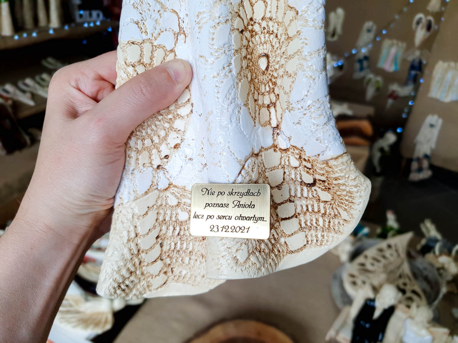 Dodatkowo aniołom można nadać osobisty charakter poprzez grawer. Grawer może być z przodu lub z tyłu anioła.