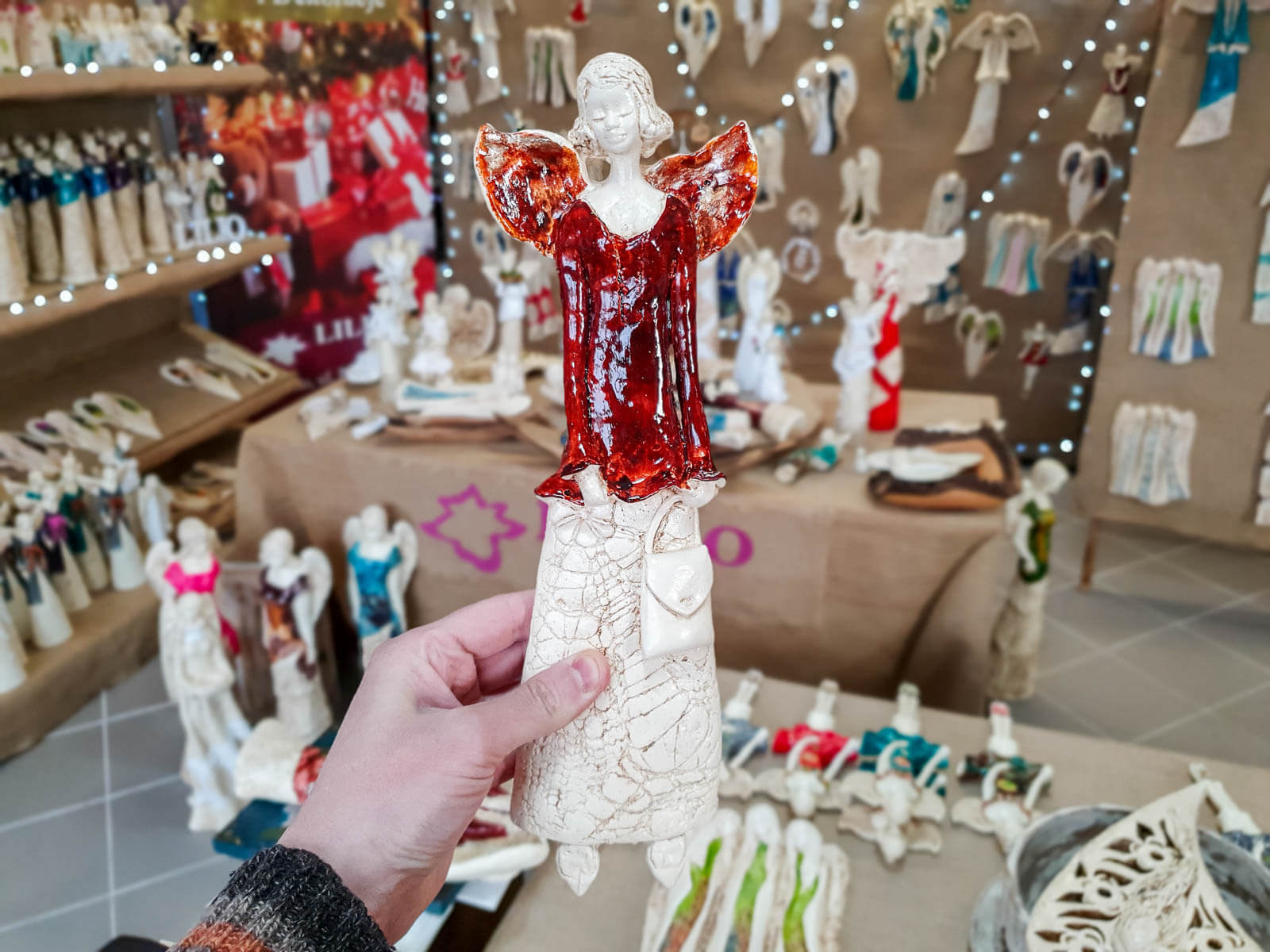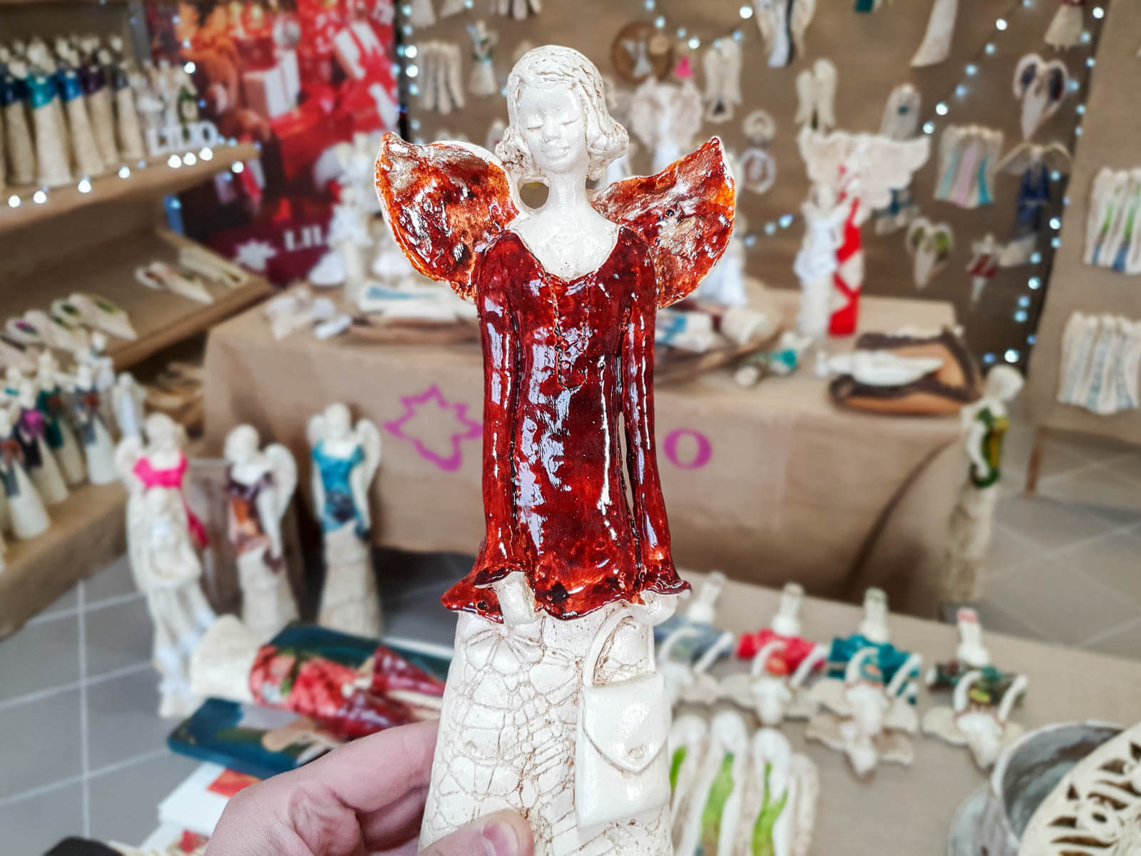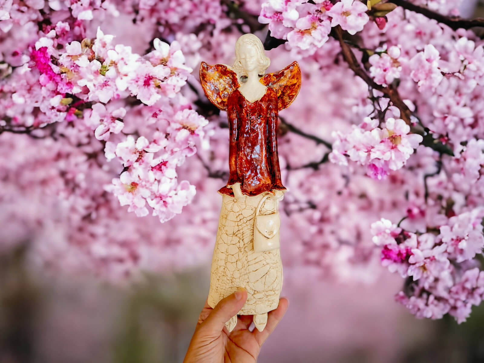 Anioł Christy to ręcznie wykonana figurka do powieszenia na ścianę. Christy to elegancka dziewczyna, która interesuje się modą. Wybiera się na pokaz mody.Ubrana jest w wytworną beżową-brązową suknię. W ręku trzyma torebkę.Jest marzycielką. Jej dusza jest wrażliwa na piękno. Anieliczka często kieruje się sercem zamiast rozumem. Idealnie nadaje się do powieszenia na ścianie w każdym wnętrzu, i niekoniecznie w salonie :).