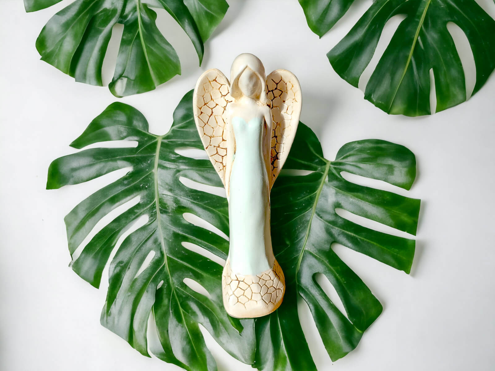 Jeśli anioł ma zostać wręczony jako prezent możemy go również elegancko zapakować w przeźroczysty celofan wiązany ekologicznym sznurkiem. Dzięki temu anioł będzie wyglądał jeszcze bardziej dostojnie i będzie gotowy do wręczenia. Dla wygody możesz również od razu zakupić papierową białą torbę prezentową.