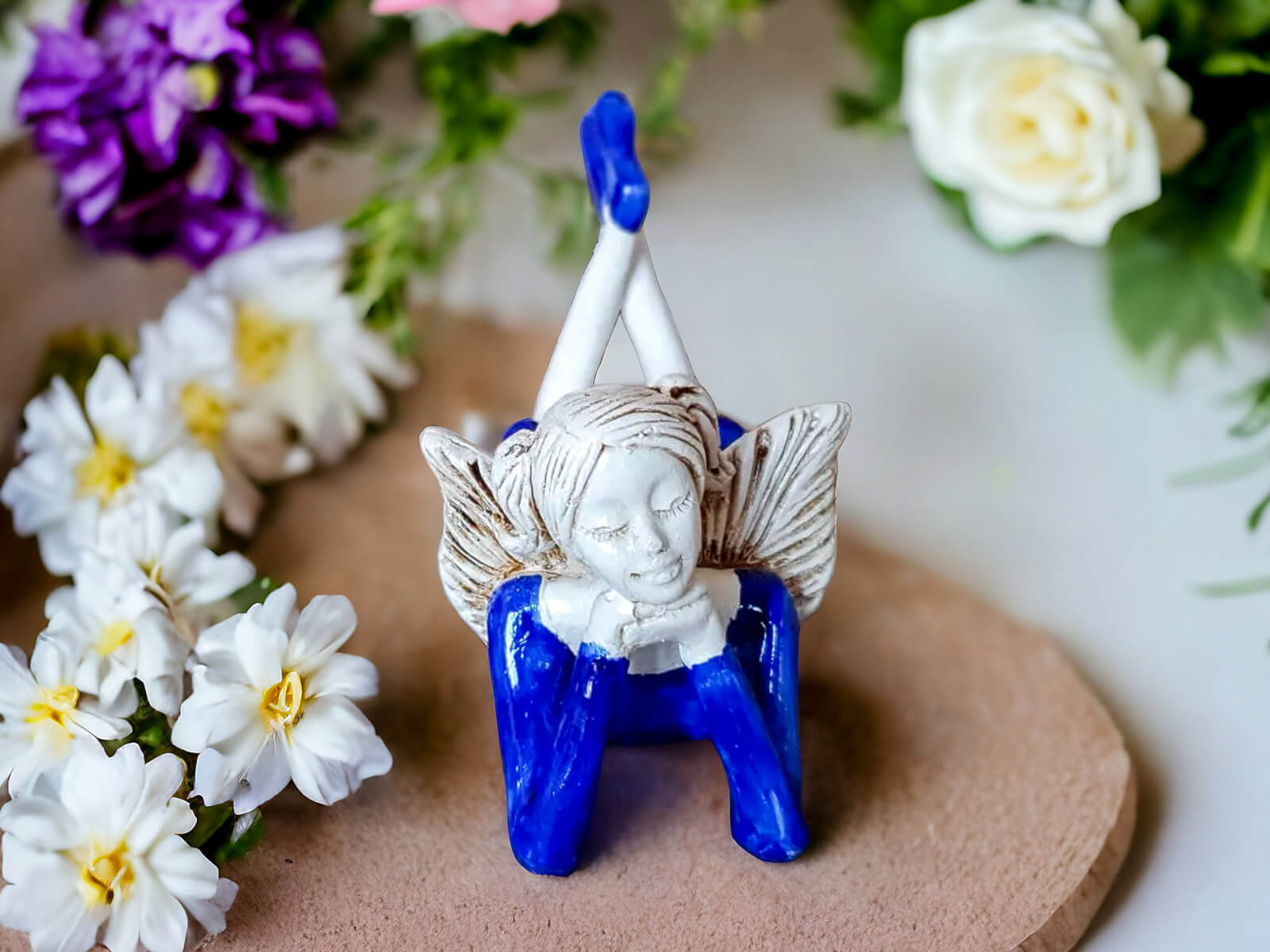 Aniołek Dixie to stojąca figurka wykonana z gipsu ręcznej produkcji. Przedstawia leżącą dziewczynkę, która podpiera rękoma swą głowę. Jest ona w niebieskiej sukience i niebieskich bucikach. Ma krótkie, jasne włosy spięte w dwa kucyki oraz małe beżowe skrzydła. Z jej wyrazu twarzy można odczytać, że o czymś marzy, ponieważ ma zamknięte oczy i się uśmiecha. Aniołek nadaje się na prezent dla dziewczynki z okazji urodzin lub I Komunii Świętej oraz dla kobiety z okazji lub bez okazji.