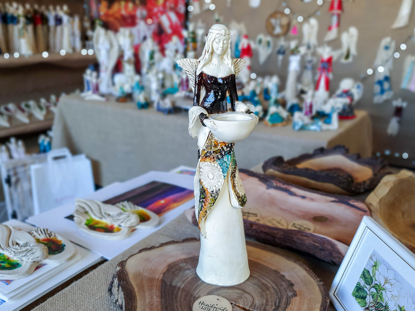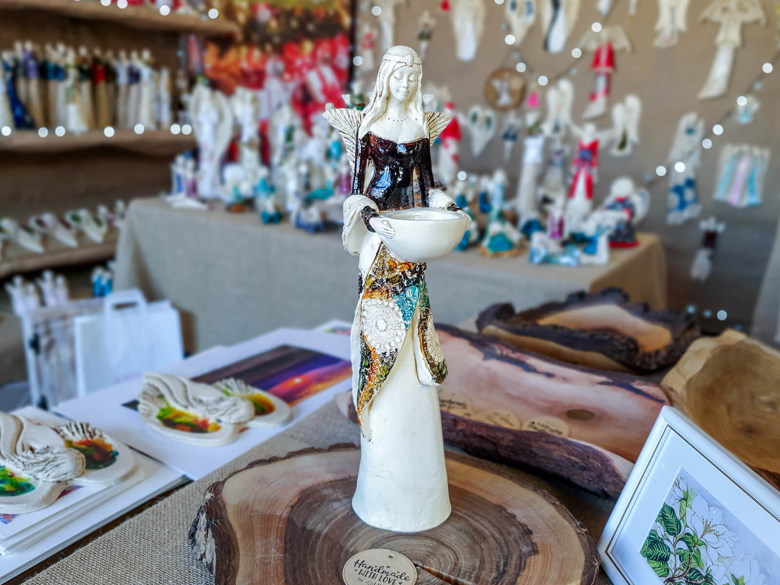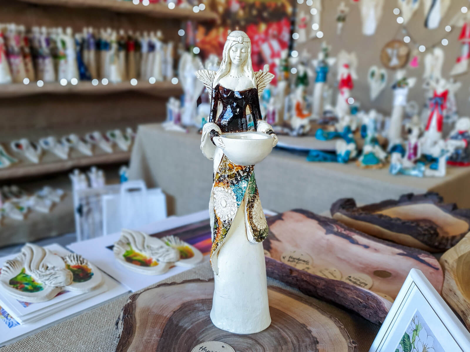 Anioł Florence to ręcznie wykonana figurka w odcieniach ciemnego brązu. Florence jest to dziewczyna o naturalnej, słowiańskiej urodzie. Jest ubrana w folkową, czarno-beżową suknie. Jej imię wywodzi się z języka łacińskiego i oznacza ,,kwitnący”. Ma bardzo wrażliwą naturę. Jest miłośniczką harmonii i symetrii. Niesie pomoc biednym. Każdego ranka roznosi po mieście swoje domowe wypieki bliźnim. Świetny prezent dla kobiety na każdą okazję. Dopełni klasyczne jak i nowoczesne wnętrze.