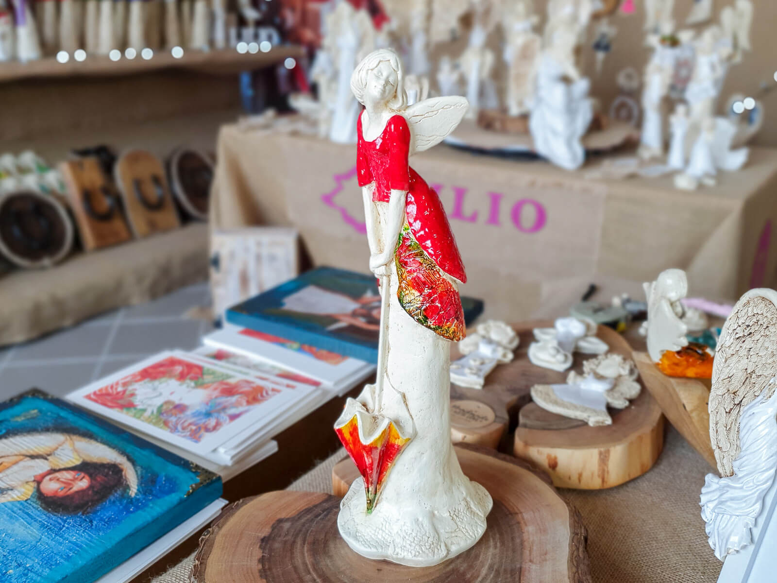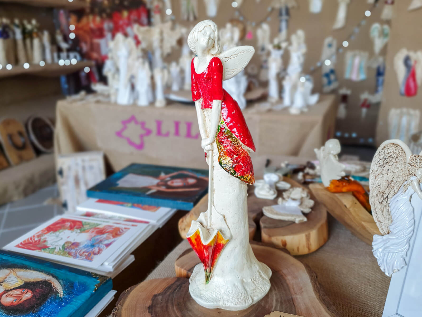 Annabel uwielbia wiosnę. Ten moment gdy wszystko budzi się do życia, zielenieje. W koło niej zawsze latają motyle albo jaskółki. Jest zawsze rozmarzona i chętnie nuci wesołe melodie. Jest pogodna i uśmiechnięta. Annabel to Anioł wywołujący uśmiech. Wszędzie gdzie będzie stała wniesie trochę słońca, a tym swoim parasolem odgoni złe myśli i złe dni. Znasz kogoś kto się zamartwia i walczy z pesymistycznym postrzeganiem wszystkiego wokoło? Koniecznie opowiedz mu o tym Aniele albo zamów go u nas, a my go wyślemy ☺.