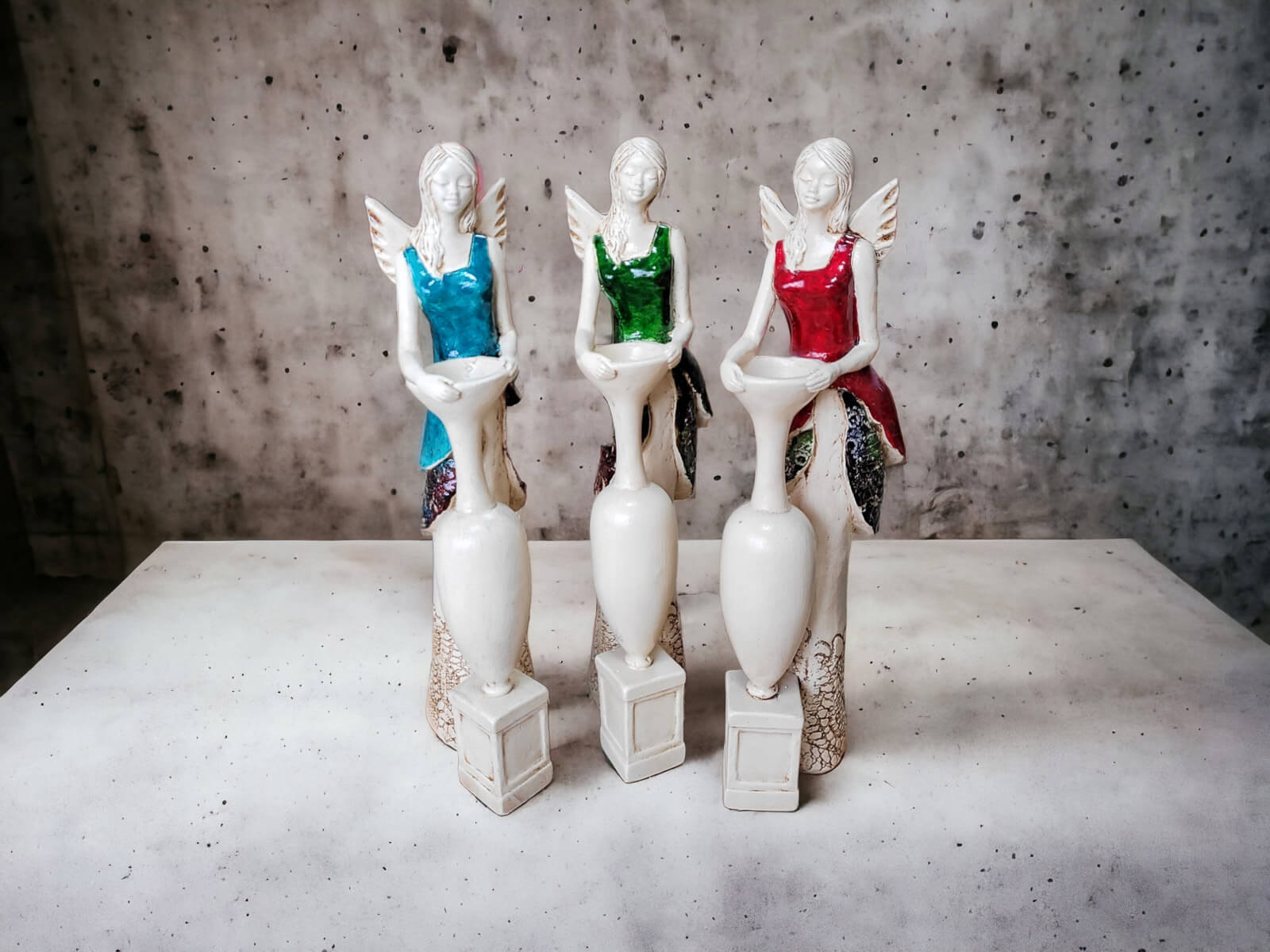 Suri jest garncarką, która swoimi zgrabnymi dłońmi tworzy naczynia. Daje jej to wiele radości, a przedmioty, które wyszły spod jej rąk są jedyne w swoim rodzaju. Jej suknia podkreśla delikatność, a włosy opadające na ramiona dodają jej kobiecości. Figurka może pięknie ozdabiać salon, tworząc niezwykłą atmosferę będą lampionem z palącym tea lightem.