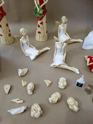 I tu wracamy do tego weekendu. Postanowiłem zabrać się za przygotowanie "upadłych aniołów" na tyle, żeby pacjenci mogli je wykorzystać w terapii. Posklejałem wszystkie szczątki, co przy tej ilości aniołów było trochę jak układanie puzzli, tylko zamiast elementów puzzli miałem np. różne głowy i inne szczątki aniołów.