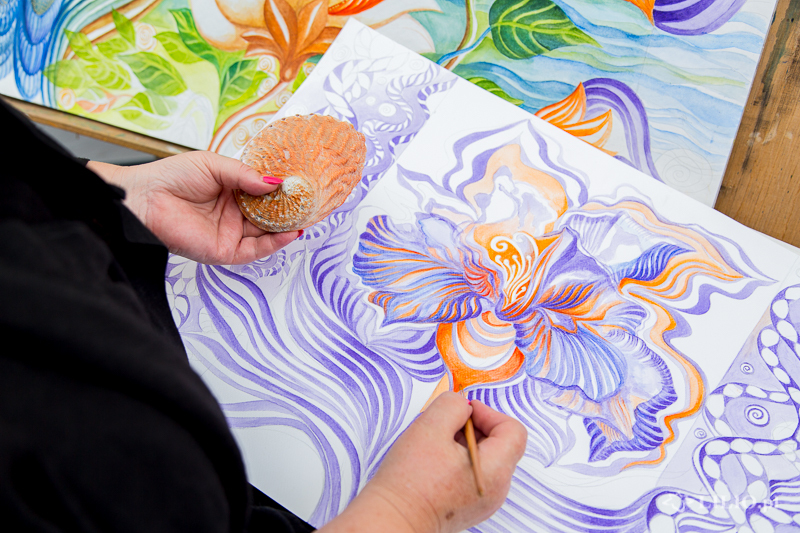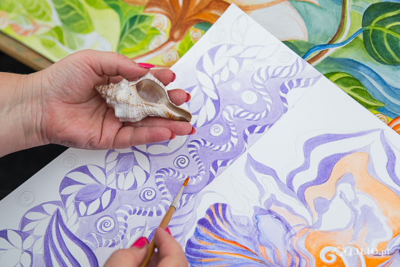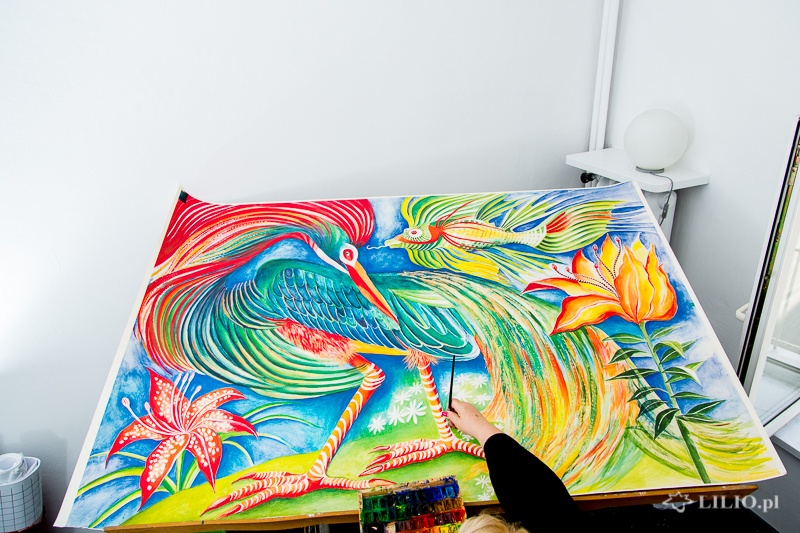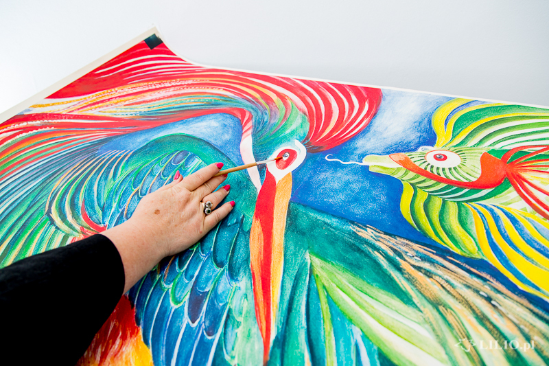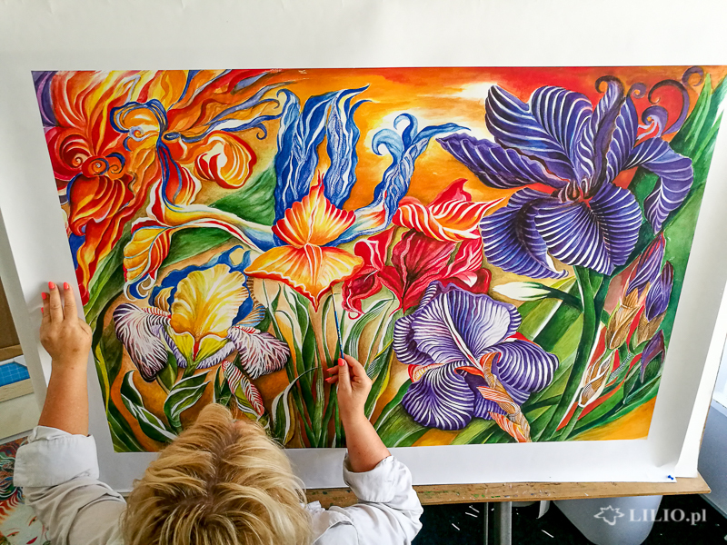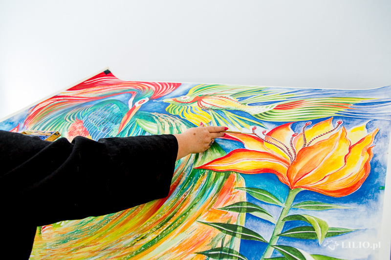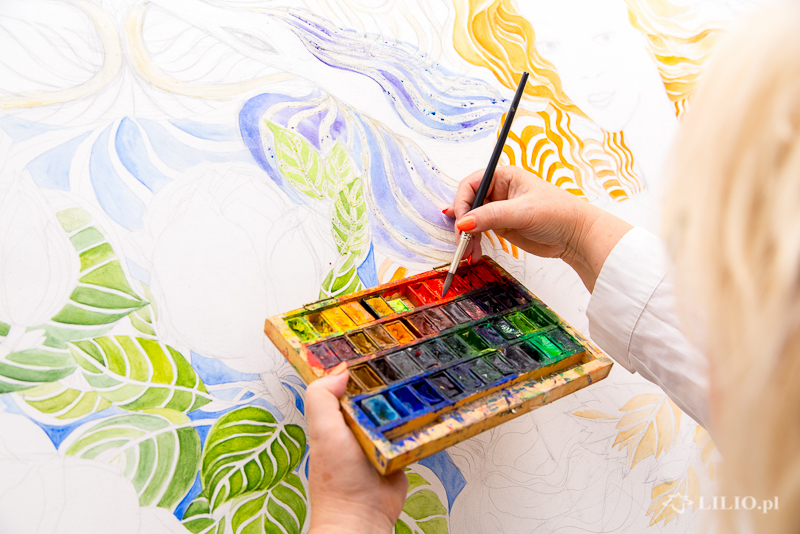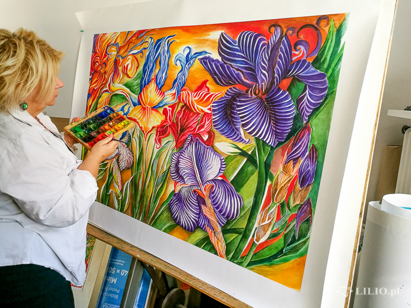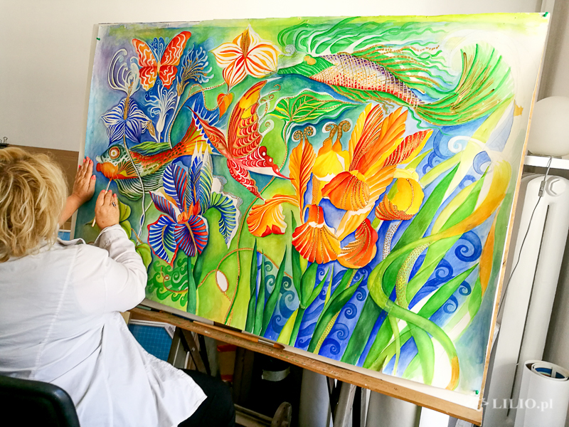 Czas namalowania obrazu to kilka tygodni, czasami miesięcy, w zależności od formatu obrazu. Nie maluję obrazów małych, najmniejsze to 100 cm x70 cm. Daje mi to możliwość precyzji poszczególnych elementów. Zmieniam i doskonalę technikę, która mimo kilkuset akwareli nadal się zmienia, tak jak zmienia się zapotrzebowanie klientów i moje odczucia Synestetyczne.