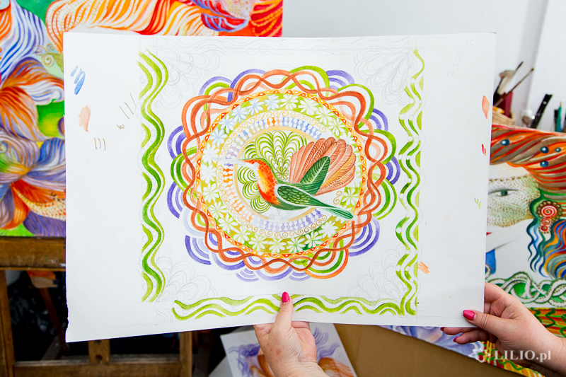 Moim marzeniem jest namalowanie panoramicznego obrazu , około 3 metrowego, Rajskiego Ogrodu, pełnego lecących ptaków i ryb, podwodnych krain, wielkich kwiatów, bez kończącej się kompozycji, tak jak by to był fragment większej rzeczywistości ... tętniące barwami ze złotymi szarfami nieskończoności, z drobinkami złota …jak płynąca rzeka kolorów i kształtów.